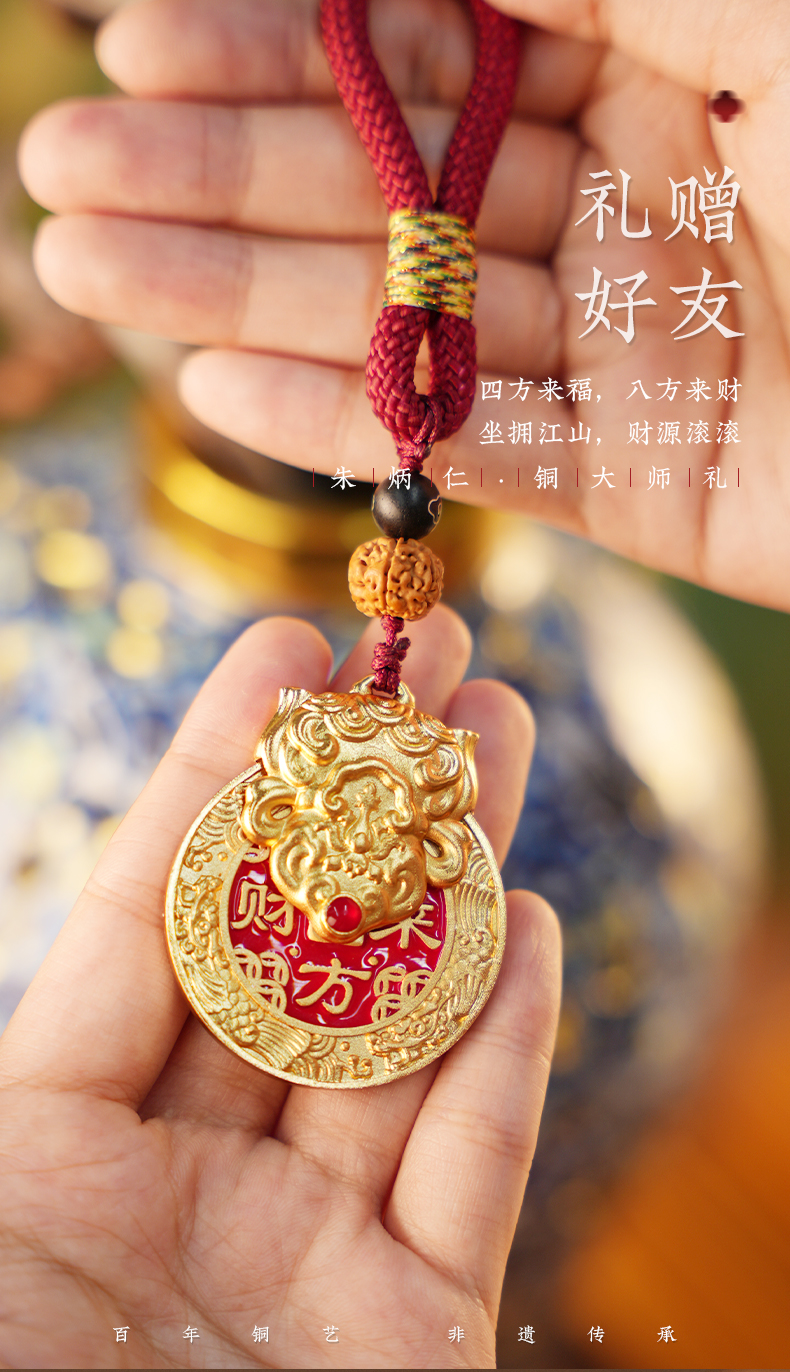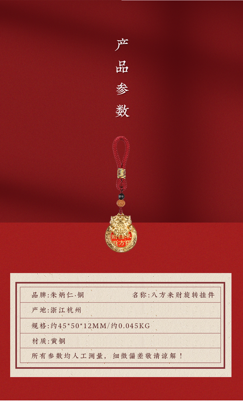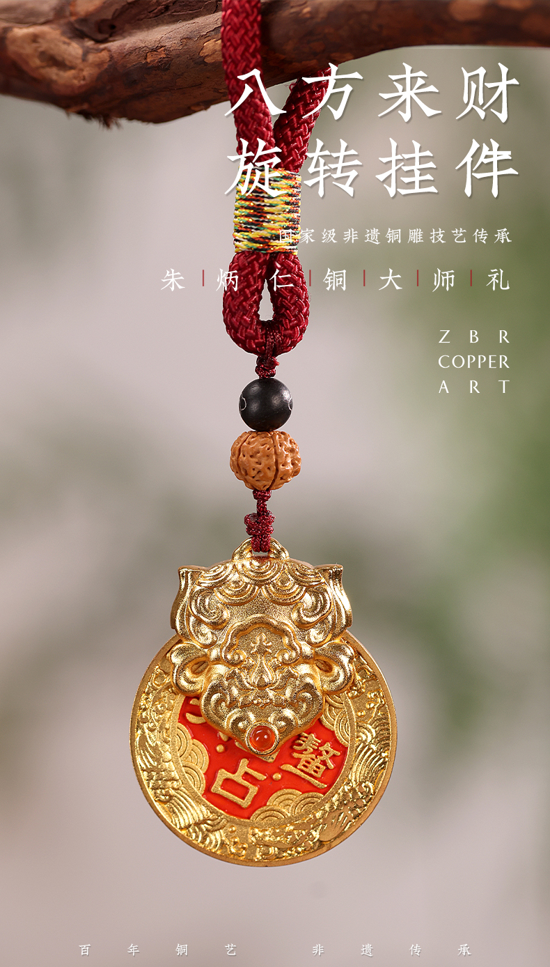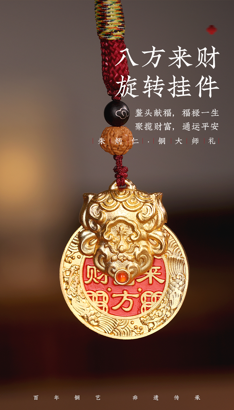 朱炳仁铜 旋转挂件 钥匙扣手把件包挂配饰 产品名称:八方来财-分销