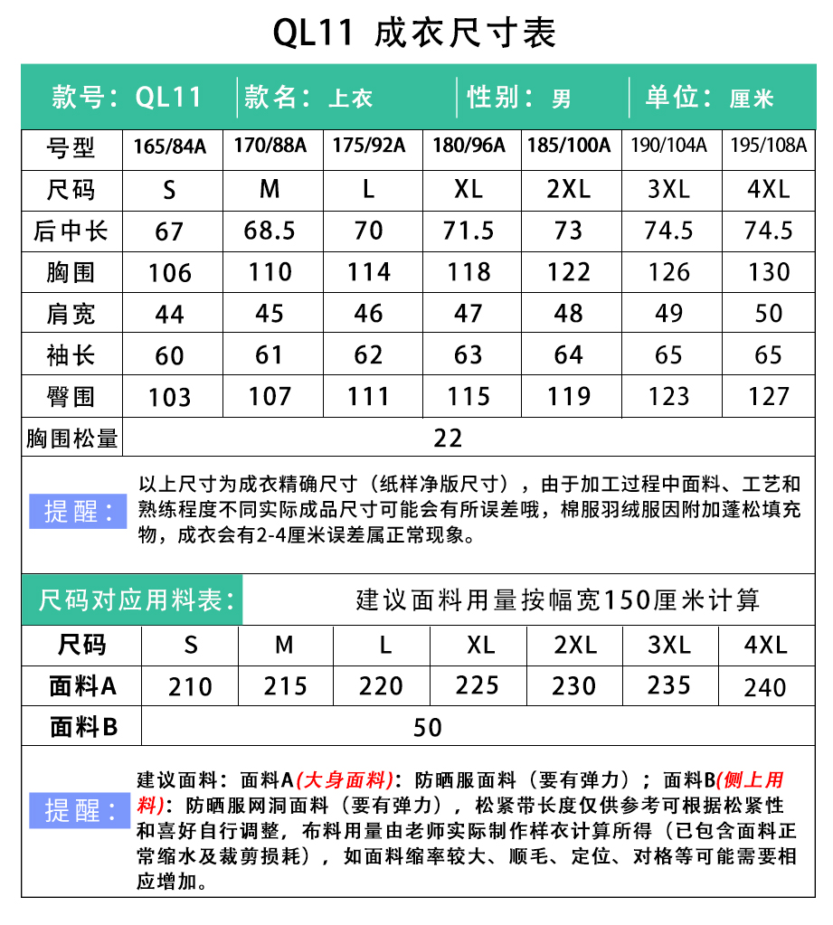 裁缝学苑QL11男装连帽防晒衣纸样防晒服外套运动综训上衣
