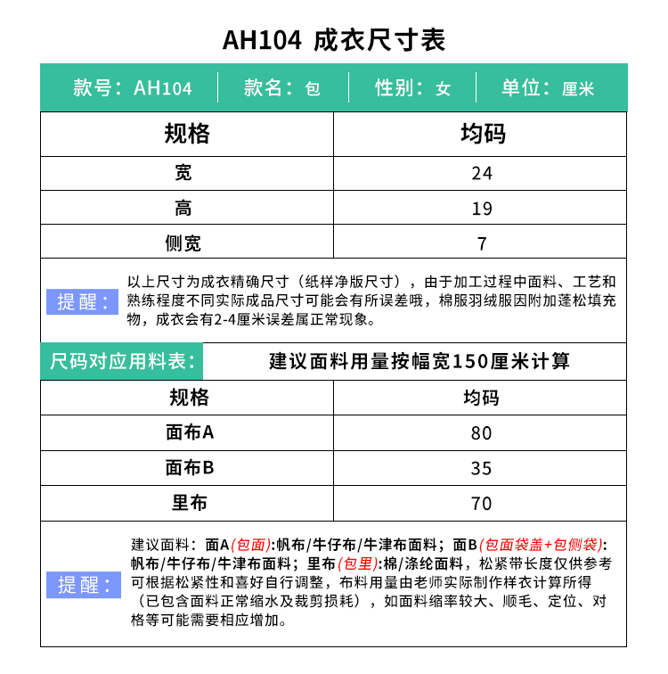 裁缝学苑AH104韩国ins可爱帆布包包女纸样斜挎日系小兔单肩包裁剪图