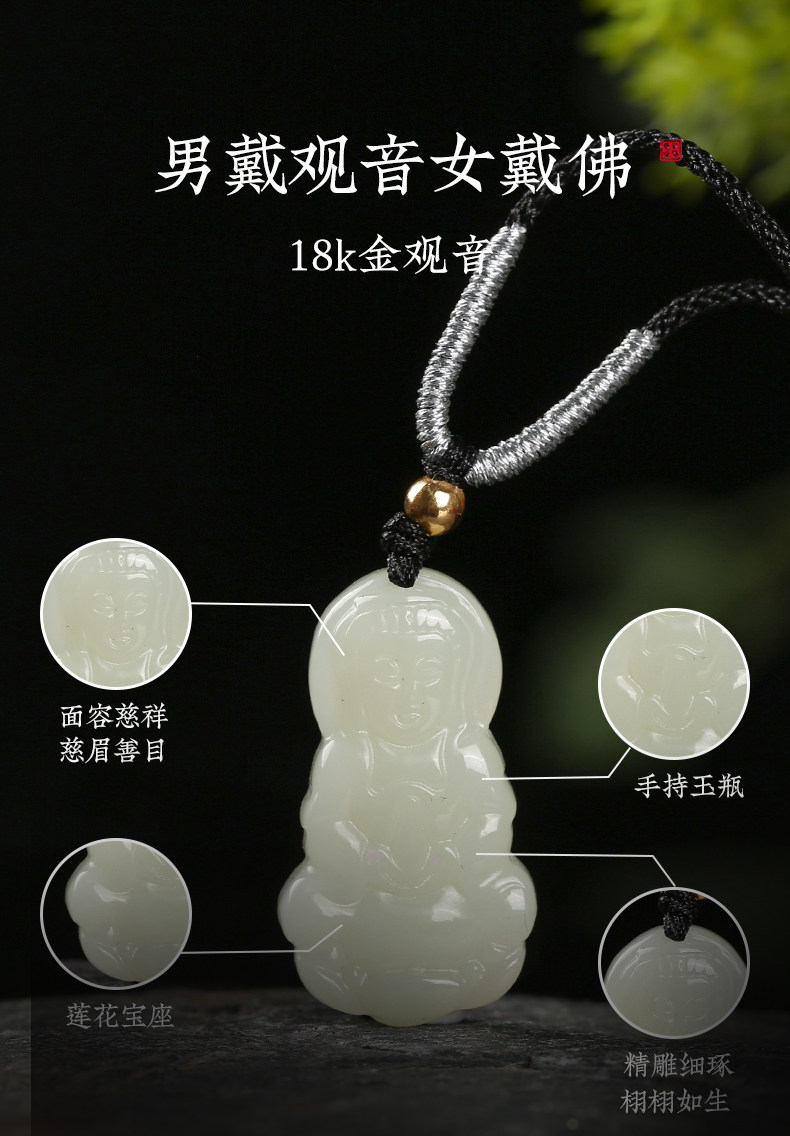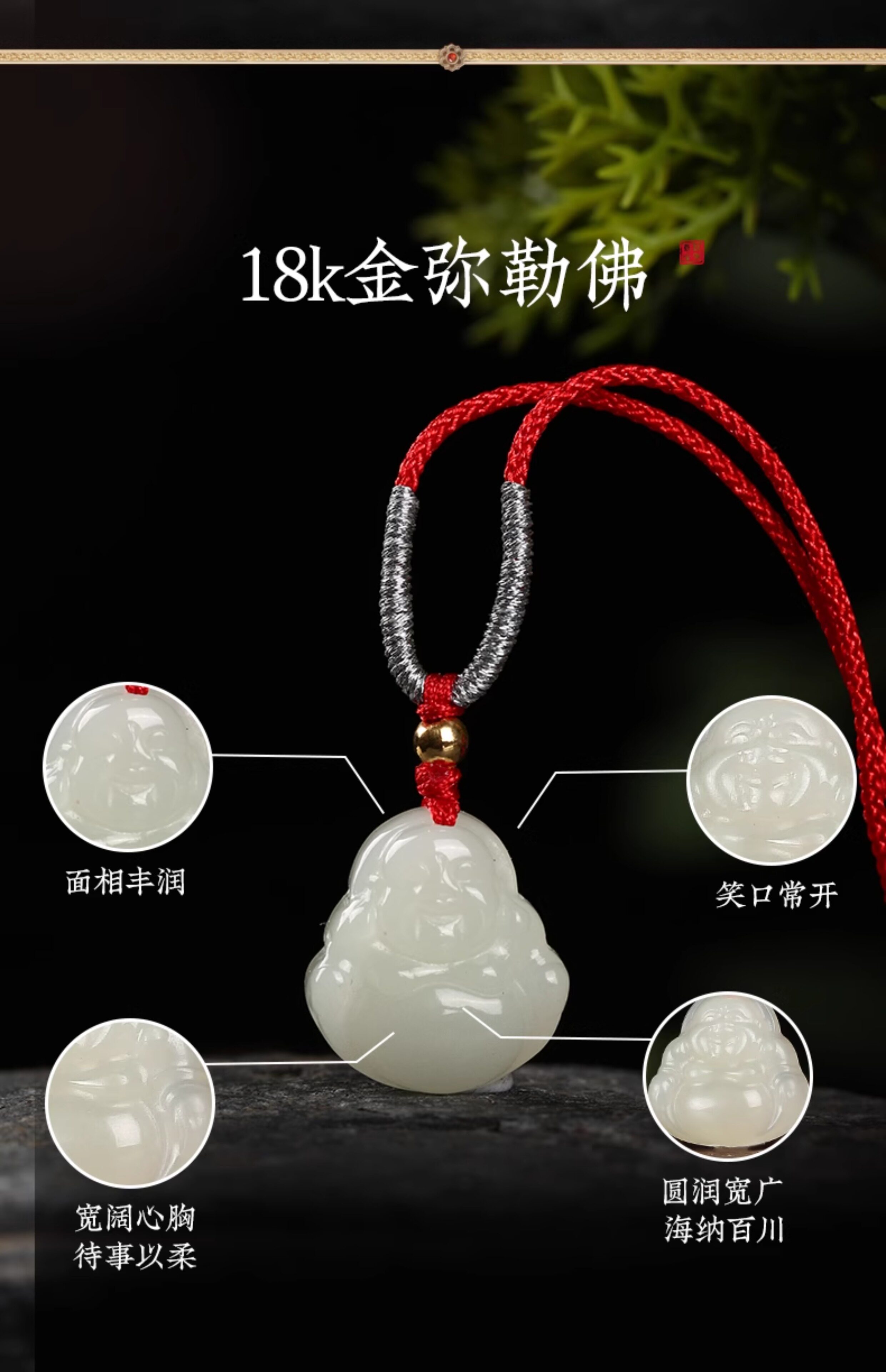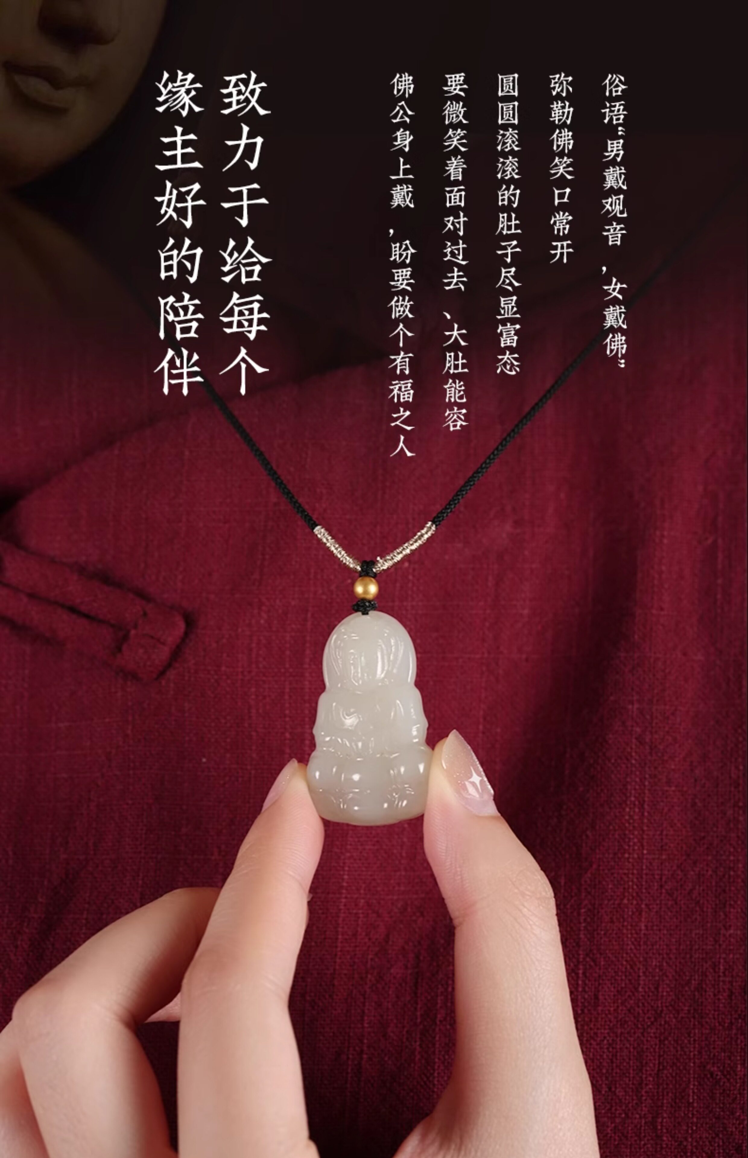 【祈愿吉品】和田玉弥勒吊坠女玉佛头玉坠项链观音男玉佩挂件