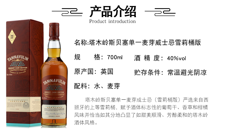 【行货】塔木岭斯贝塞单一麦芽威士忌(雪莉桶版)