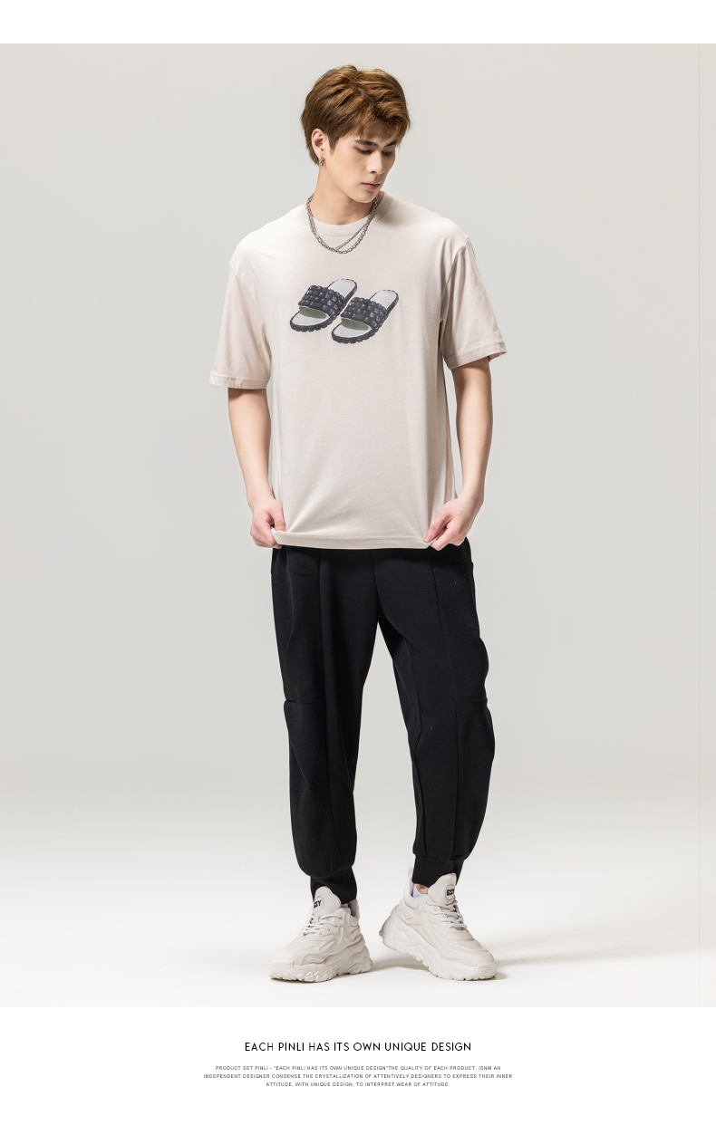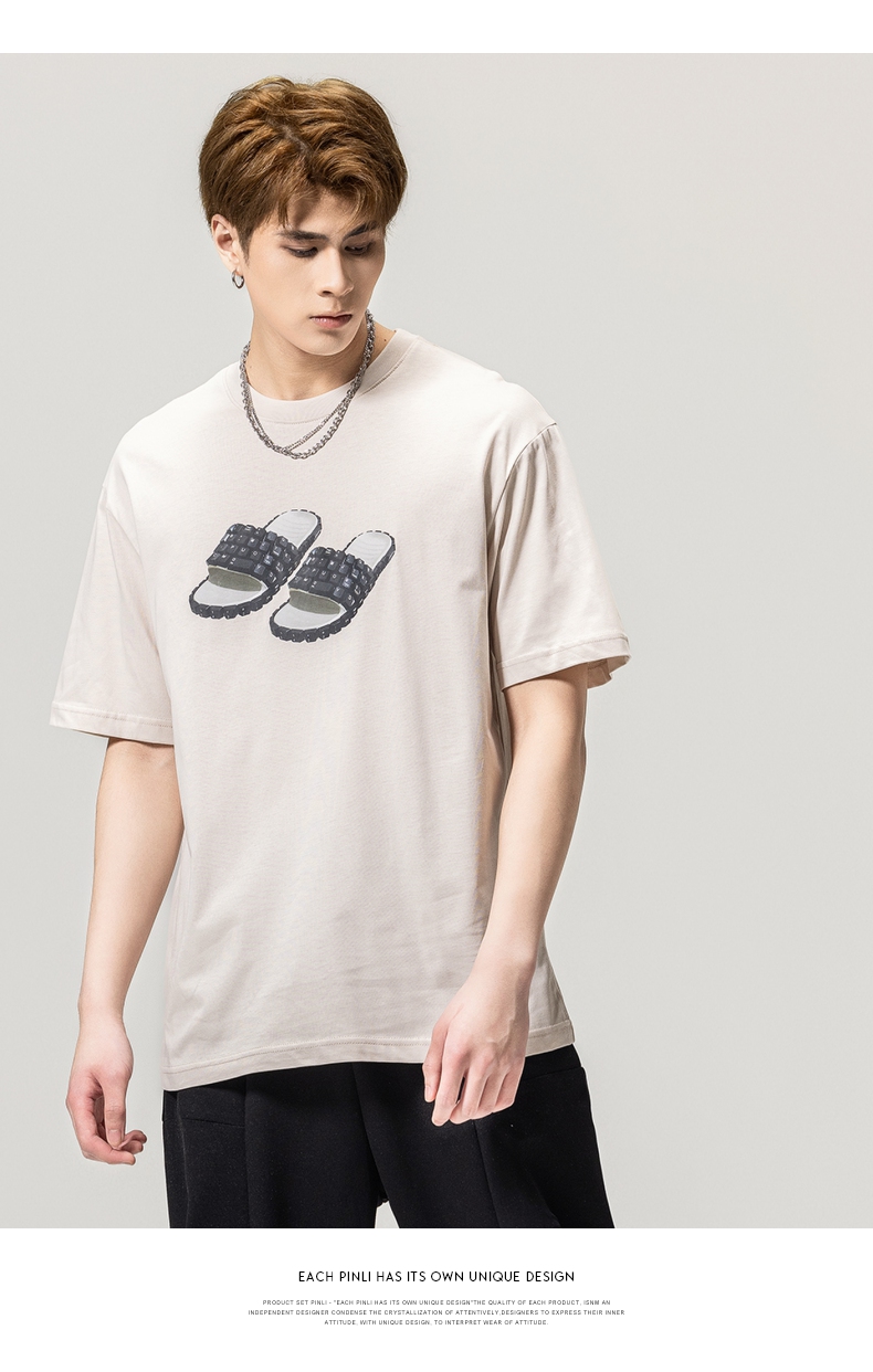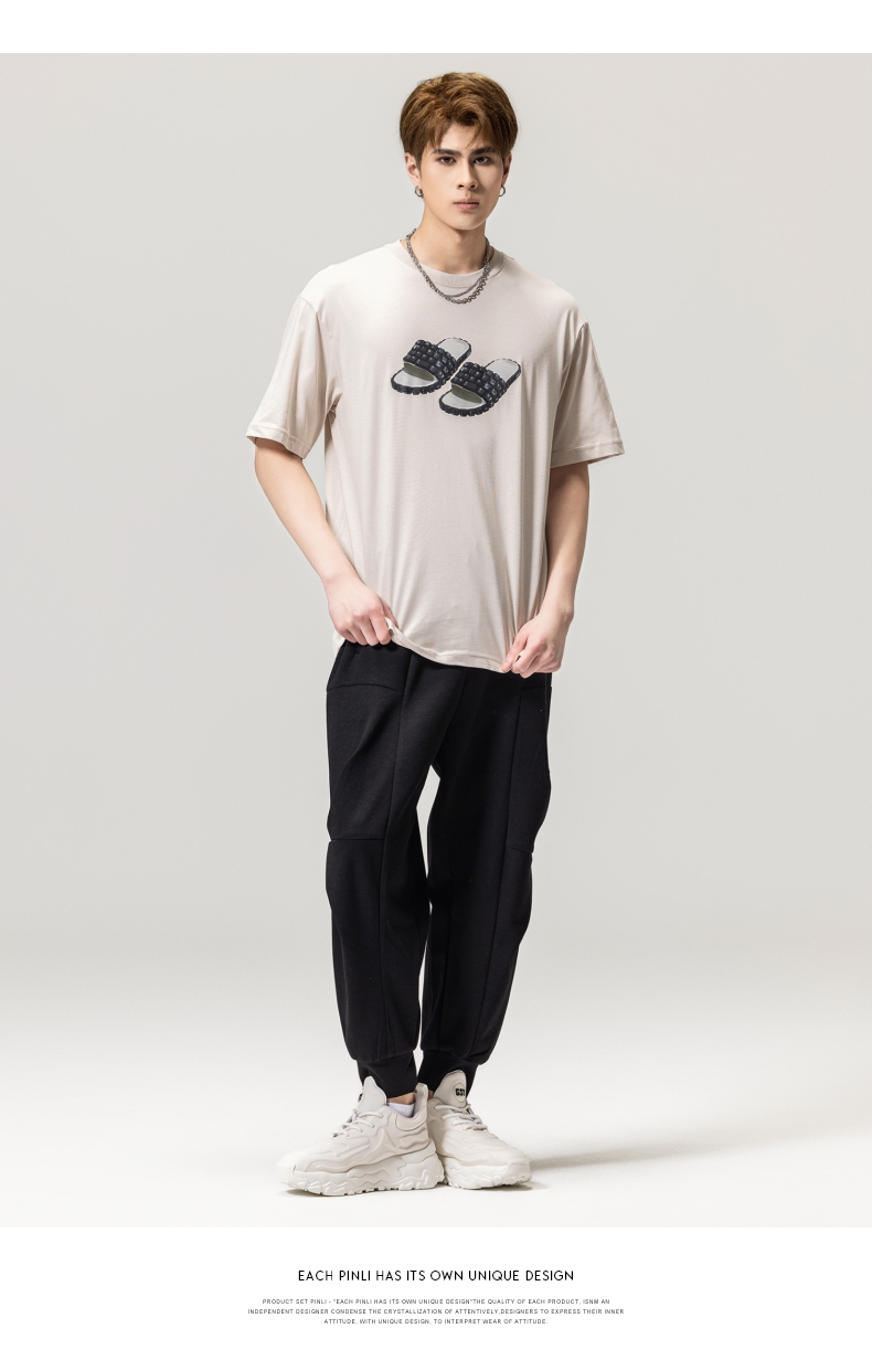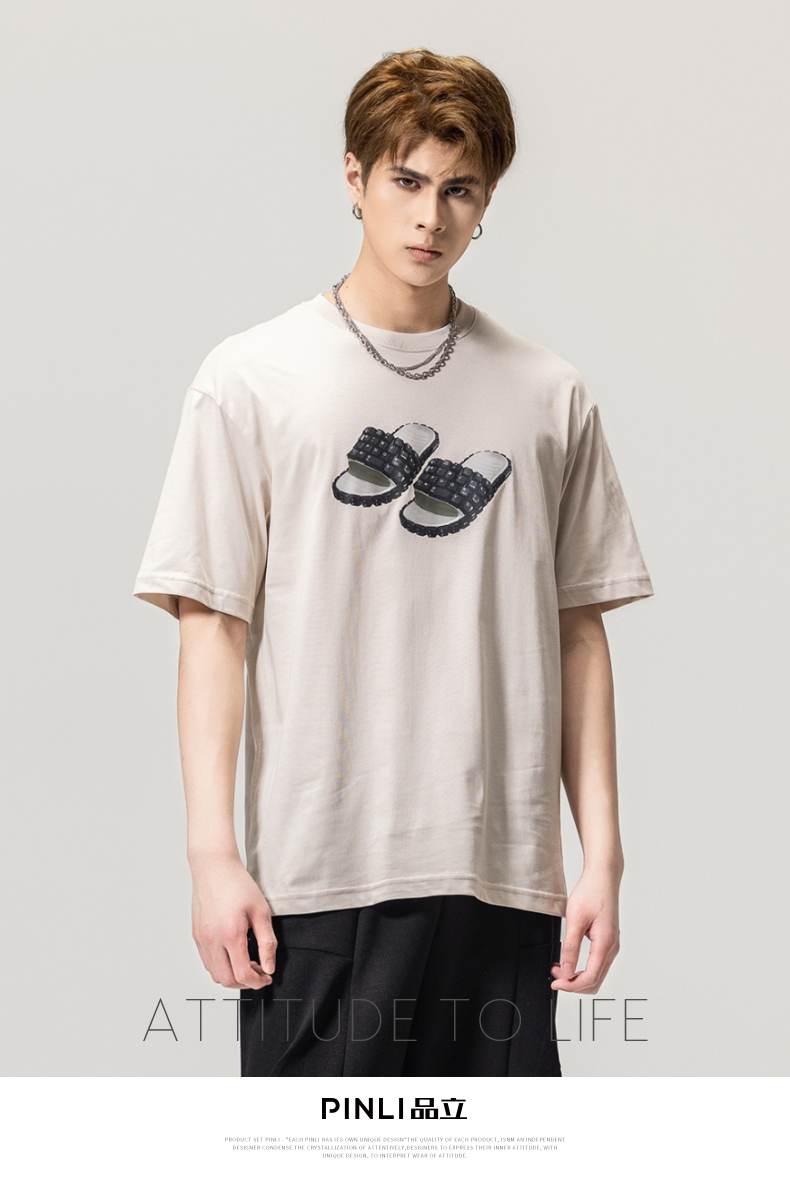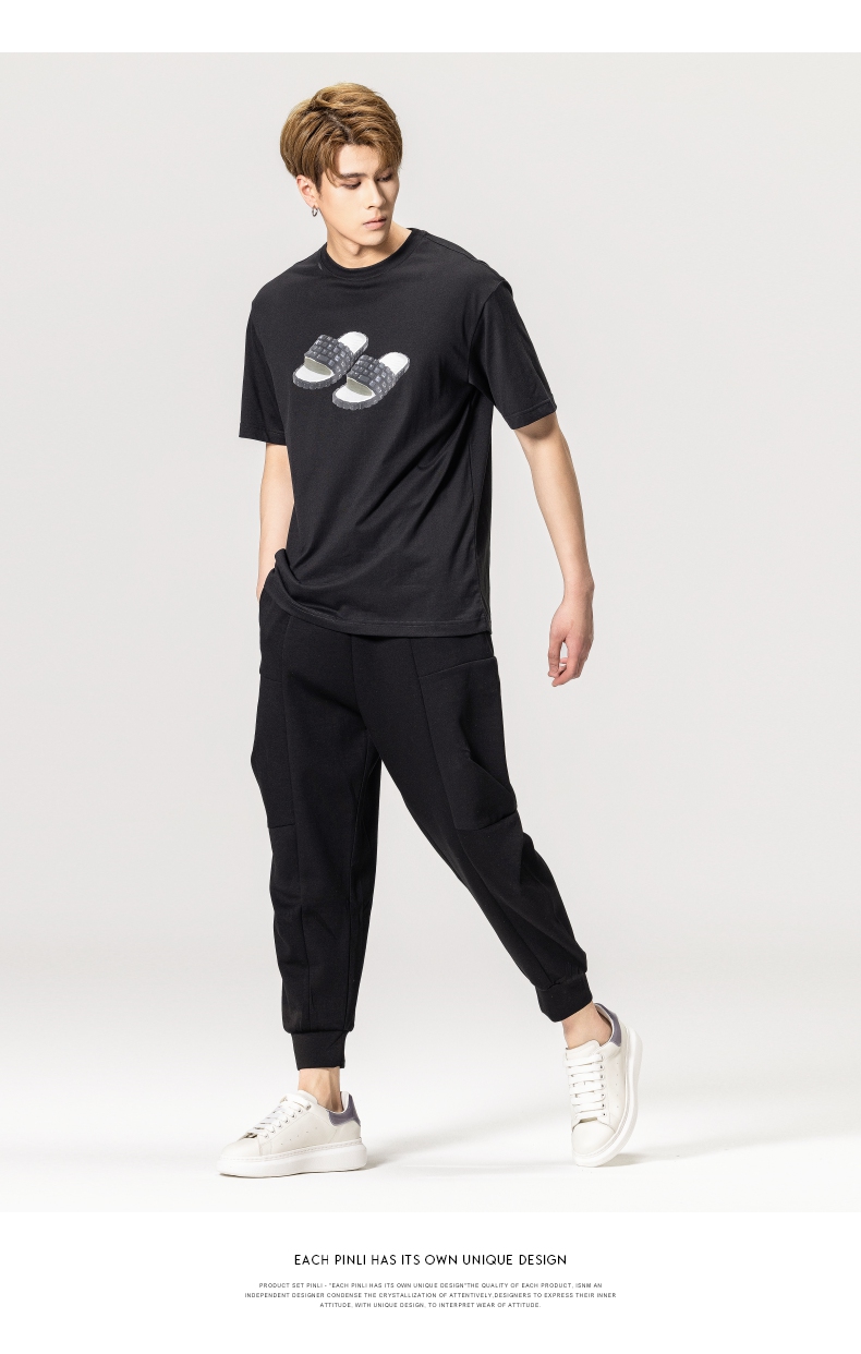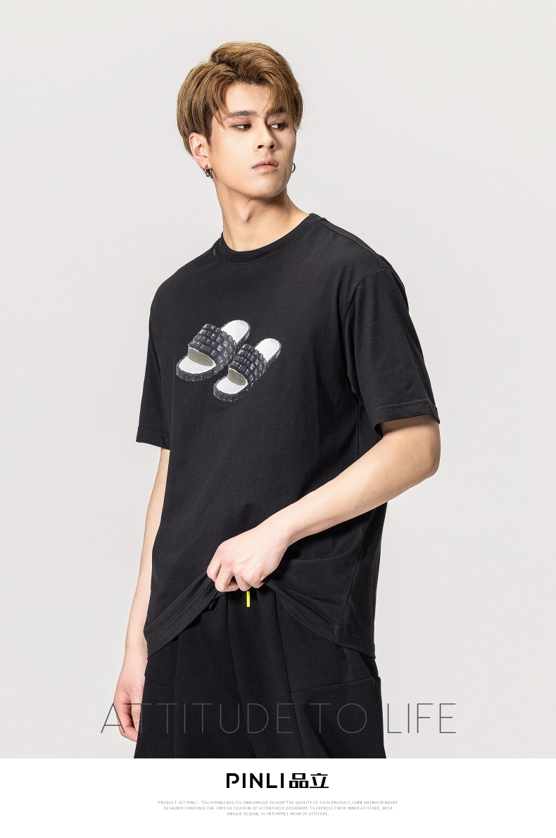 PINLI品立春季新款男士印花T恤圆领短袖休闲上衣BG231111038