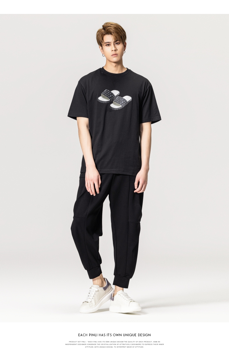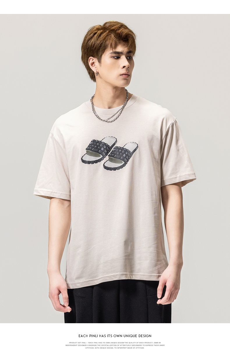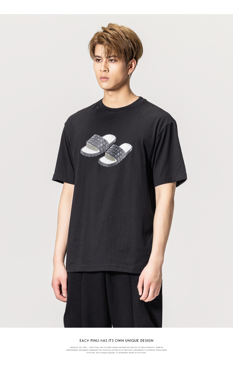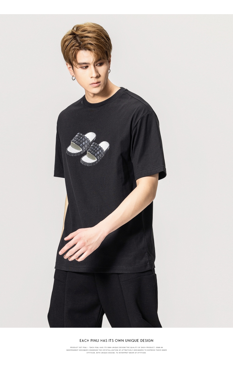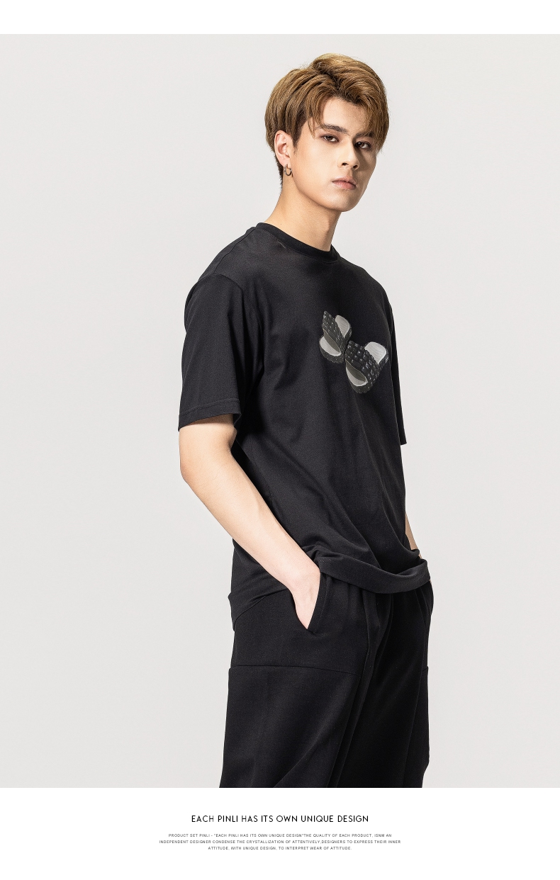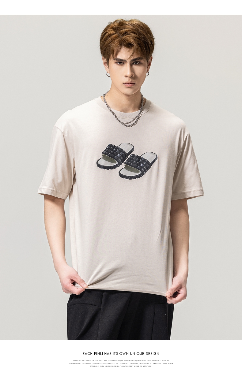 PINLI品立春季新款男士印花T恤圆领短袖休闲上衣BG231111038