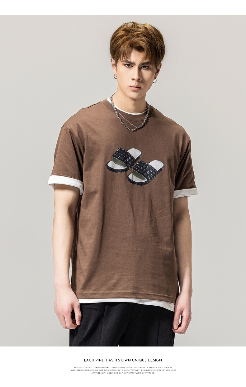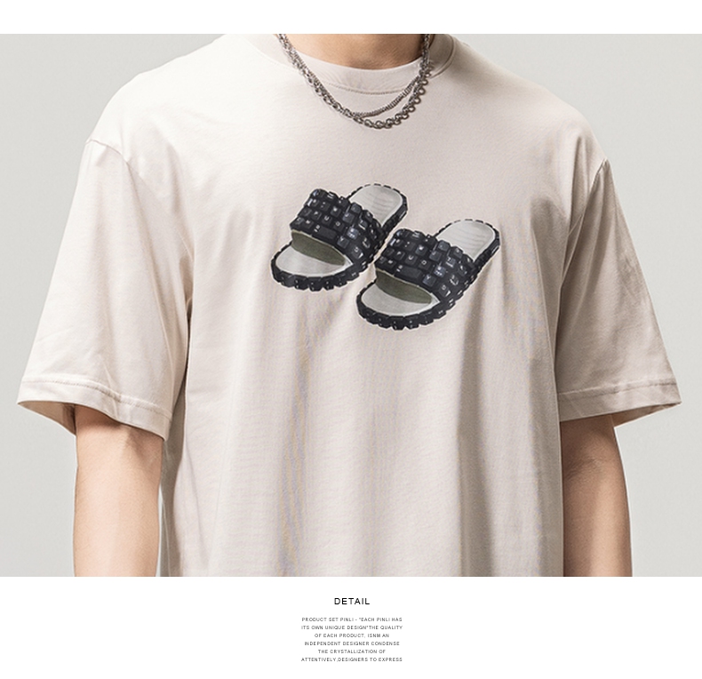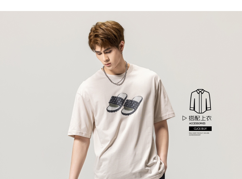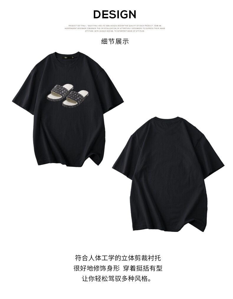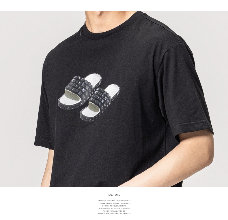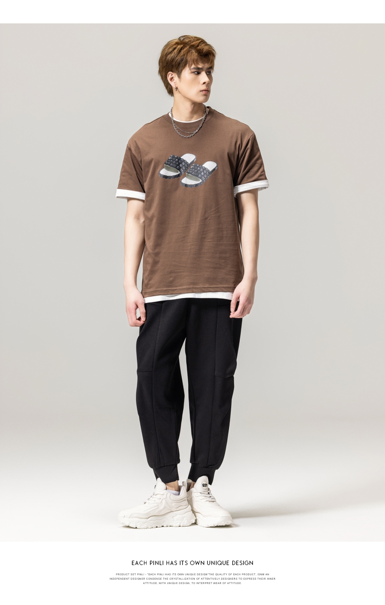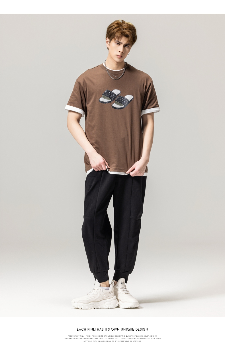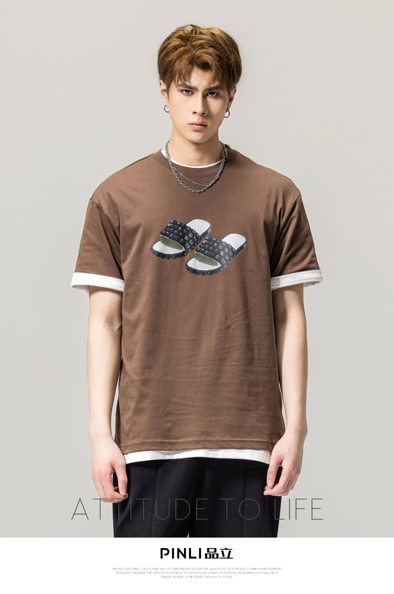 PINLI品立春季新款男士印花T恤圆领短袖休闲上衣BG231111038