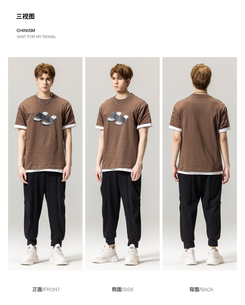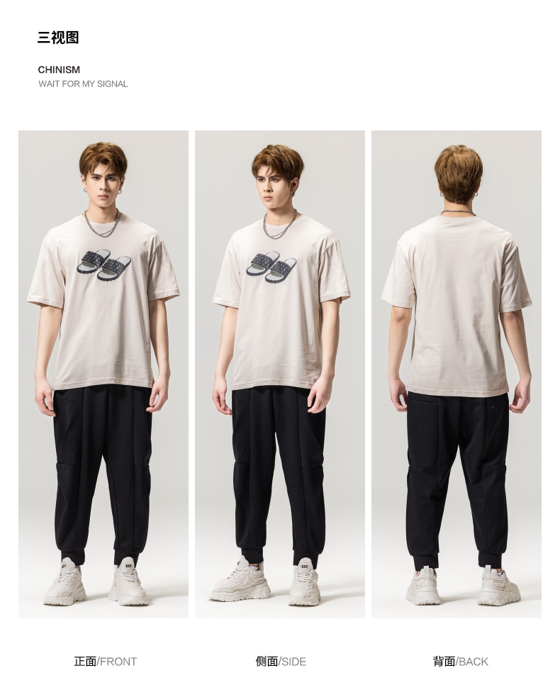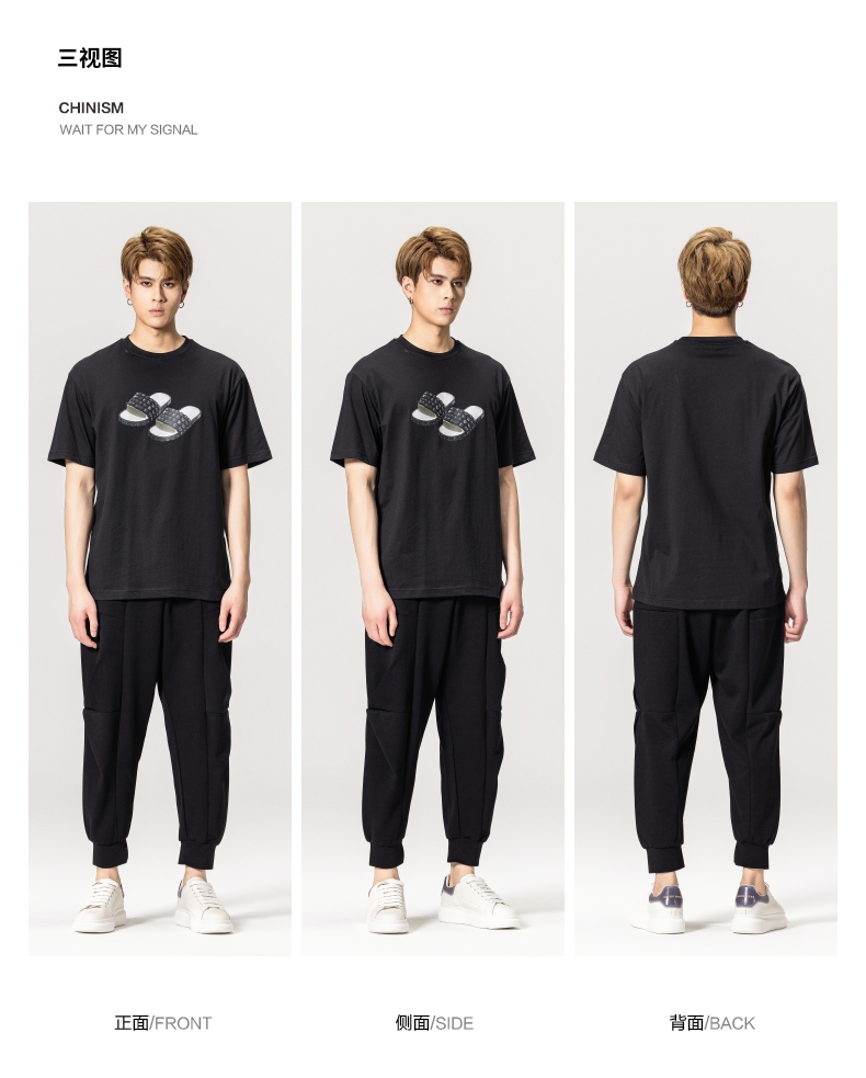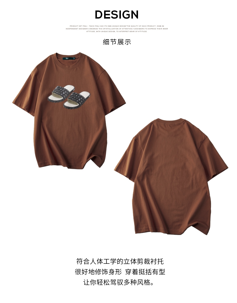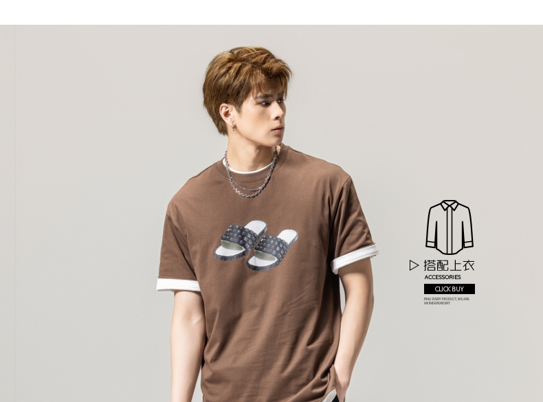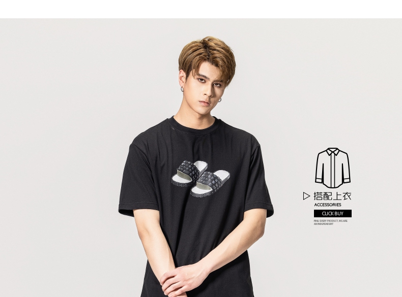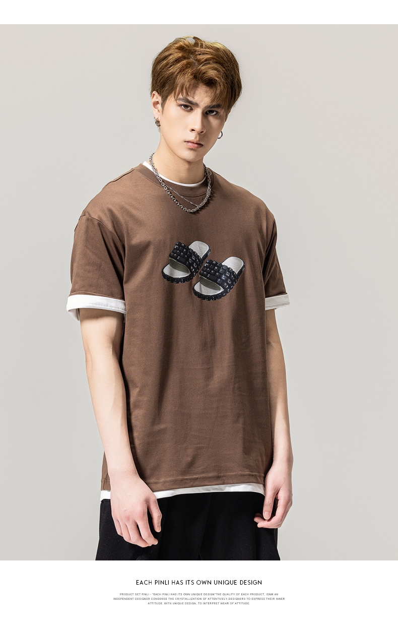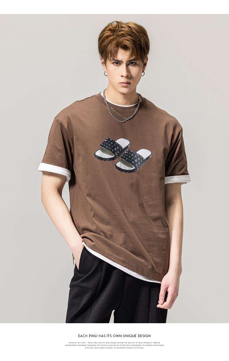 PINLI品立春季新款男士印花T恤圆领短袖休闲上衣BG231111038