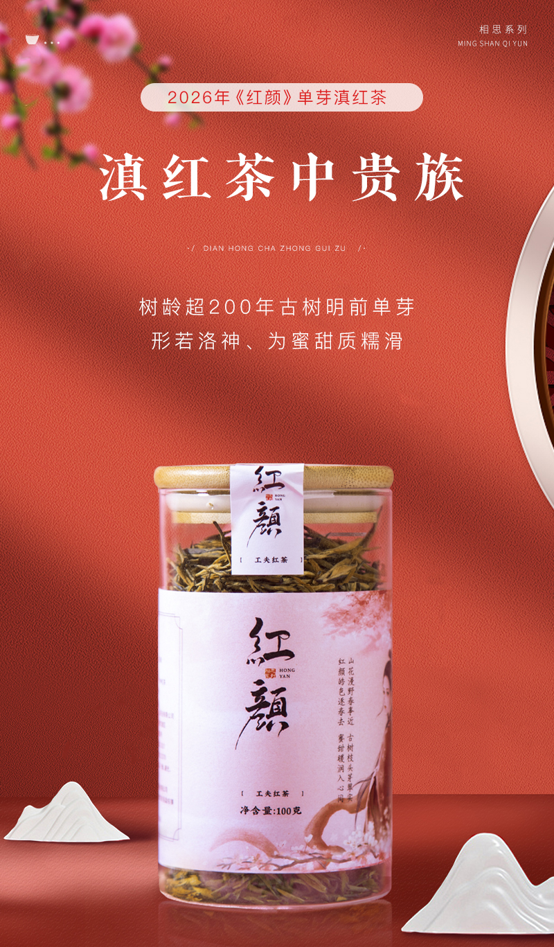【预售7折,买5送1】2026《红颜》古树单芽滇红茶 100克/罐