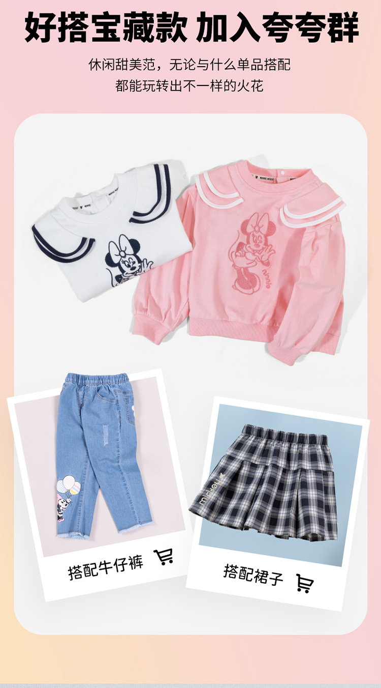 2024春季新款女童套头卫衣卡通米妮刺绣中小童内搭上衣运动服ZD1DS002