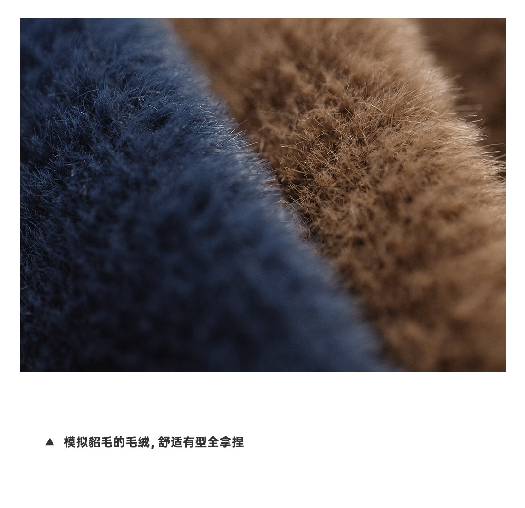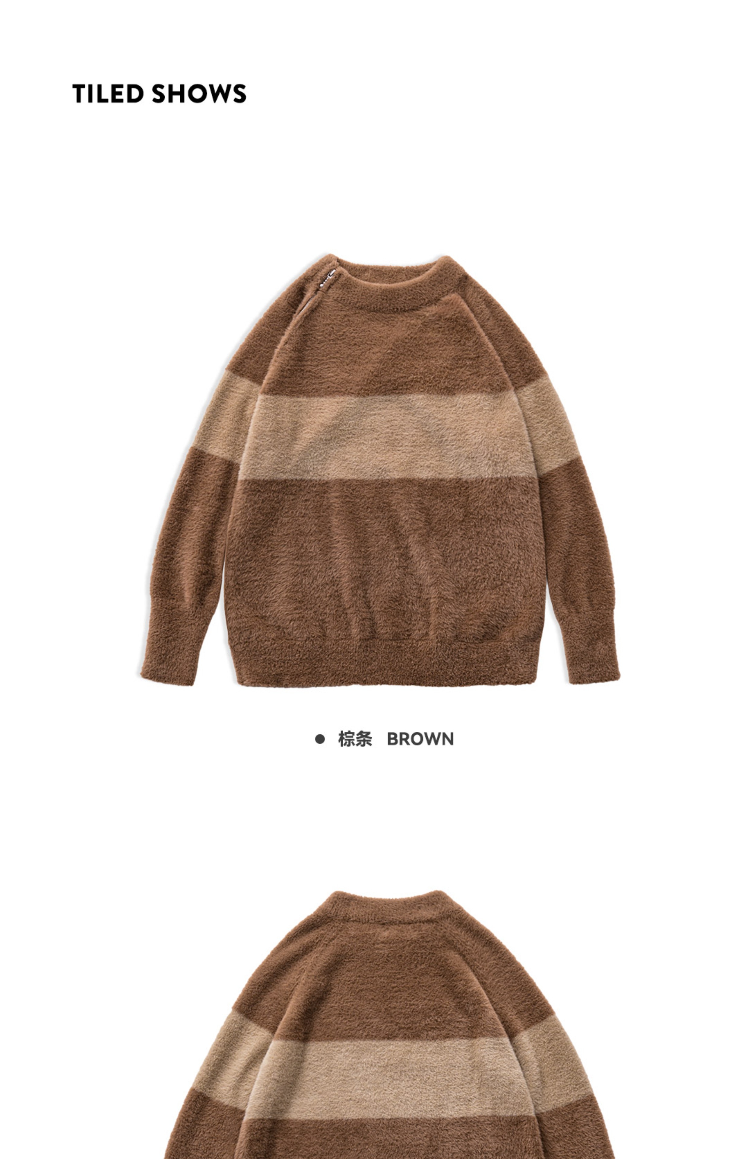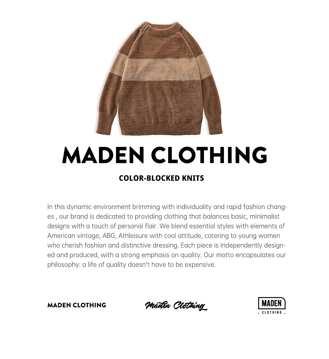 马登美式拼色仿水貂绒毛衣宽松慵懒毛茸茸针织衫套头圆领上衣冬女