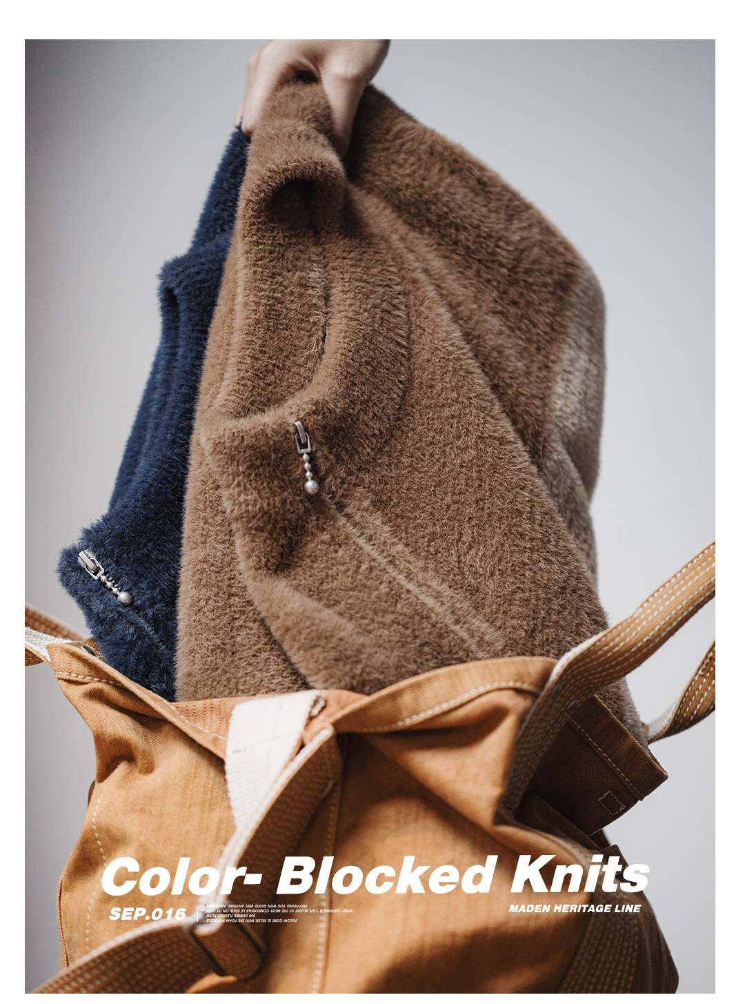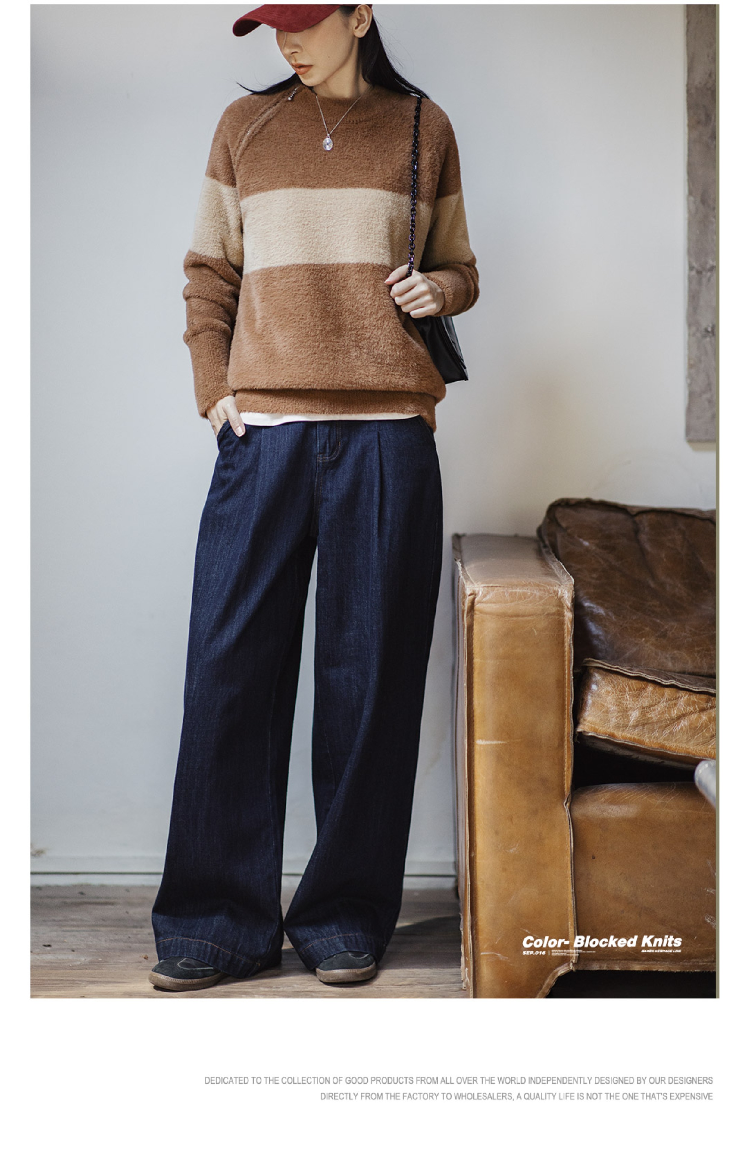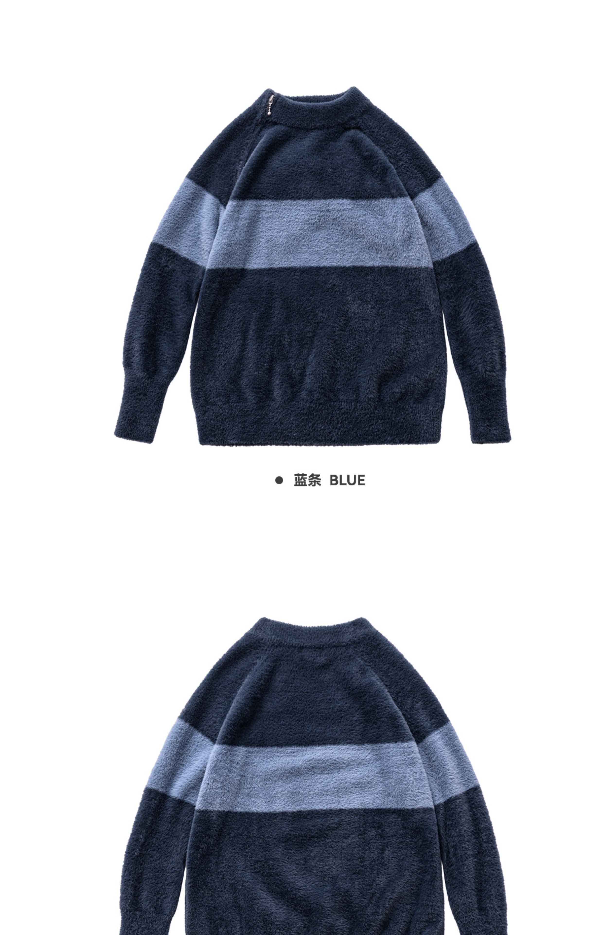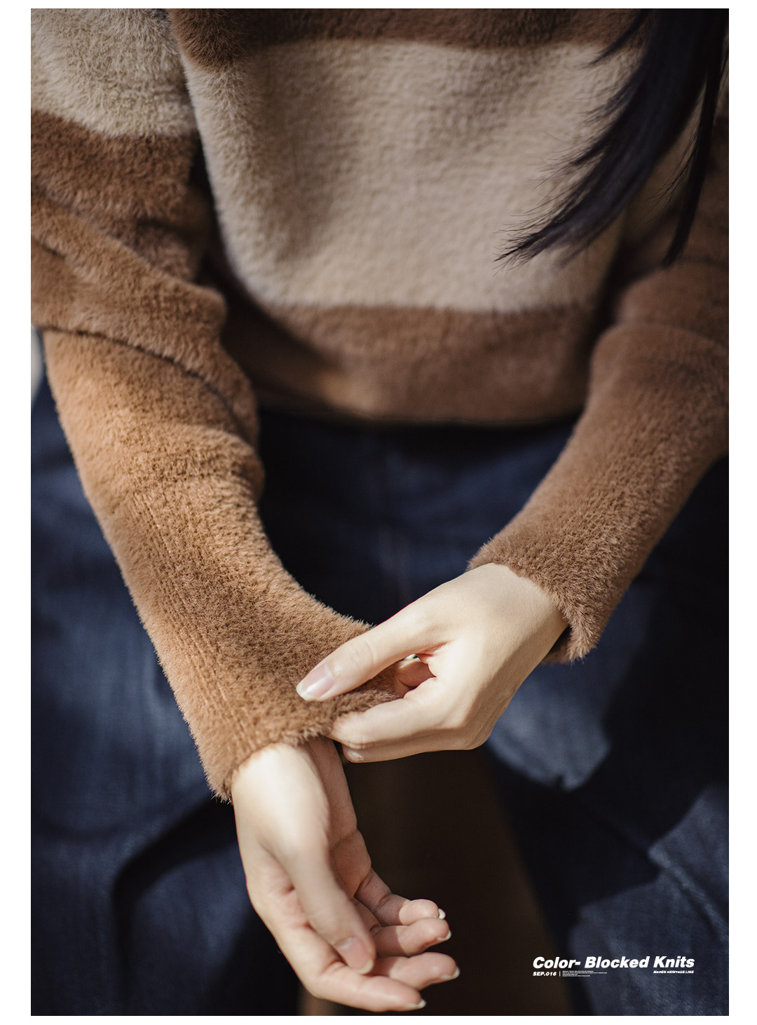 马登美式拼色仿水貂绒毛衣宽松慵懒毛茸茸针织衫套头圆领上衣冬女