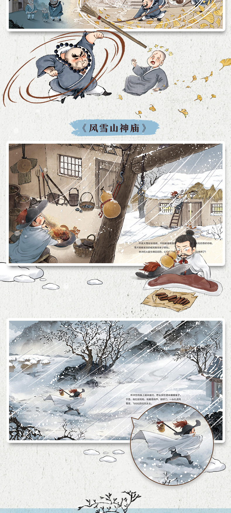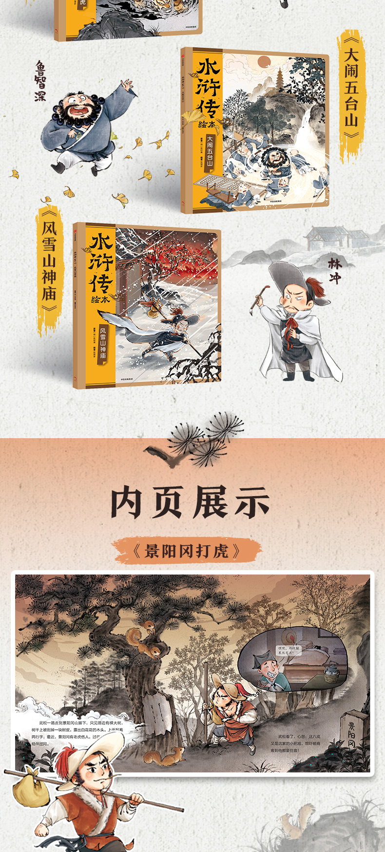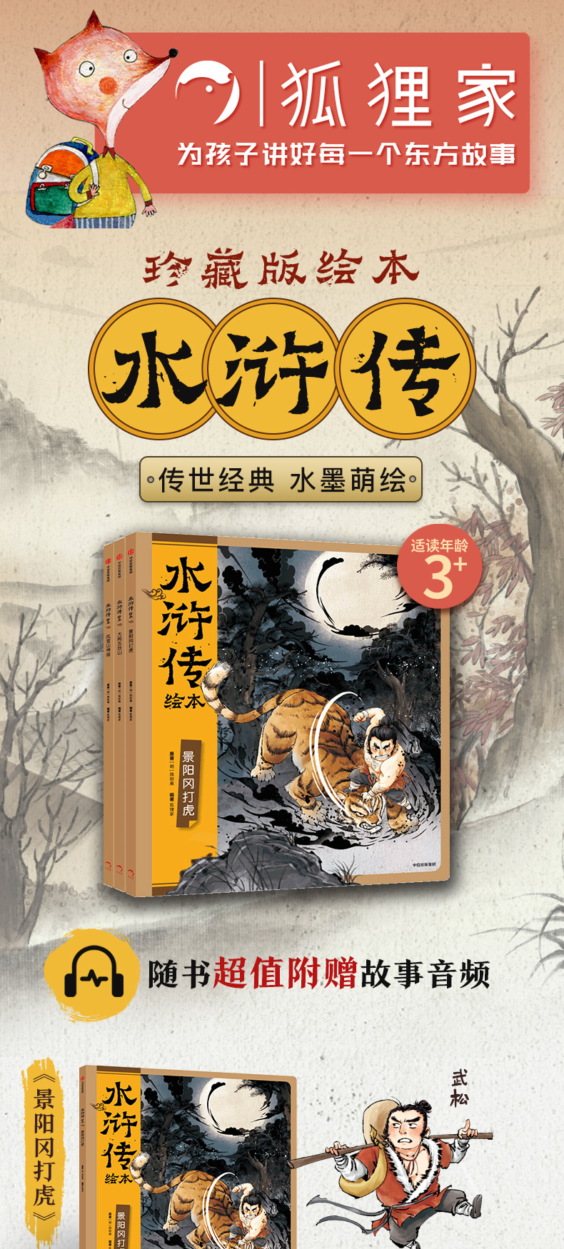 狐狸家上新 水浒传绘本【平装】赠音频 3-12岁 经典亲子阅读(景阳冈打虎+大闹五台山+风雪山神庙)