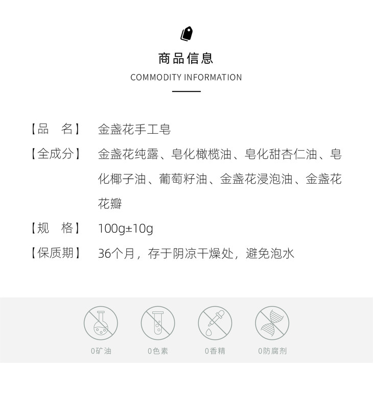 这是一款非常温和,适宜孕妇儿童和脆弱肌肤使用的手工皂。高品好油+金盏花浸泡油、金盏花精粹,香气非常棒!