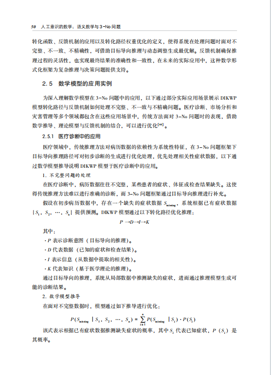 序1. 引言人工智能(AI)的飞速发展已无可否认地进入到我们日常生活的方方面面。无论是在医疗健康、金融服务、智慧城市,还是自动化生产、无人驾驶等行业,AI技术正在重新定义效率、创造力和社会结构。然而,随着人工智能的不断深入,我们逐渐面临着一些新的挑战,这些挑战不仅仅是技术层面上的,更涉及到对认知、伦理、可解释性等更为复杂的问题的解决。特别是在;开放世界的背景下,AI所面临的三大核心难题不完备性、不一致性和不精确性(即;3_No问题)已经成为制约其发展的瓶颈。传统的AI系统,尤其是基于封闭世界假设(CWA)的系统,依赖于一个前提假设:所有相关信息是已知且可以完全验证的。然而,在真实世界中,这种设定往往是不可行的。数据的不完备、信息的冲突以及决策的不精确性是人工智能系统无法避免的问题。因此,如何有效地解决这些问题,成为AI研究中的一项重要课题。在这方面,段玉聪教授提出的3_No问题框架为应对开放世界中的这些认知难题提供了一个全新的视角。该框架通过结合语义数学,提出了一种基于目标导向的语义操作机制,试图超越传统精确化推理的框架,借助语义空间的动态生成来应对信息不完整或存在冲突的情境。这一理论不仅突破了传统的封闭世界假设,更为AI的伦理与决策问题提供了新的解法。本书旨在系统阐述这一3_No问题框架及其背后的数学原理,并探讨其在现实世界中的应用。通过本书,读者将深入了解如何通过语义数学与目标驱动的语义操作来有效应对不完备、不一致和不精确的信息,最终为AI系统提供更加可靠和灵活的决策支持。2. 人工意识与3_No问题的背景;3_No问题指的是在人工智能系统中,由于数据、信息或知识的缺失、不一致或模糊性,导致系统无法提供完美、准确的决策和推理。这是AI在面对复杂世界时不可回避的局限。在传统的计算模型中,AI的推理通常依赖于完备且一致的数据。然而,在现实世界中,尤其是在开放世界的背景下,这一设定往往无法成立。AI系统往往需要应对以下几种常见情况:?不完备性:系统输入或推理过程中缺乏必要的某些信息或数据,导致无法做出全面的推理。?不一致性:输入的数据或信息之间存在冲突或矛盾,传统推理方法往往无法有效处理这些冲突。?不精确性:数据或信息本身模糊不清,传统的精确化处理方法往往无法有效消解这种不确定性。这三种问题本质上揭示了人工智能在处理真实世界中的复杂性和不确定性时的困难。而段玉聪教授提出的3_No问题框架则通过重新设计决策机制,突破了传统方法的限制,提供了一个解决路径:目标导向的语义操作。3. 目标导向的语义操作:理论框架的创新段玉聪教授的理论核心是基于目标导向的语义操作。与传统的基于逻辑推理的人工智能模型不同,这一框架强调通过动态调整和目标驱动的语义生成来解决不完备、不一致、不精确的问题。具体而言,人工智能系统不再依赖于对所有数据和信息的精确和一致性要求,而是通过目标导向的方式,通过语义空间的动态生成来补充和调整推理过程。这种方法的关键特点包括:1. 去形式化追求:传统的AI系统往往强调对数据和知识的精确建模和形式化推理。而3_No问题框架则强调不拘泥于形式化的完备性和一致性,而是在语义空间中构建灵活、动态的;存在性解决方案。这种方法突破了传统的;完美解概念,更多地关注如何在不确定的情况下提供有效的决策支持。2. 语义空间的动态生成:在3_No框架中,语义生成是一个动态过程。AI系统通过对目标和环境的反馈,不断调整其推理路径,并在不断变化的语义空间中生成新的知识和信息。这一过程不依赖于对所有信息的完备性,而是通过对已有信息的灵活处理和语义关联,弥补信息缺失、解决矛盾和消解不确定性。3. 意图驱动(Purpose_Driven):与传统的基于事实和数据的推理不同,3_No问题框架中的决策是由;意图引导的。AI系统通过识别目标,动态调整决策路径,在数据不完全或不一致的情况下仍能做出符合预期的决策。意图驱动的方法强调的是目标的重要性,而不是对每一个数据点的精确控制。4. 语义数学与3_No问题的结合语义数学作为一种新型的数学方法,在3_No问题的解决中起到了核心作用。它通过在传统数学模型中引入语义元素,创造出一种能够处理复杂语义关系和不确定性的方法。在3_No框架中,语义数学的核心作用主要体现在以下几个方面:1. 数据的语义表征:语义数学通过对数据和信息进行语义化处理,将数据与其实际含义进行绑定。这种语义化的过程使得AI系统能够更好地理解和处理数据中的隐含信息,而不仅仅依赖于表面的结构。2. 信息的语义转化:在3_No框架中,信息的生成不仅仅依赖于数据的差异性分析,而是通过语义的关联和转化,使得AI系统能够从不完备的信息中推导出有意义的结果。通过语义数学的转化方法,AI系统能够在信息不完全的情况下生成高效的推理路径。3. 知识的语义融合与优化:语义数学通过建立更加灵活的知识结构,使得AI系统能够在面对不一致或模糊的信息时,灵活地调整知识体系,实现知识的综合与优化。这种优化不仅仅是数据上的处理,而是在知识网络中进行的动态整合。4. 智慧与决策的语义强化:最终,AI系统通过语义数学的引导,将智慧与决策的生成与目标紧密结合,实现精确而符合需求的决策。通过语义生成