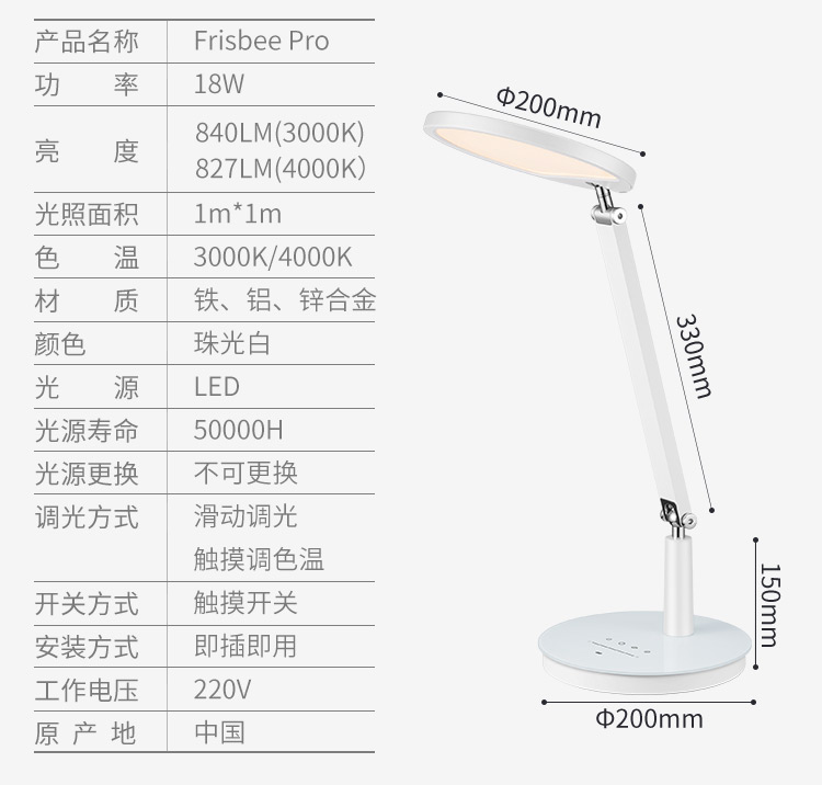 Frisbee护眼台灯 无蓝光、频闪危害,欧盟认证,金属材质环保安全,AA照度(接近阳光),获红点大奖、IF大奖等国际设计大奖