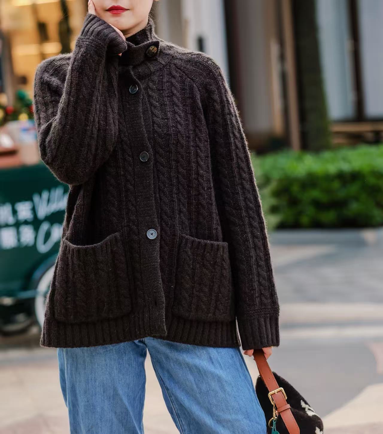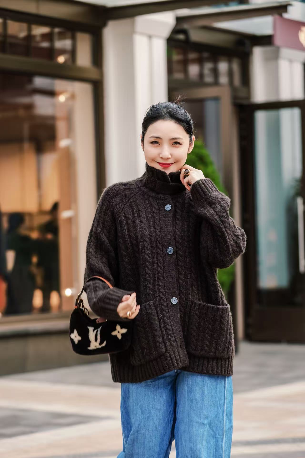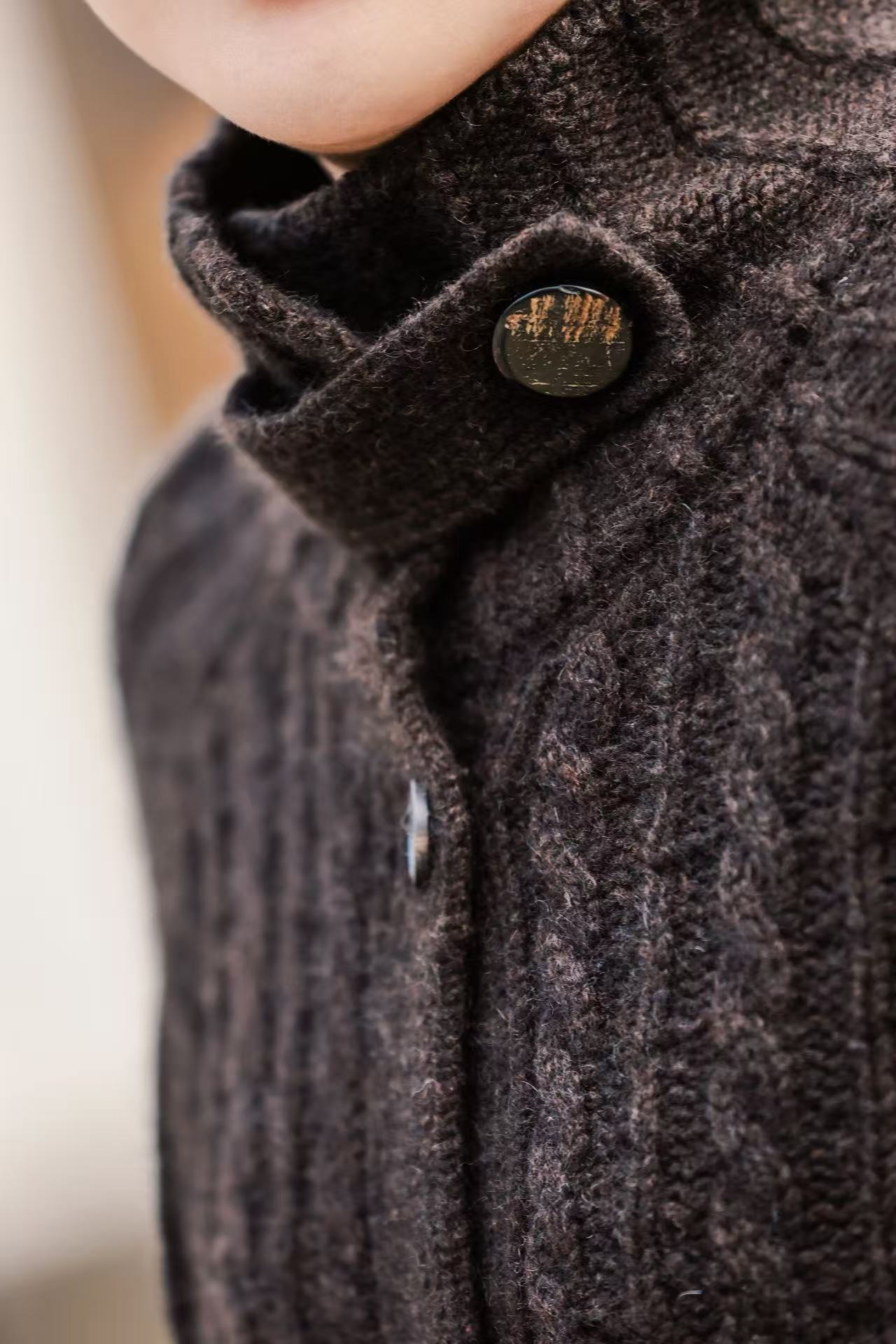 正面饰有单排扣及领口装饰性纽扣及饰带