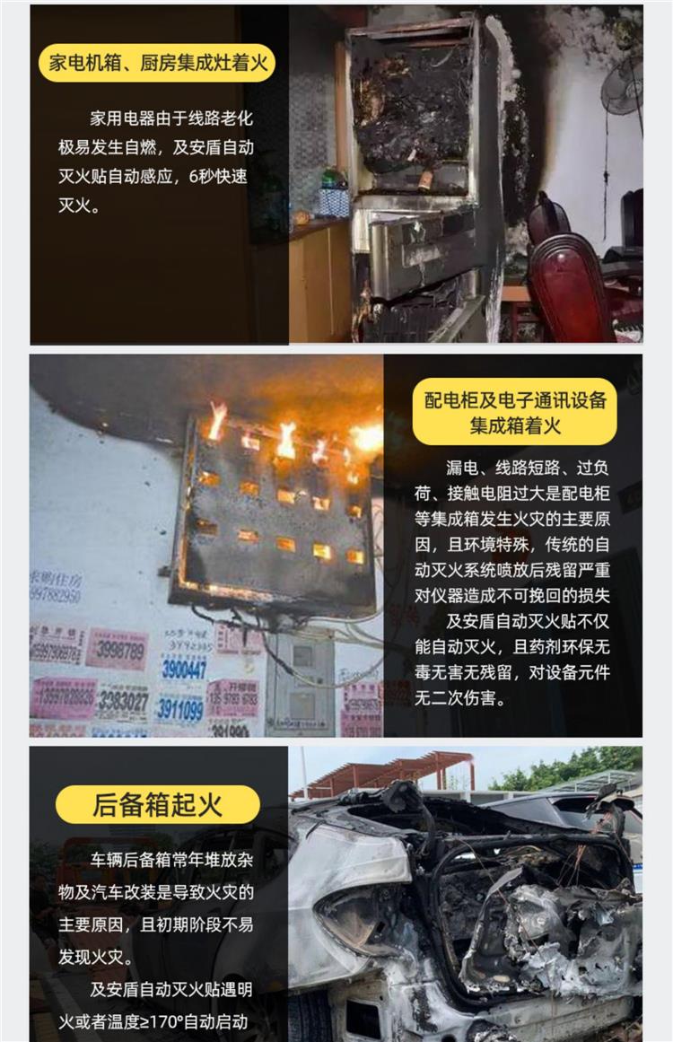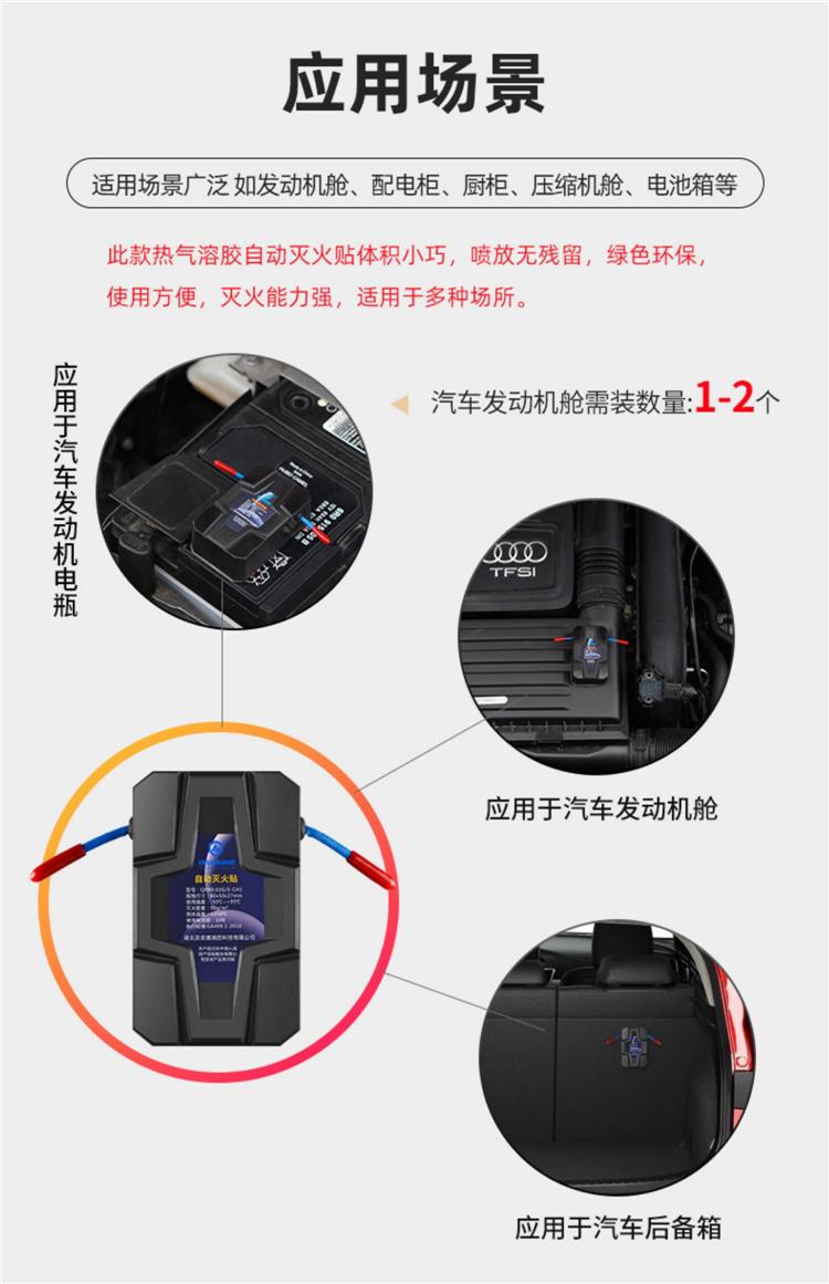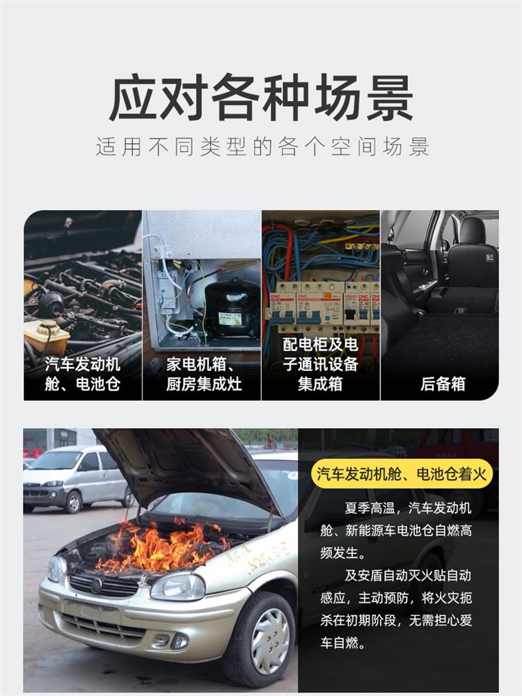 及安盾品牌 自动灭火贴车用车载后备箱,汽车引擎防火 家用贴冰箱厨房电表 消防装置