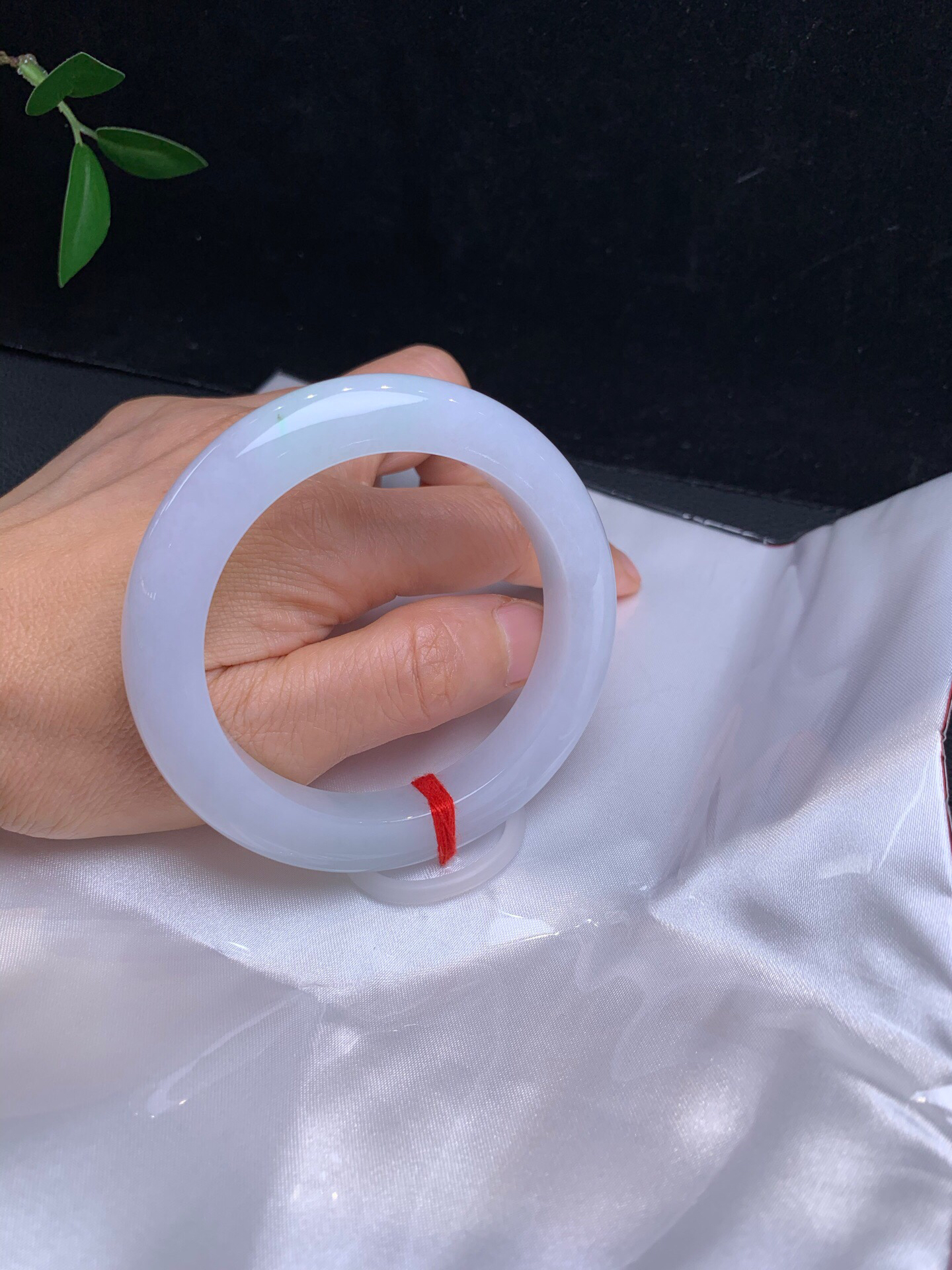 620001,57.3淡紫飘绿手镯,12.3-9.8mm,整条底妆细腻 带淡淡的紫,飘一点绿,干净完美。超值价💰16500 #优石客珠宝#香玉荟萃