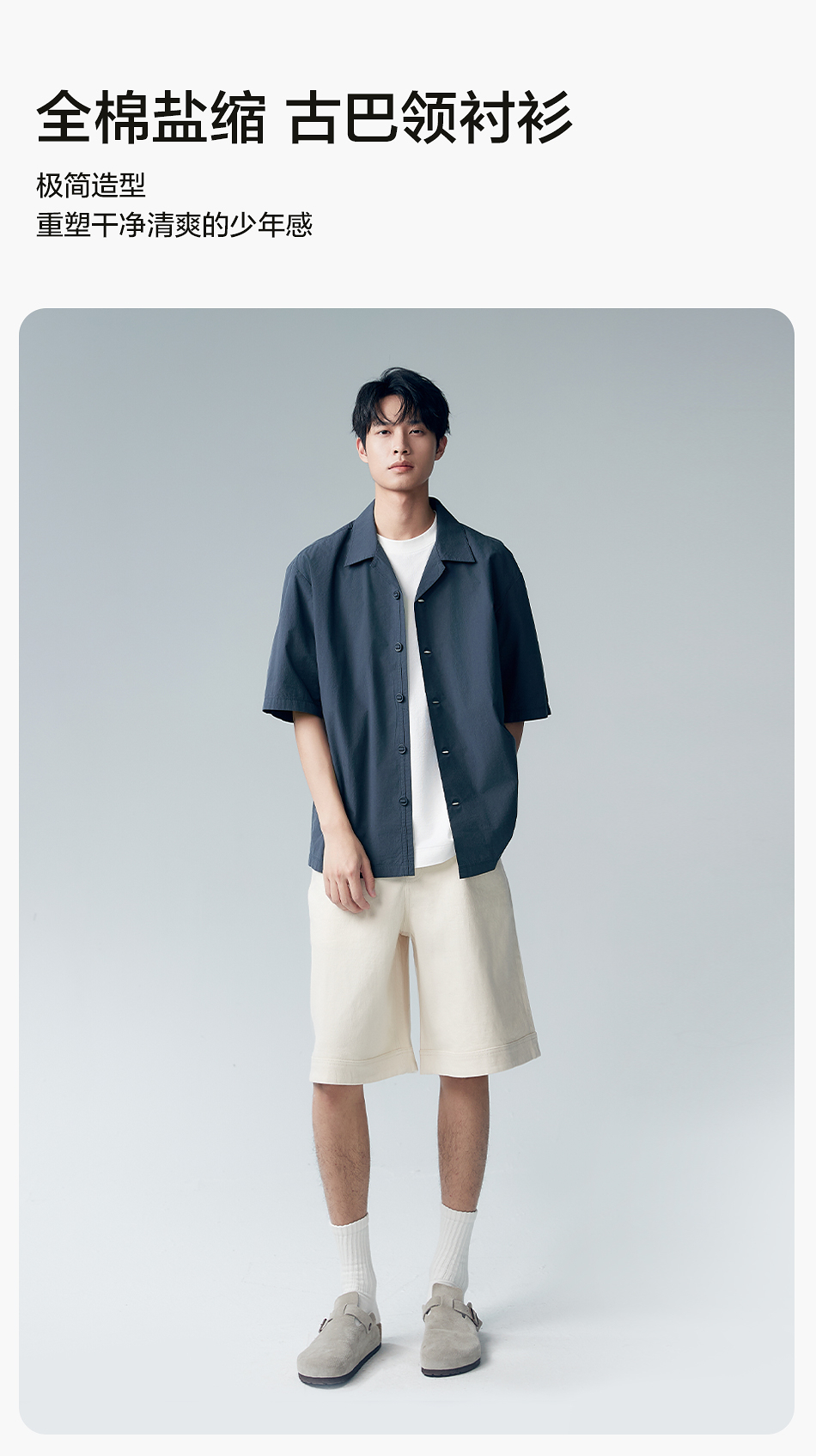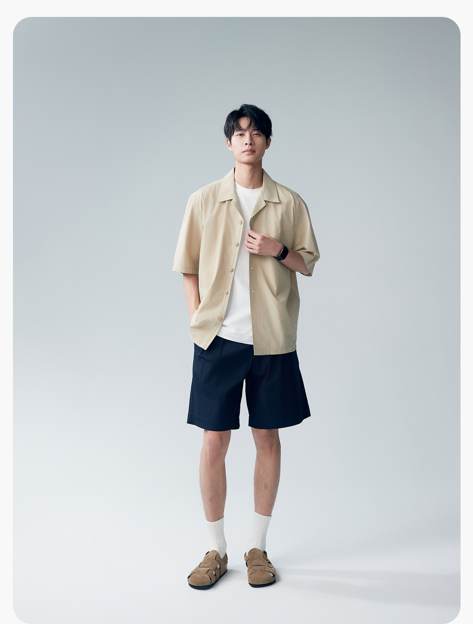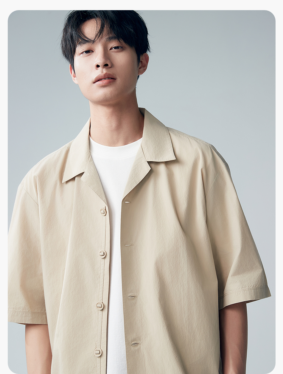 棉仓353804007-宽松落肩全棉盐缩古巴领短袖衬衫