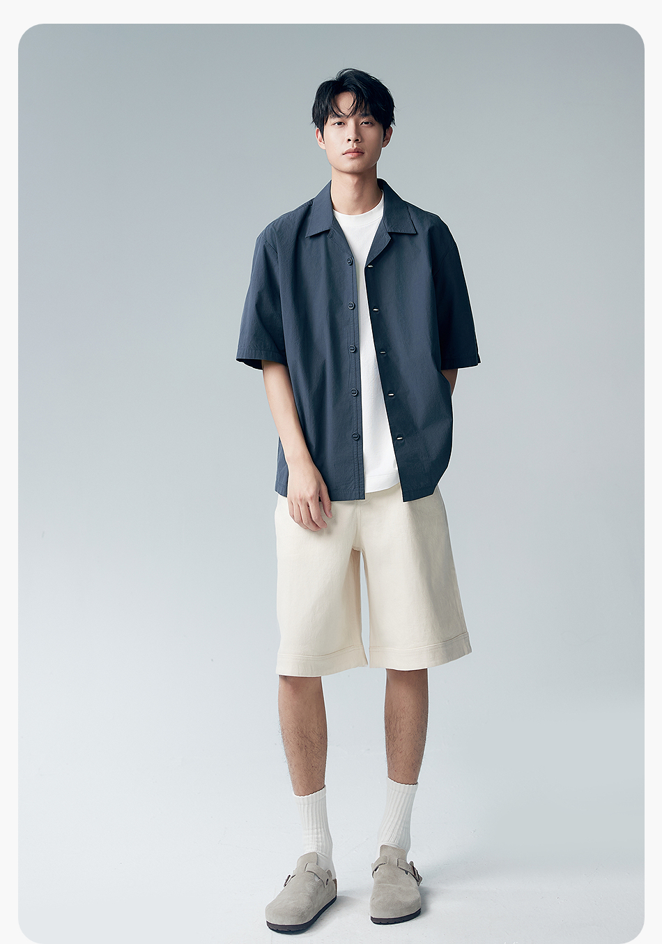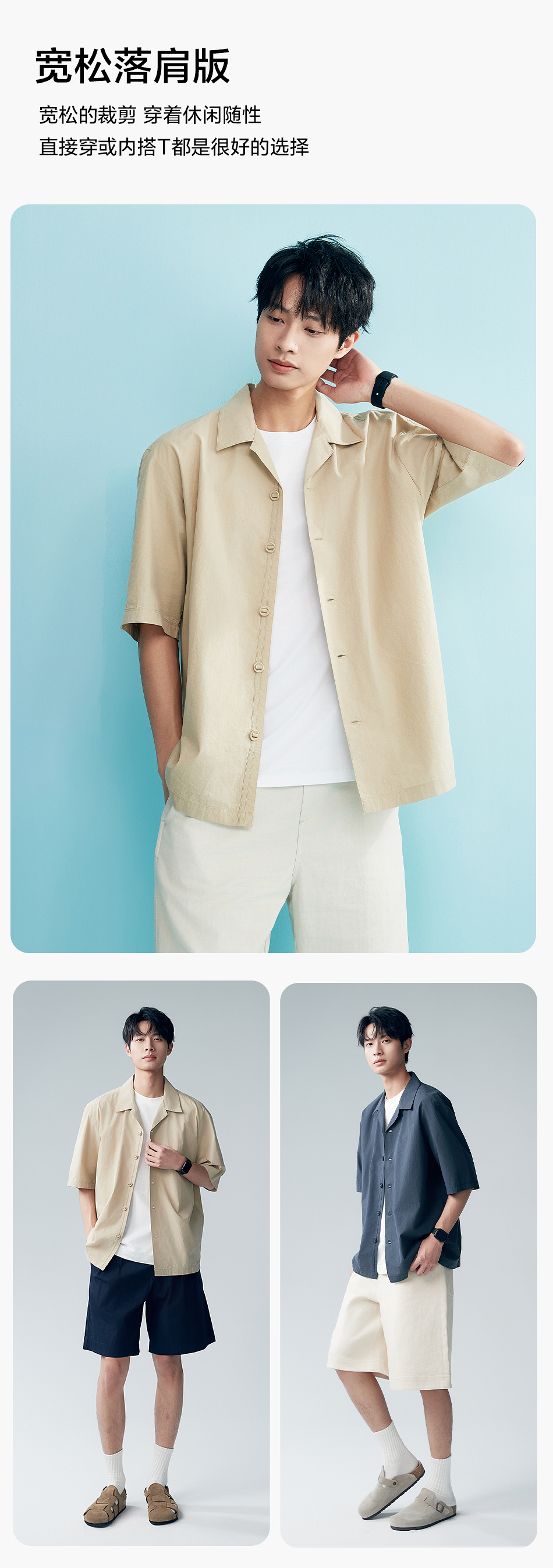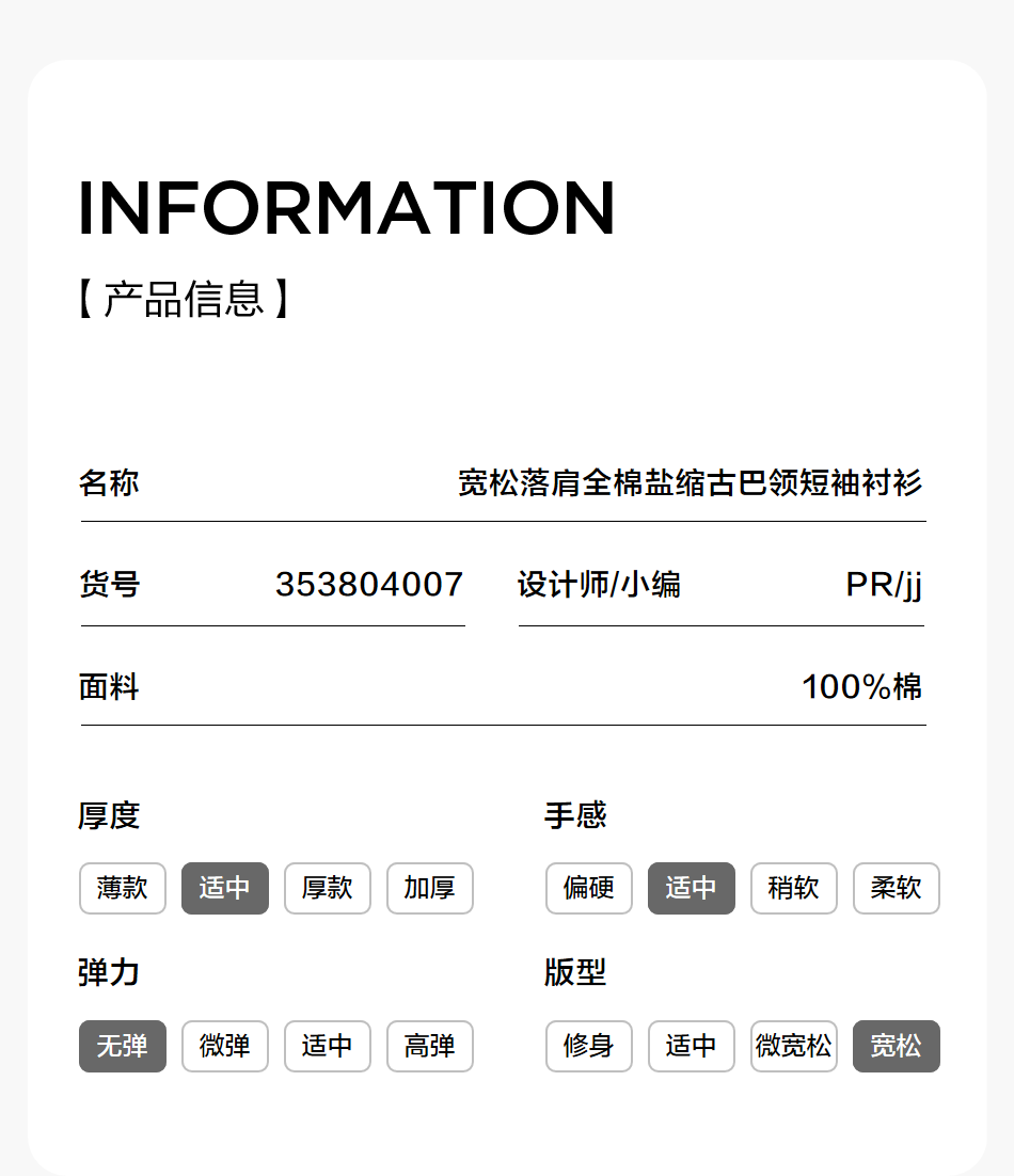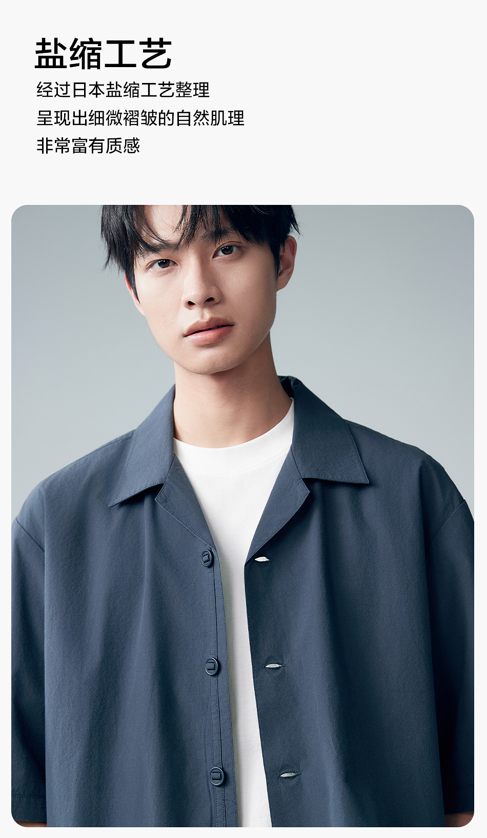 棉仓353804007-宽松落肩全棉盐缩古巴领短袖衬衫