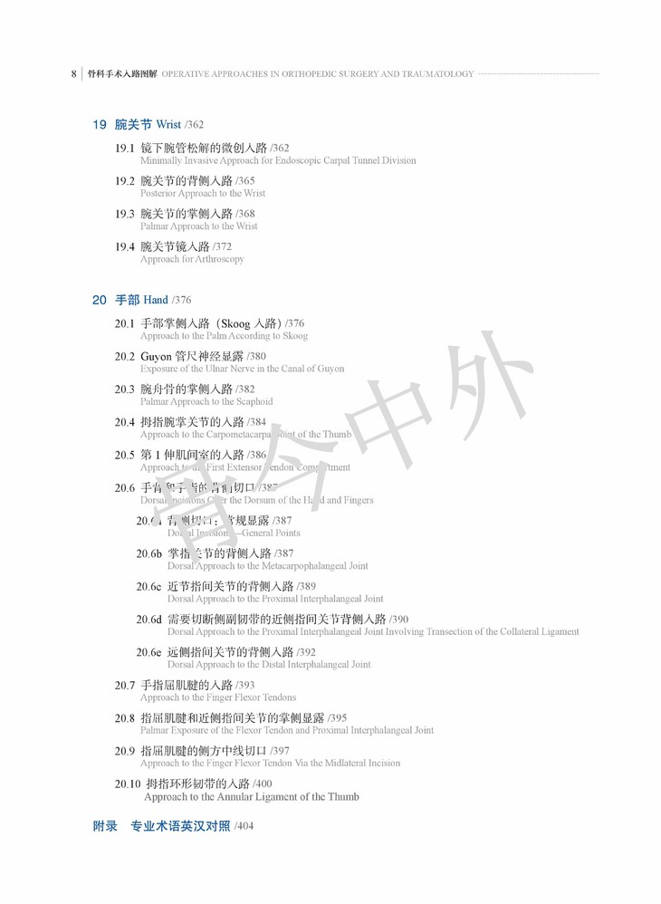 本书为国际上最为经典的描述骨科与创伤外科手术入路的图谱之一,被美国骨科医师协会列入美国骨科专科医师培训阶段推荐阅读书目。其通过新颖的编写理念、简洁的文字风格以及精美的手术解剖插图表现出来的手术入路展示方式,重新定义了临床教授骨科手术入路的范式。自1987 年第1 版问世后本书便得到了业内的高度赞誉,是临床骨科医生案头必备的参考书。