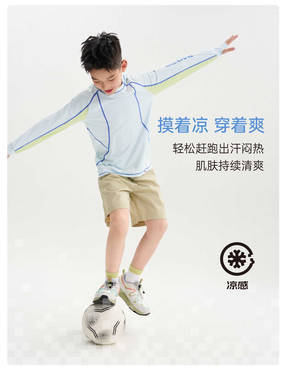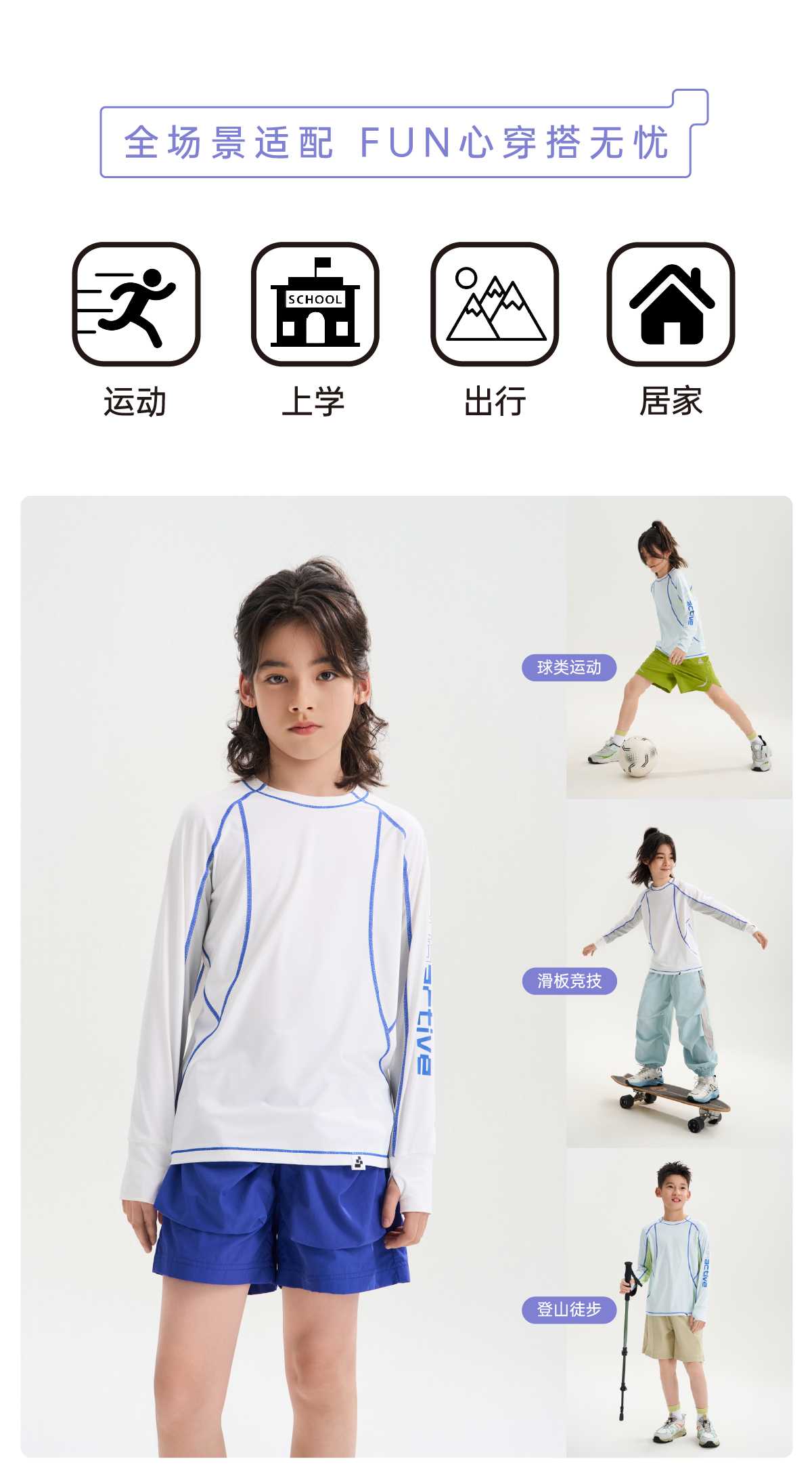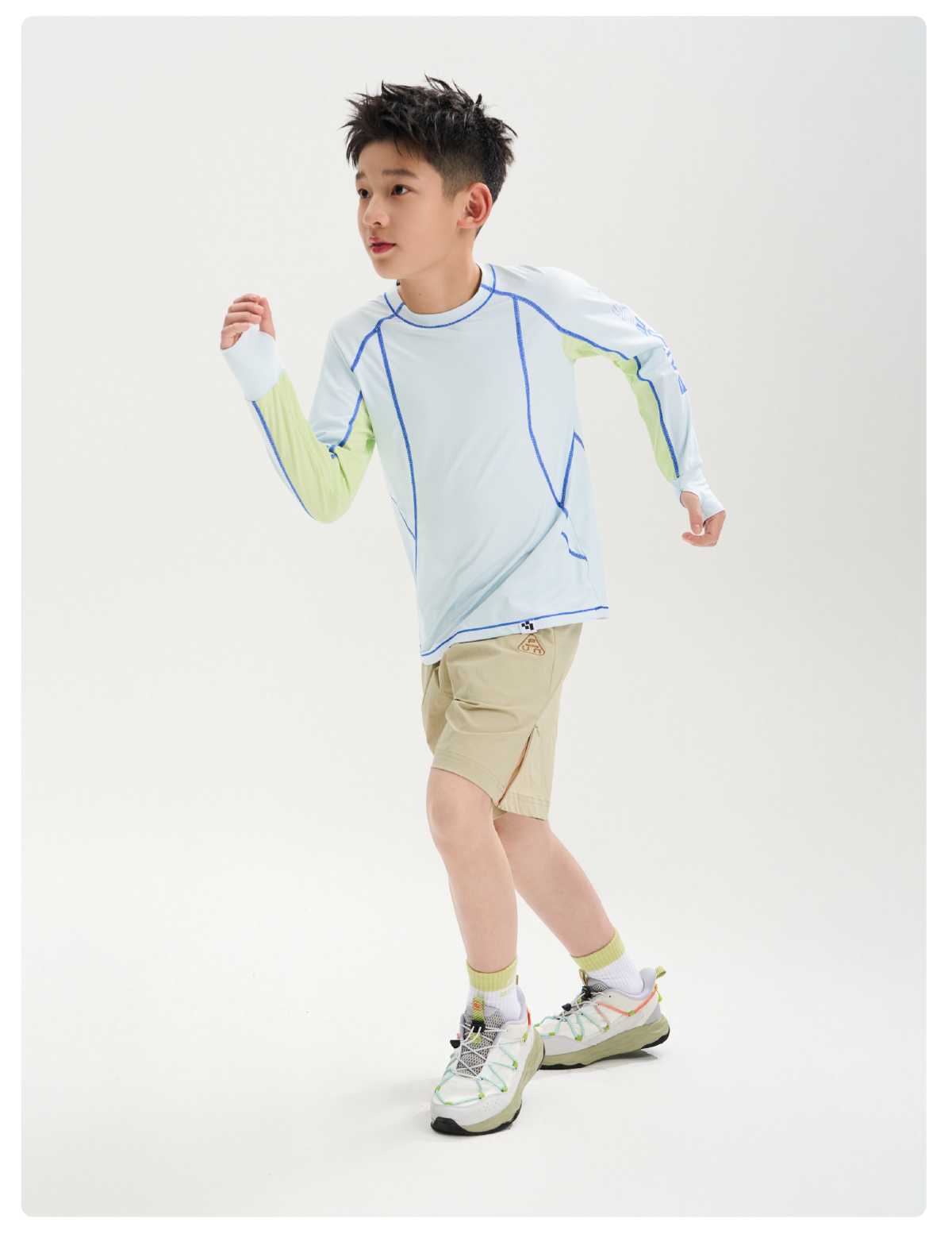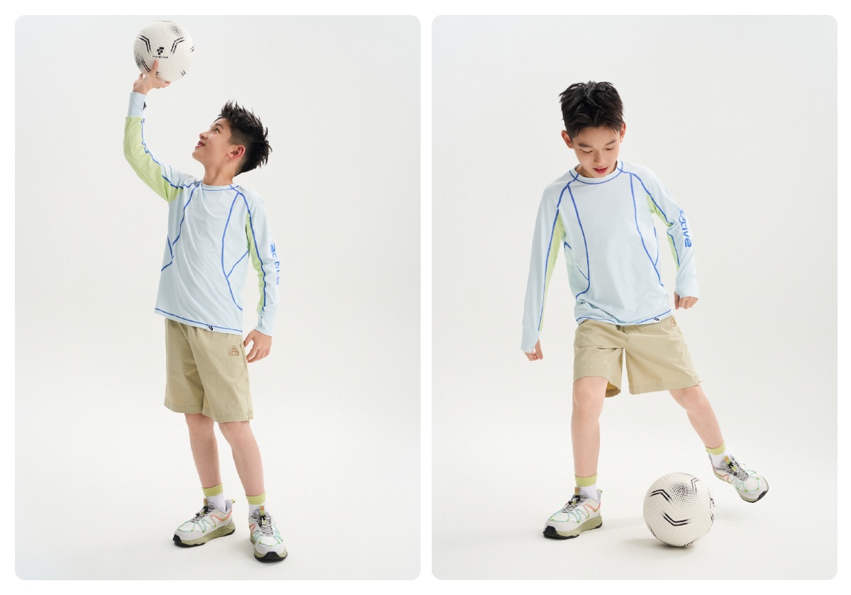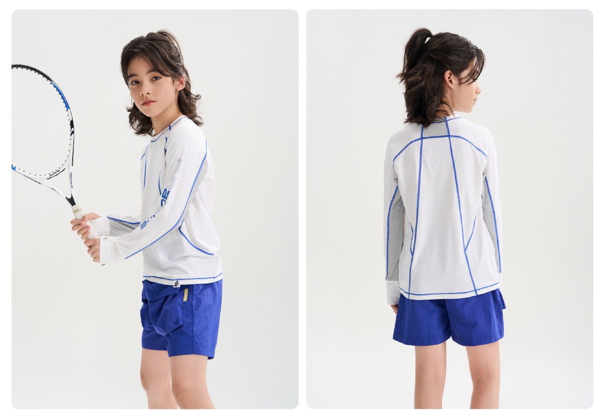 funactive男童原纱防晒长袖T恤儿童羽毛网球运动上衣F1UT20318