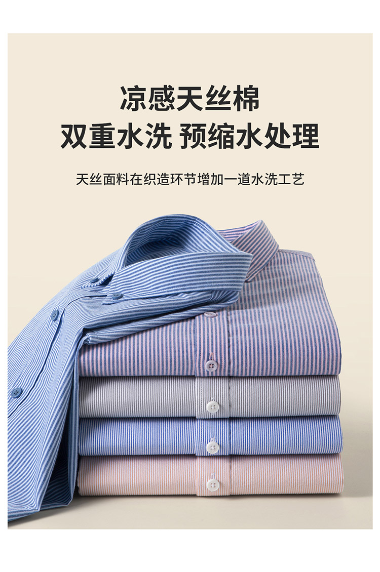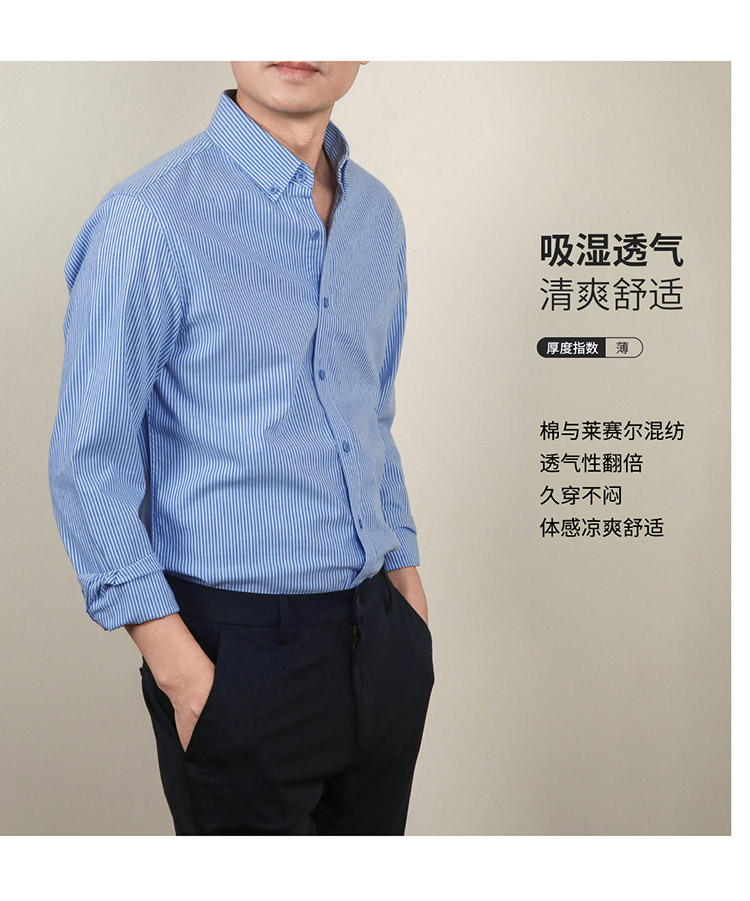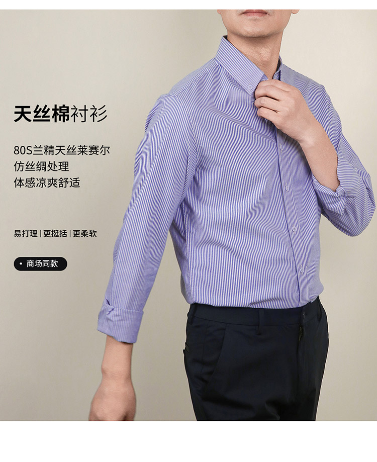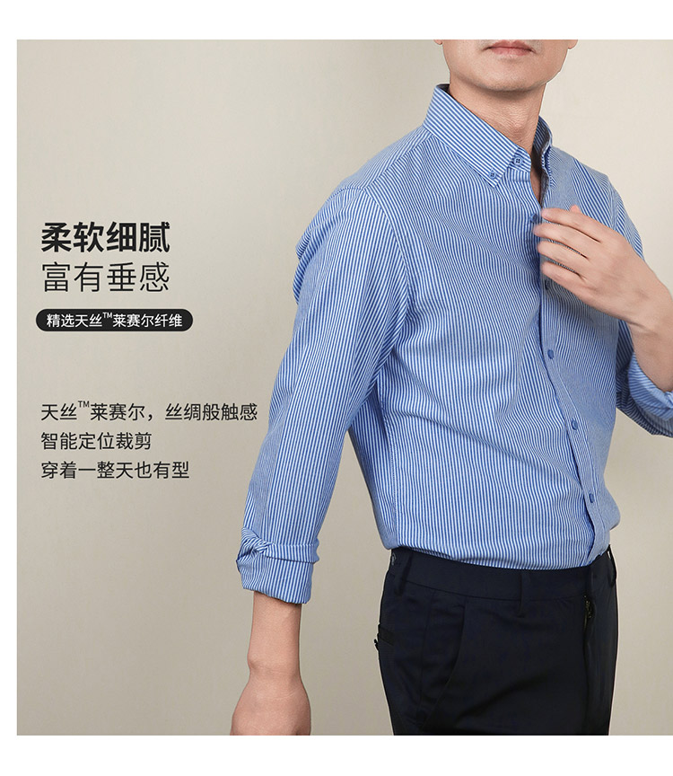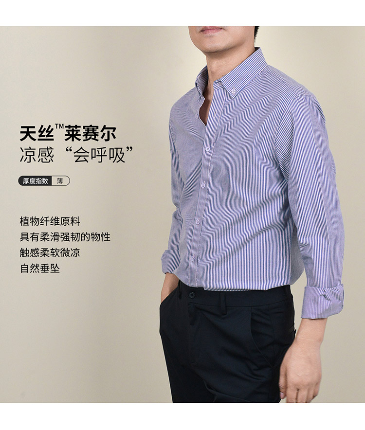 【莱赛尔棉】罗蒙春秋男士经典条纹长袖衬衫商务翻领休闲百搭通勤职业上班衬衫男