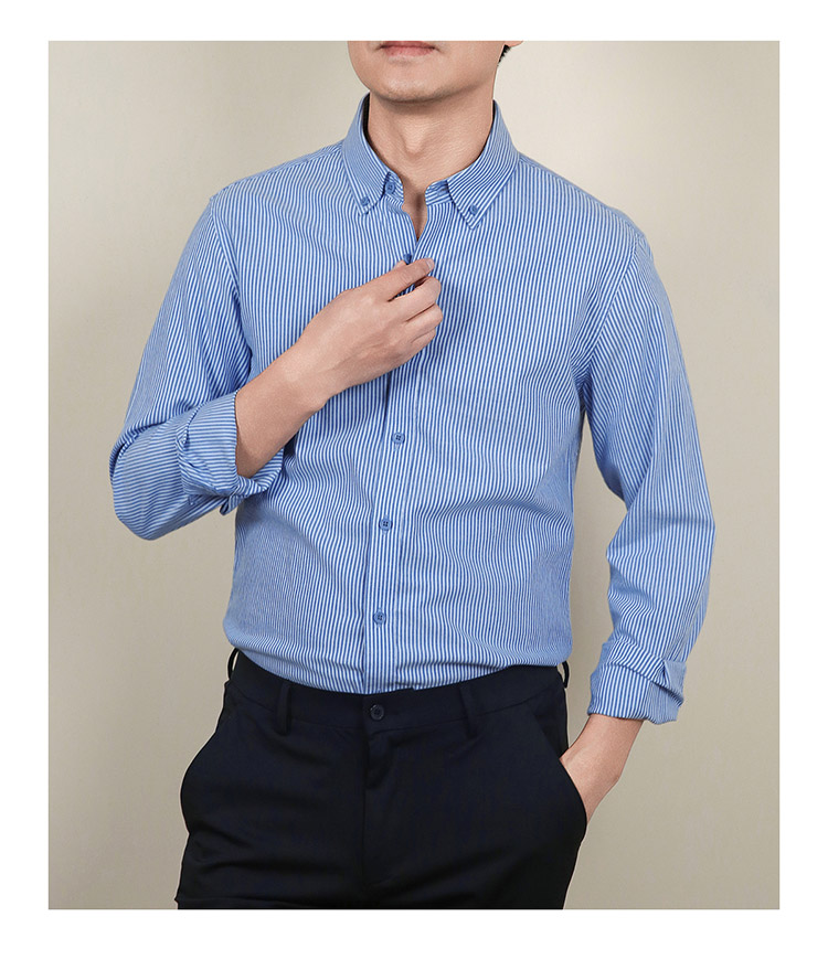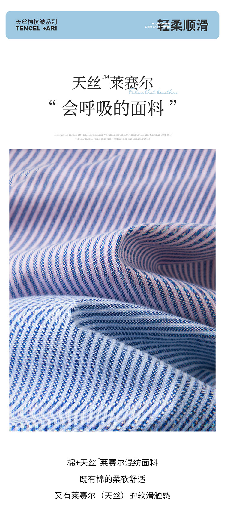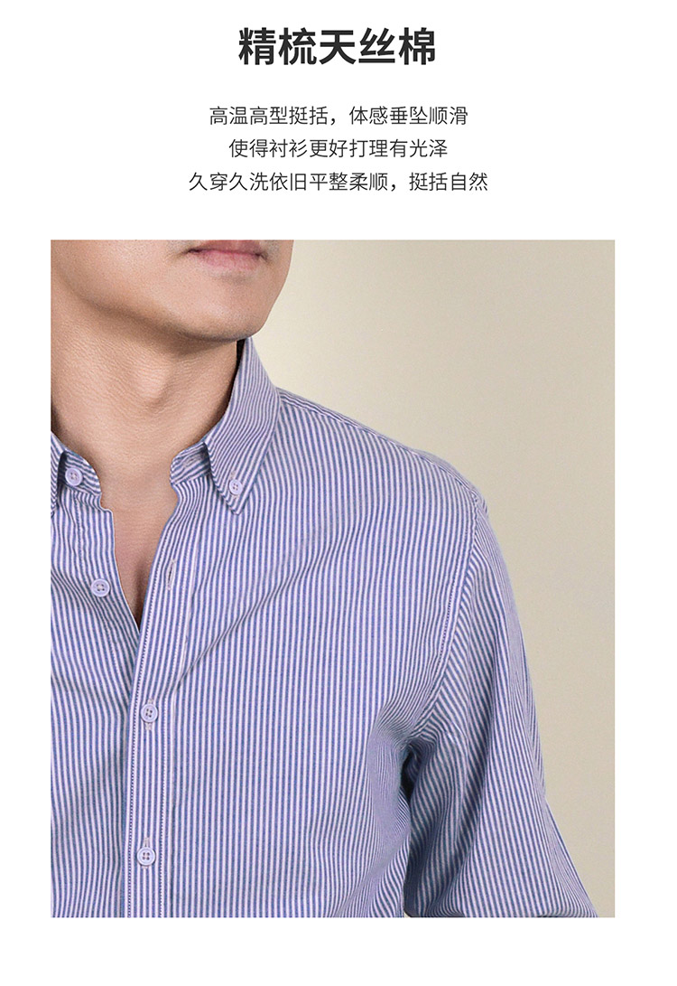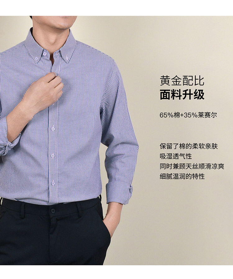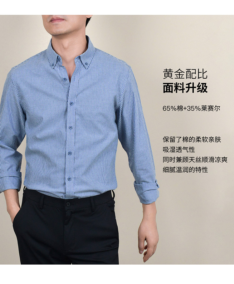 【莱赛尔棉】罗蒙春秋男士经典条纹长袖衬衫商务翻领休闲百搭通勤职业上班衬衫男