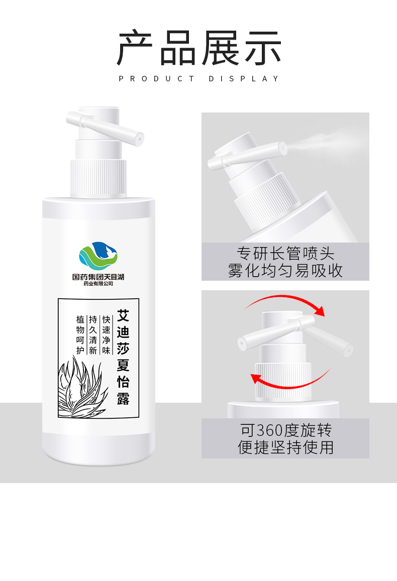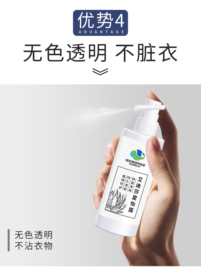 国药天目湖去狐臭喷雾,清爽止味天然植萃,无色透明,不脏衣,除异味,止汗香体露狐臭喷雾