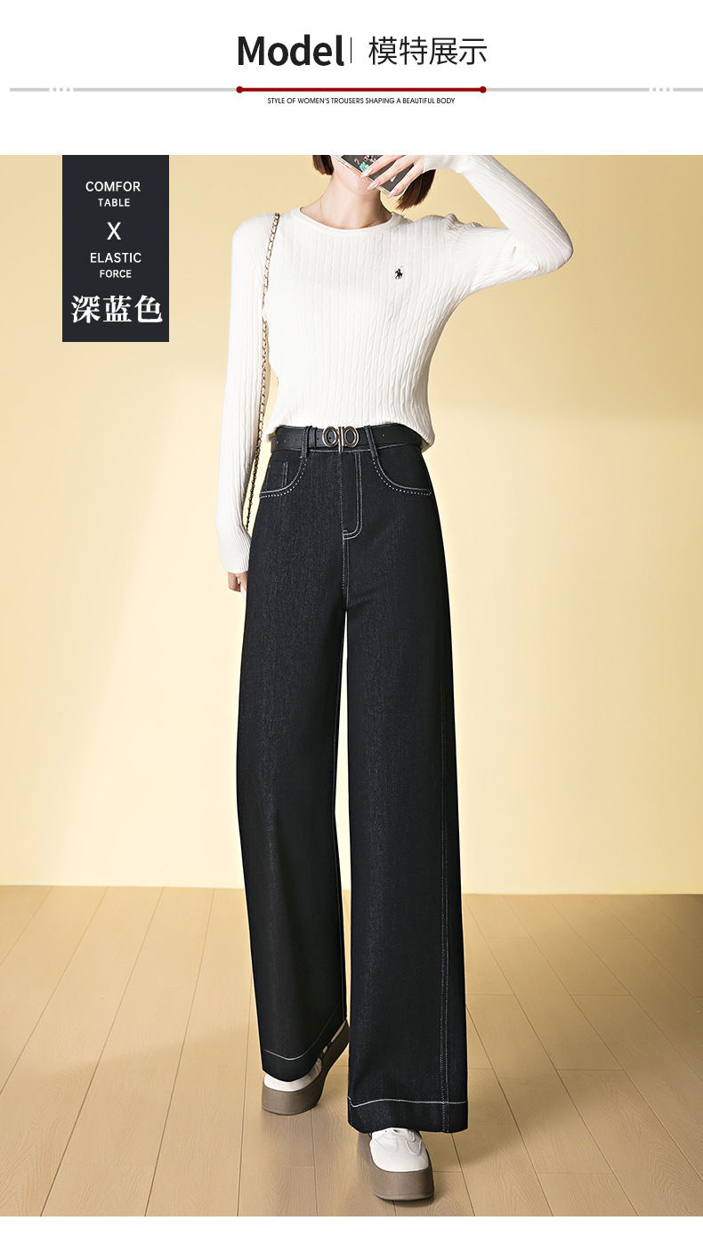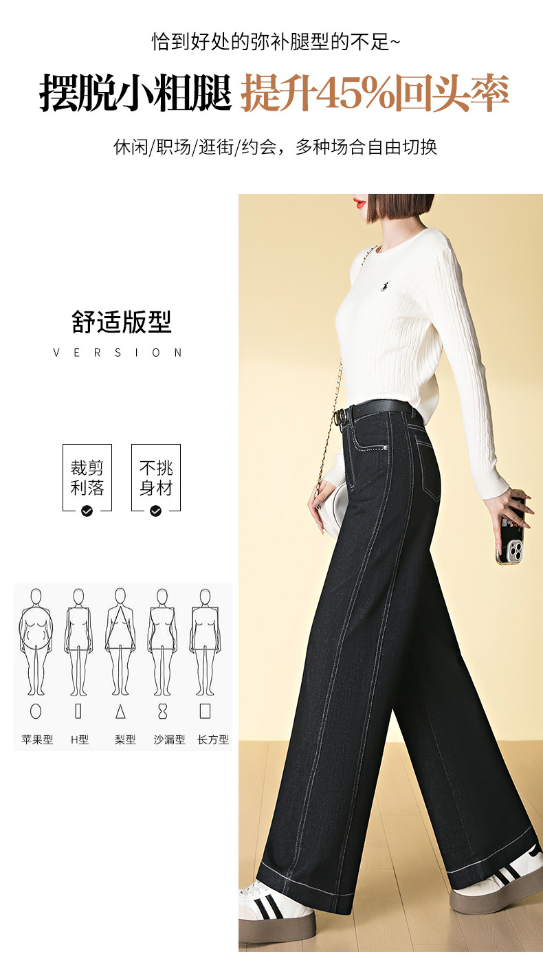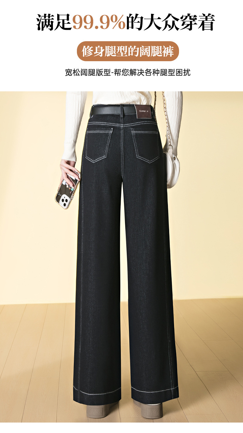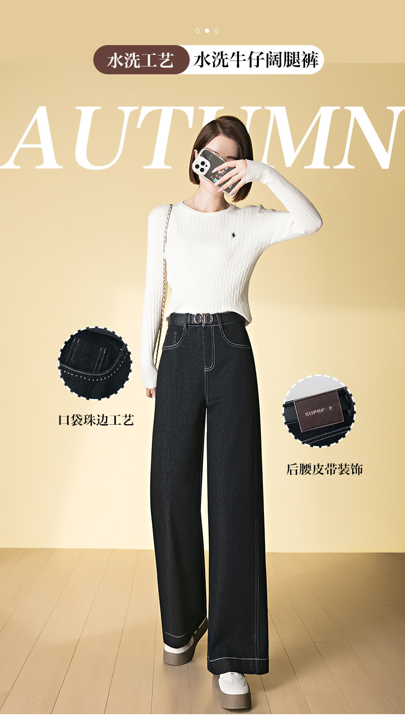 HSS 3057天丝棉牛仔阔腿裤宽松直筒显瘦水洗拼接牛仔裤