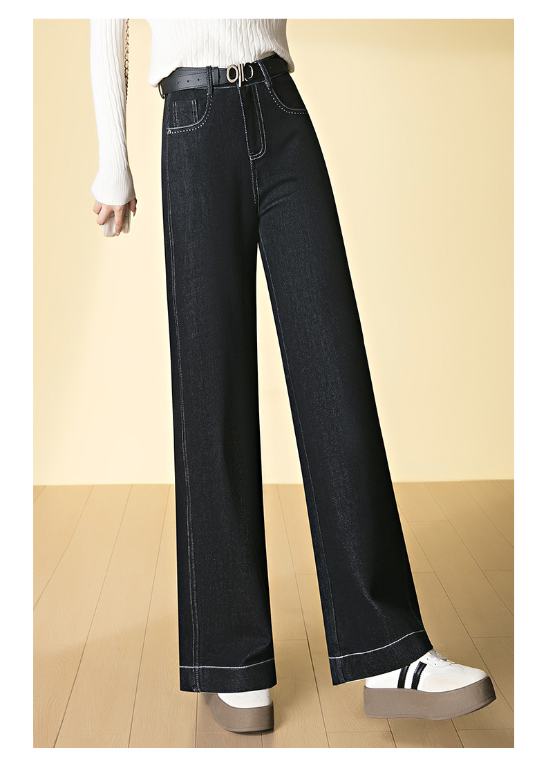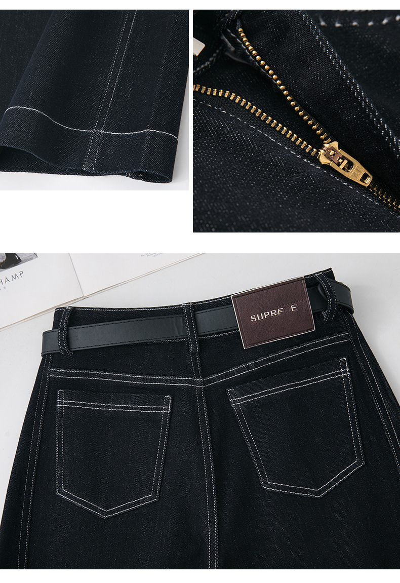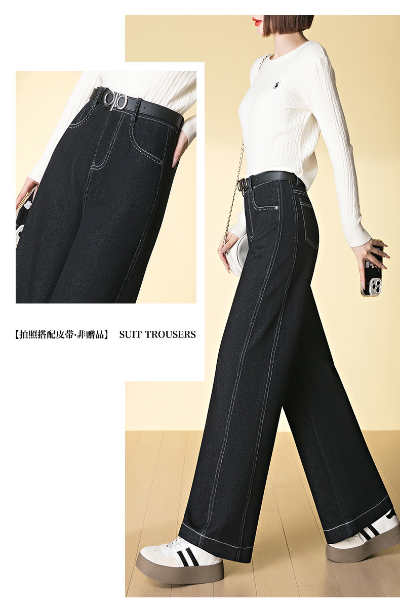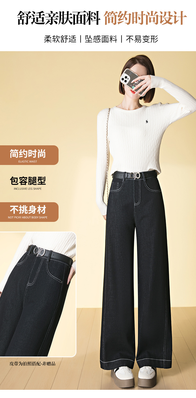 HSS 3057天丝棉牛仔阔腿裤宽松直筒显瘦水洗拼接牛仔裤