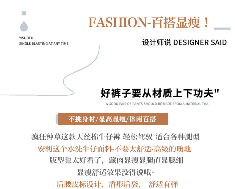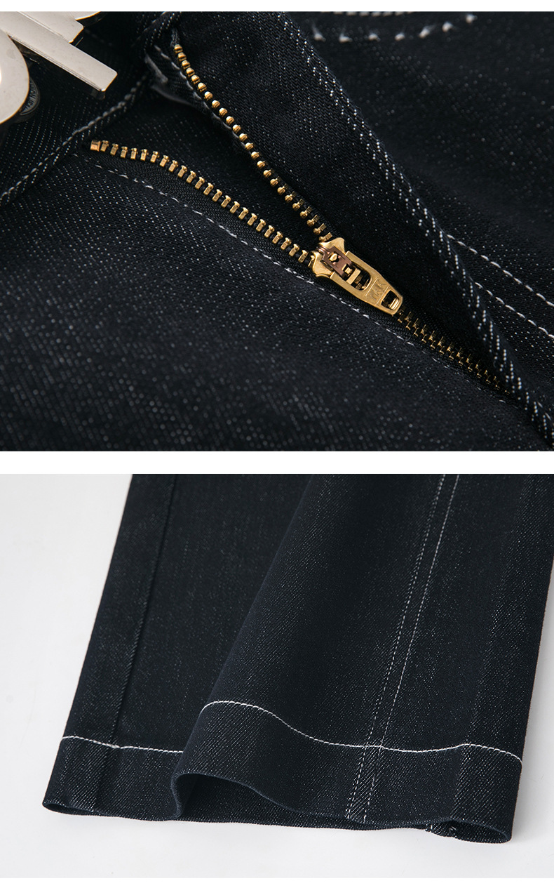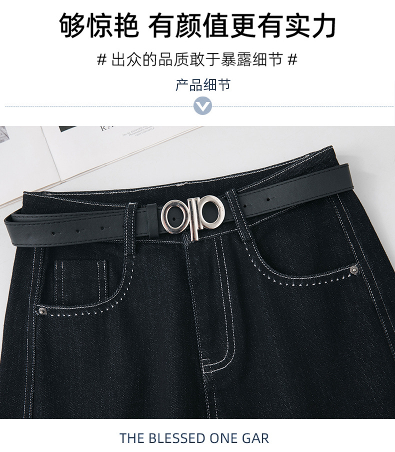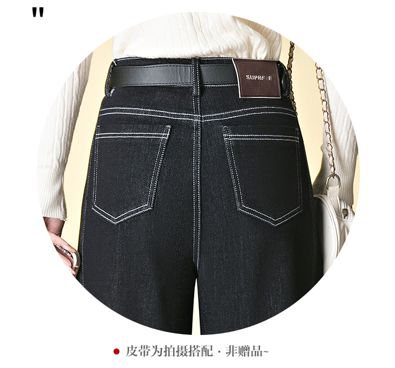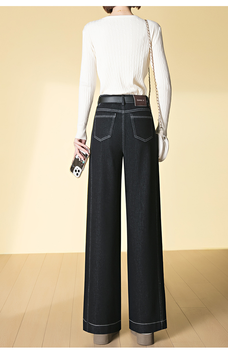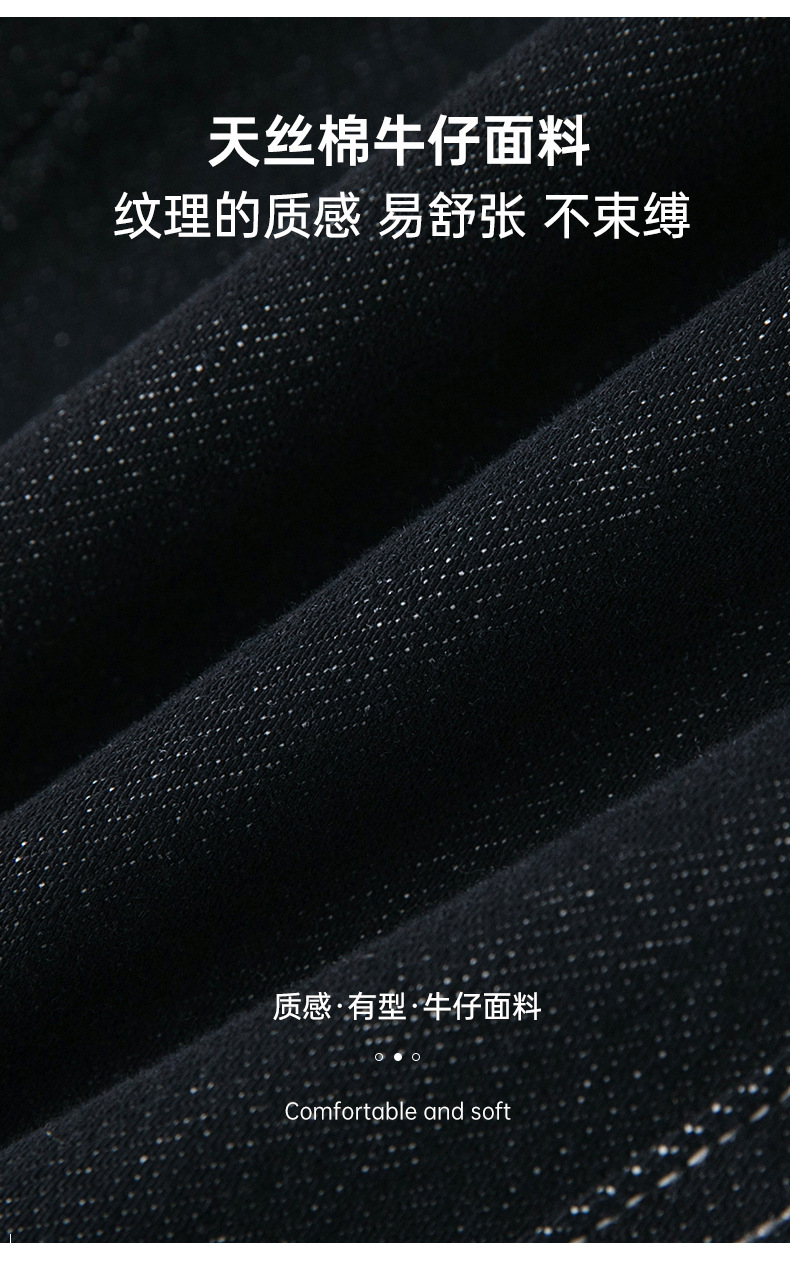 HSS 3057天丝棉牛仔阔腿裤宽松直筒显瘦水洗拼接牛仔裤
