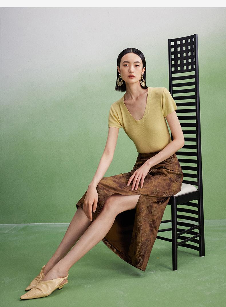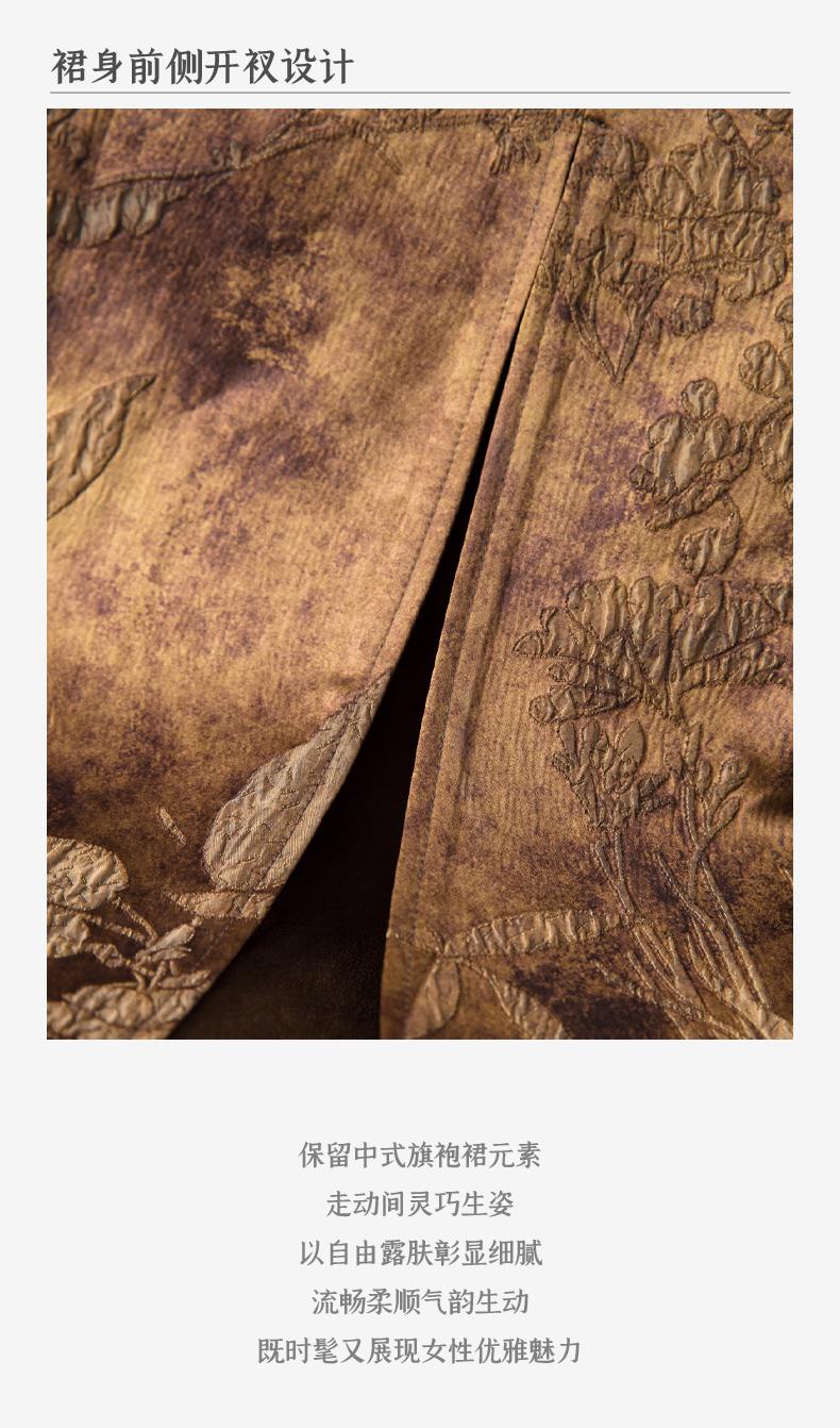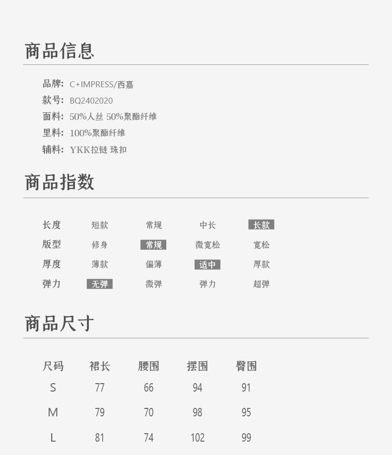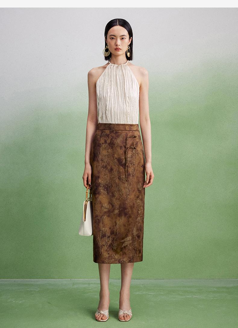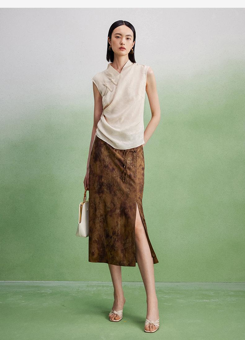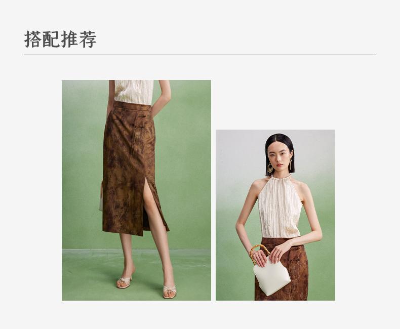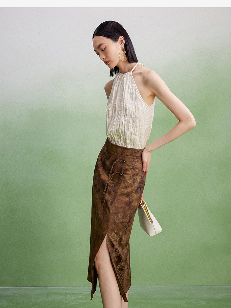 西嘉C+IMPRESS/西嘉人丝新中式半身裙女复古立体提花国风优雅开衩半裙BQ2402020