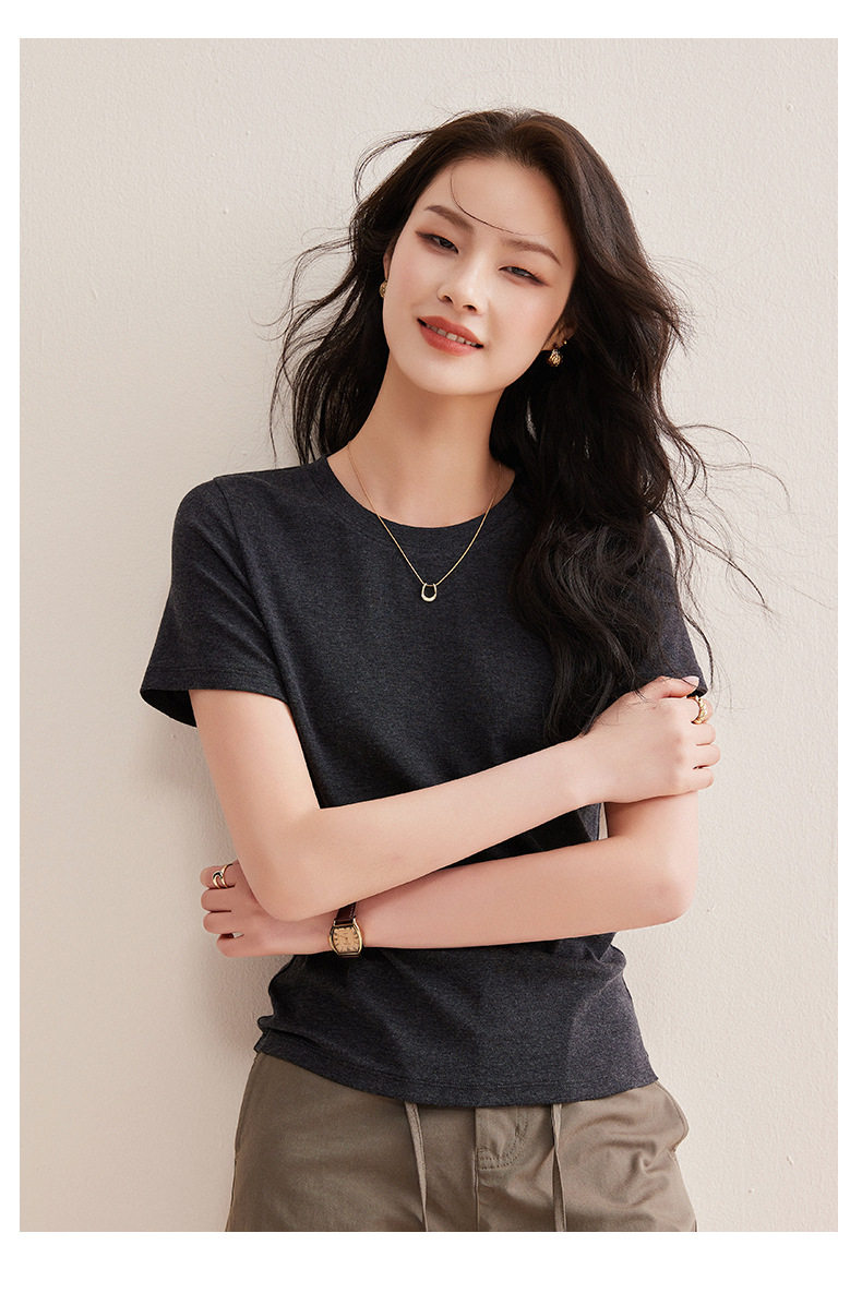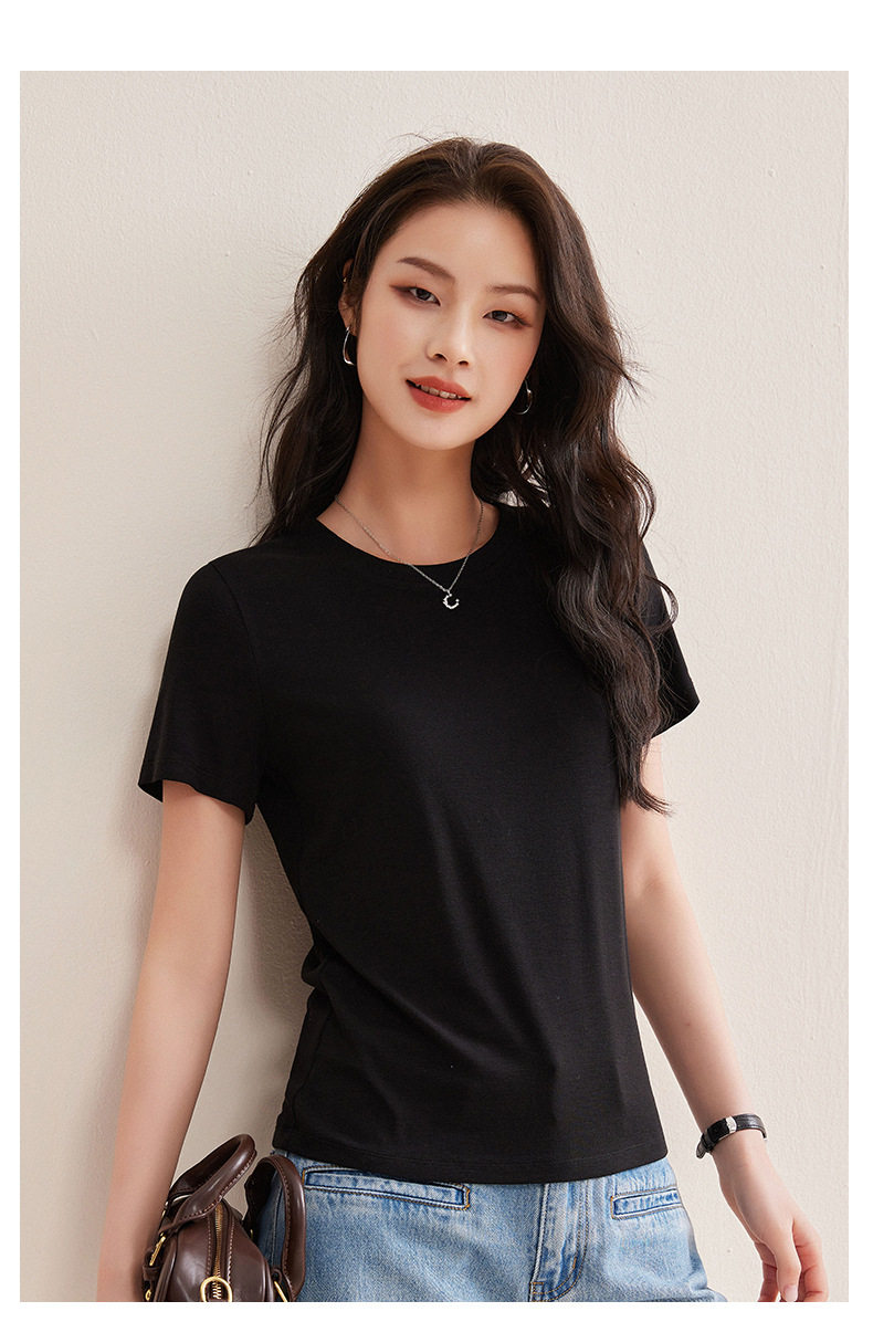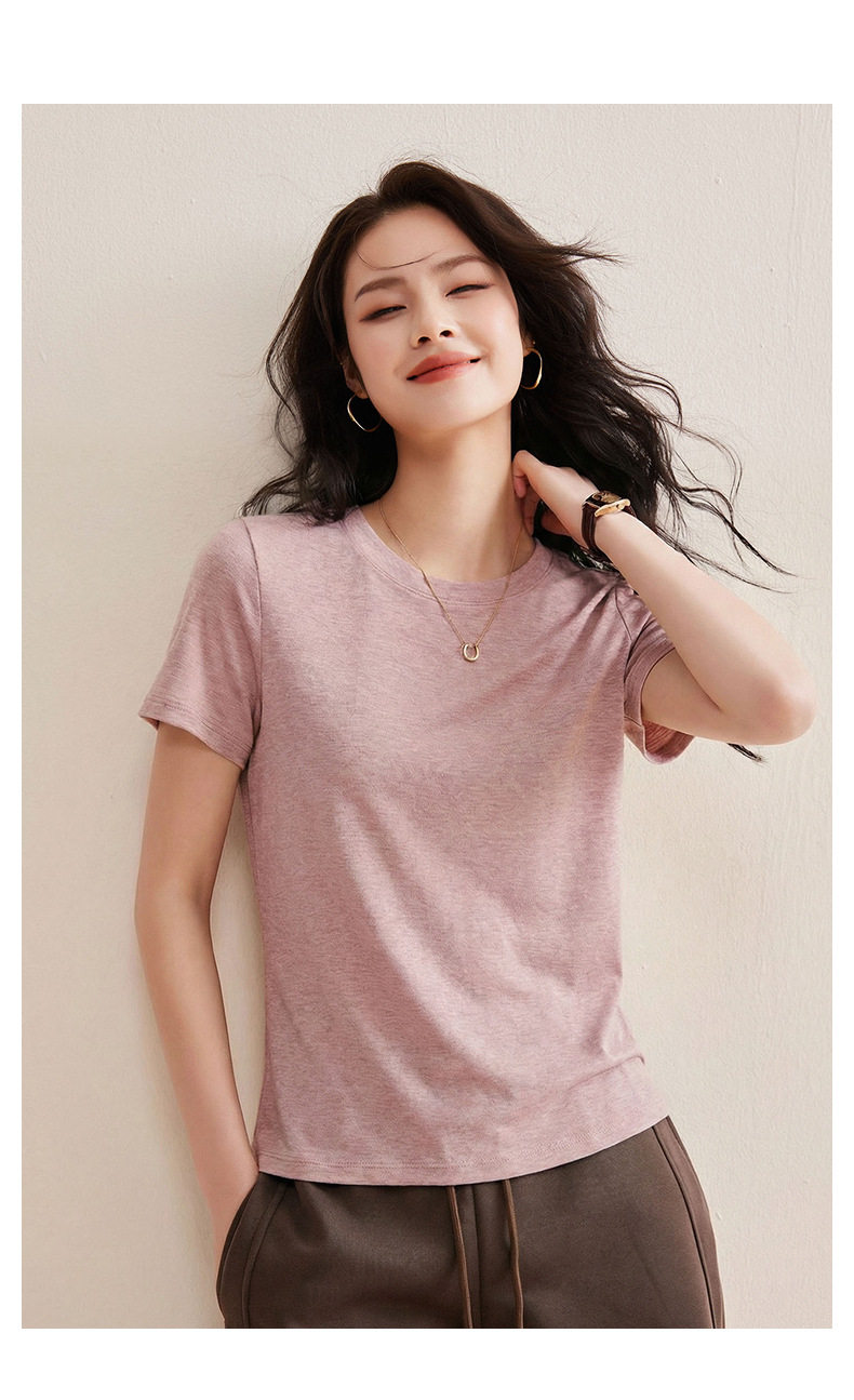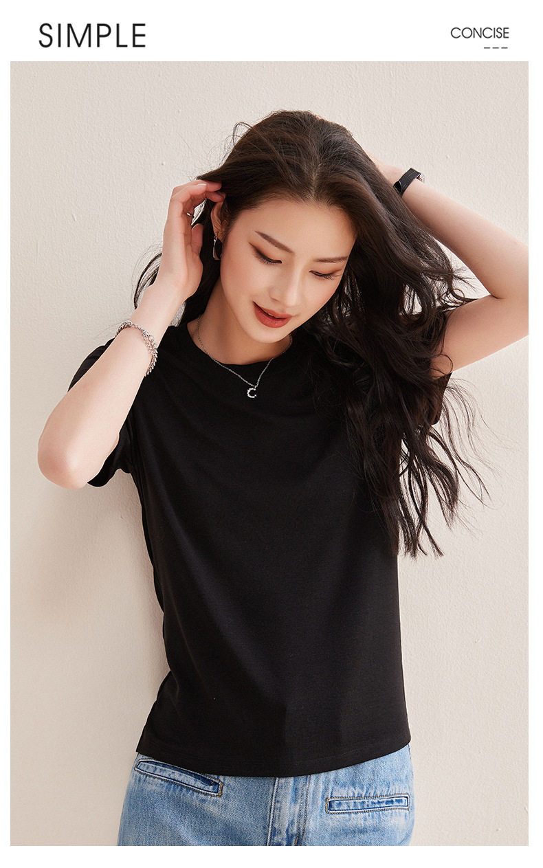 「自j」全新升级【铂金会员128/天猫169/差价41】(00631)洛诗琳气质圆领天丝面膜T恤2026春夏新款正肩显瘦短袖上衣