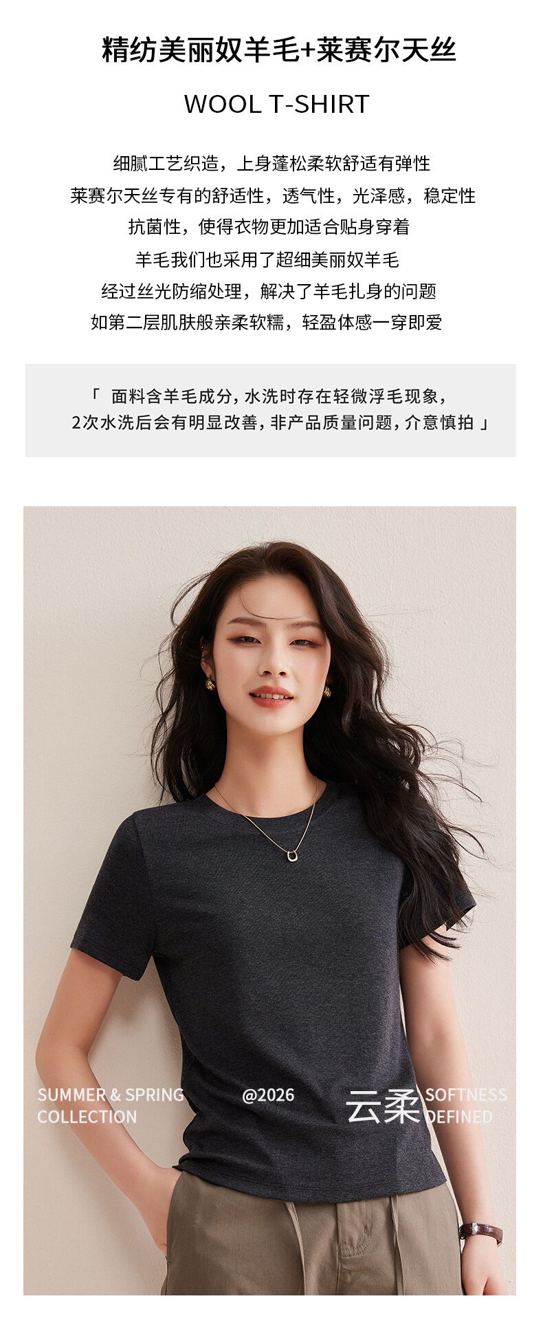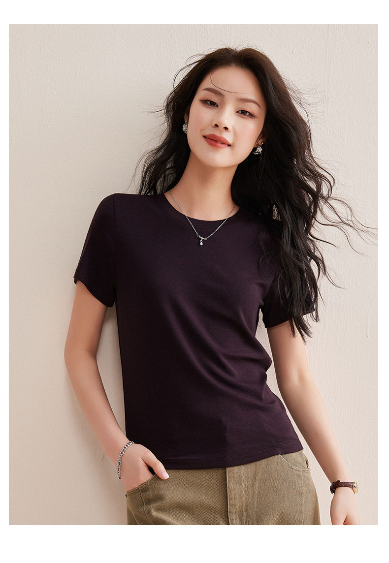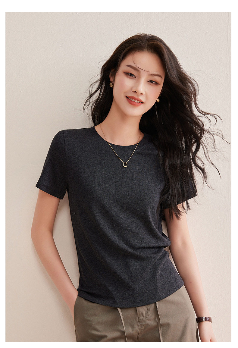 「自j」全新升级【铂金会员128/天猫169/差价41】(00631)洛诗琳气质圆领天丝面膜T恤2026春夏新款正肩显瘦短袖上衣
