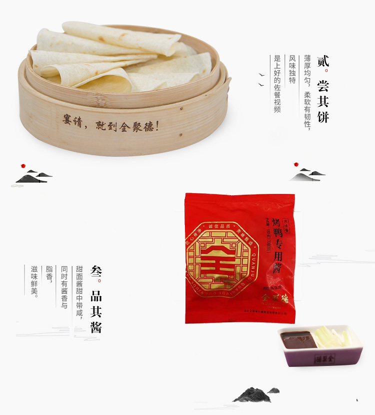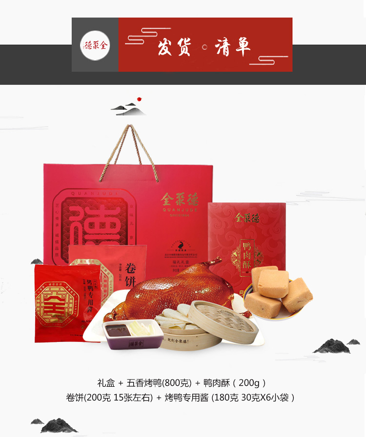 【真空烤鸭礼袋装】内含真空烤鸭1只、卷饼2袋、甜面酱1袋