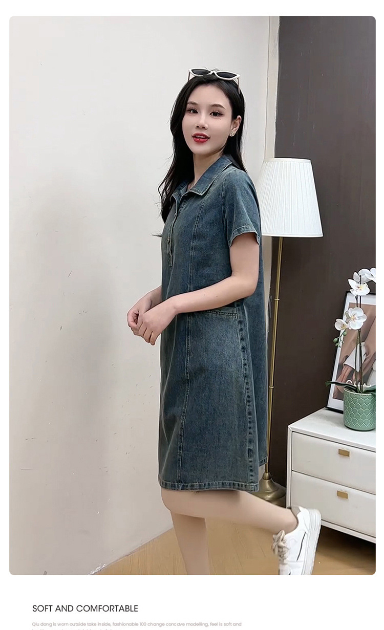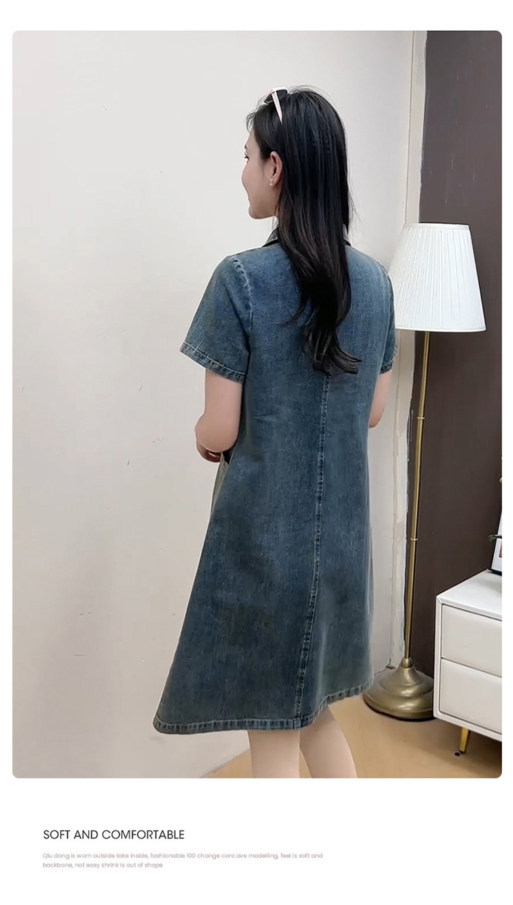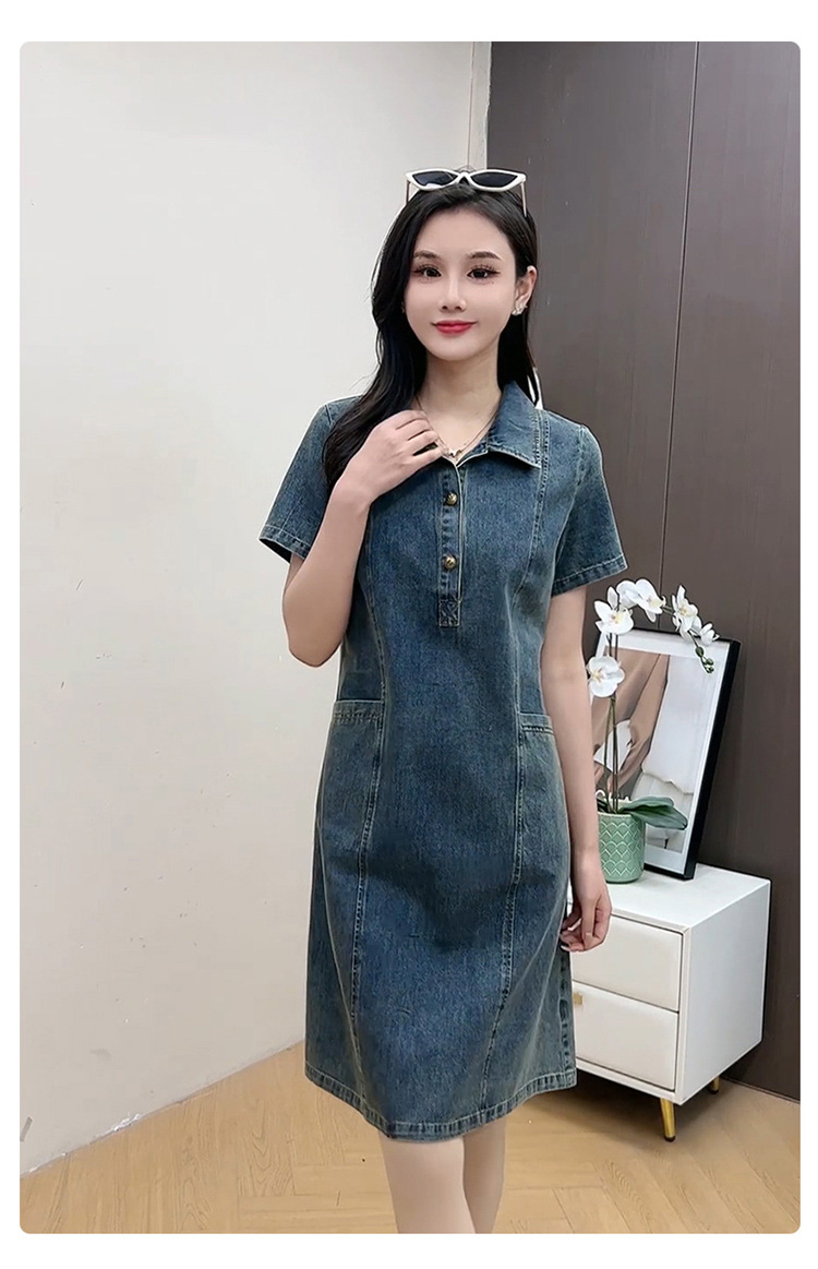 QYMYJ-25DS628-L牛仔连衣裙2025夏季新款复古时尚减龄气质中长裙小个子显瘦A字裙 商品图0