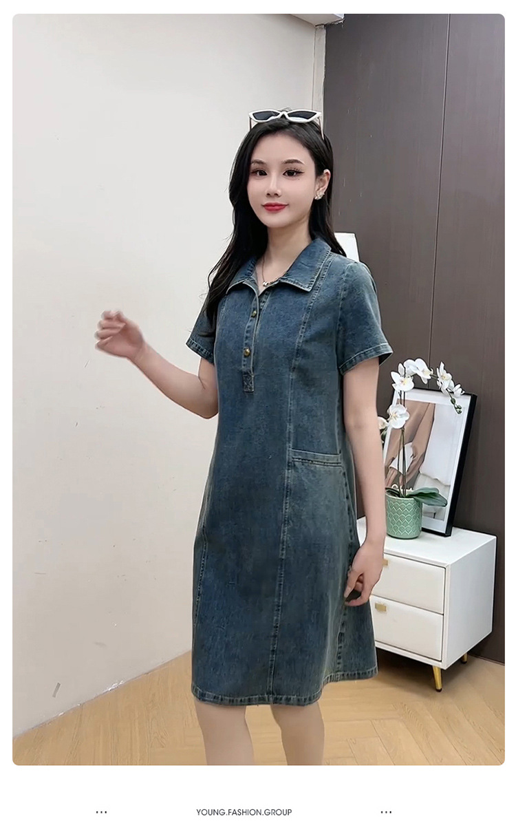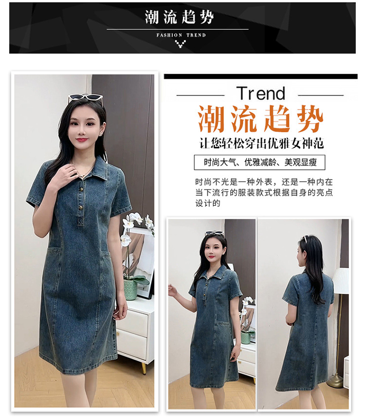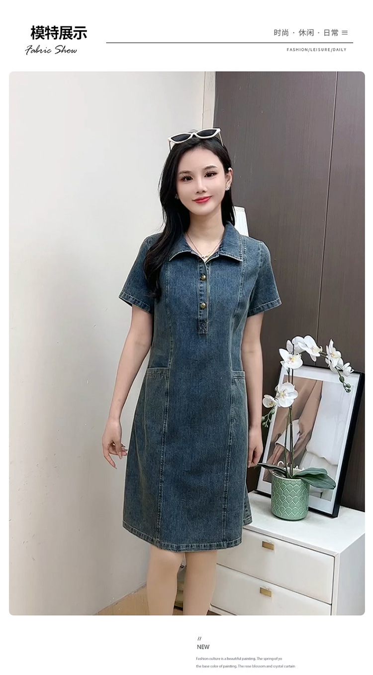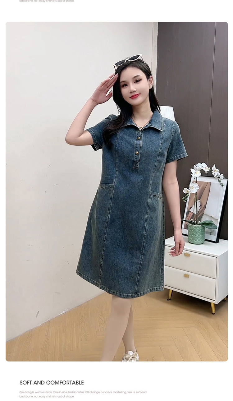 QYMYJ-25DS628-L牛仔连衣裙2025夏季新款复古时尚减龄气质中长裙小个子显瘦A字裙 商品图0