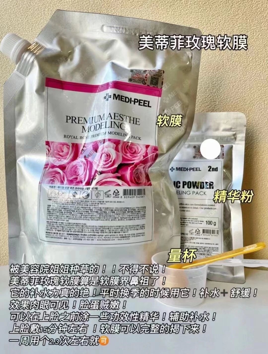 【产品规格】玫瑰软膜1000ml/包,精华粉100g/包,勺子2个