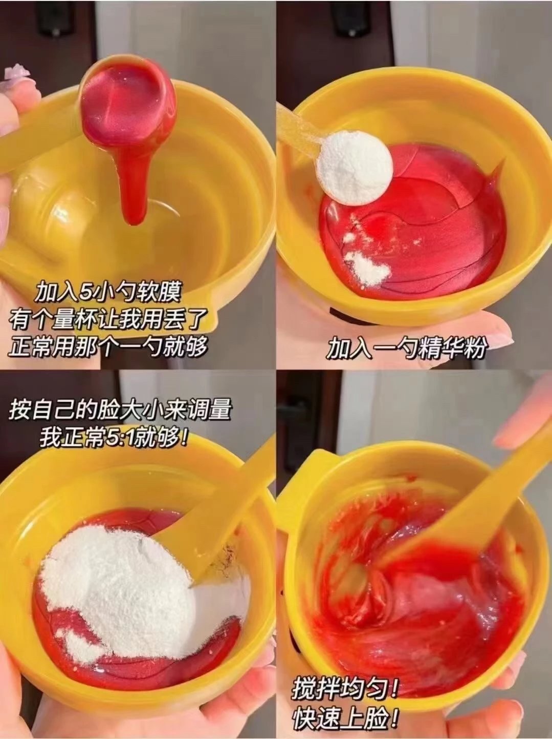 有配勺子按照比例来调,在家做spa也太舒服了~主打保湿和美白 ,一周两次左右即可哦