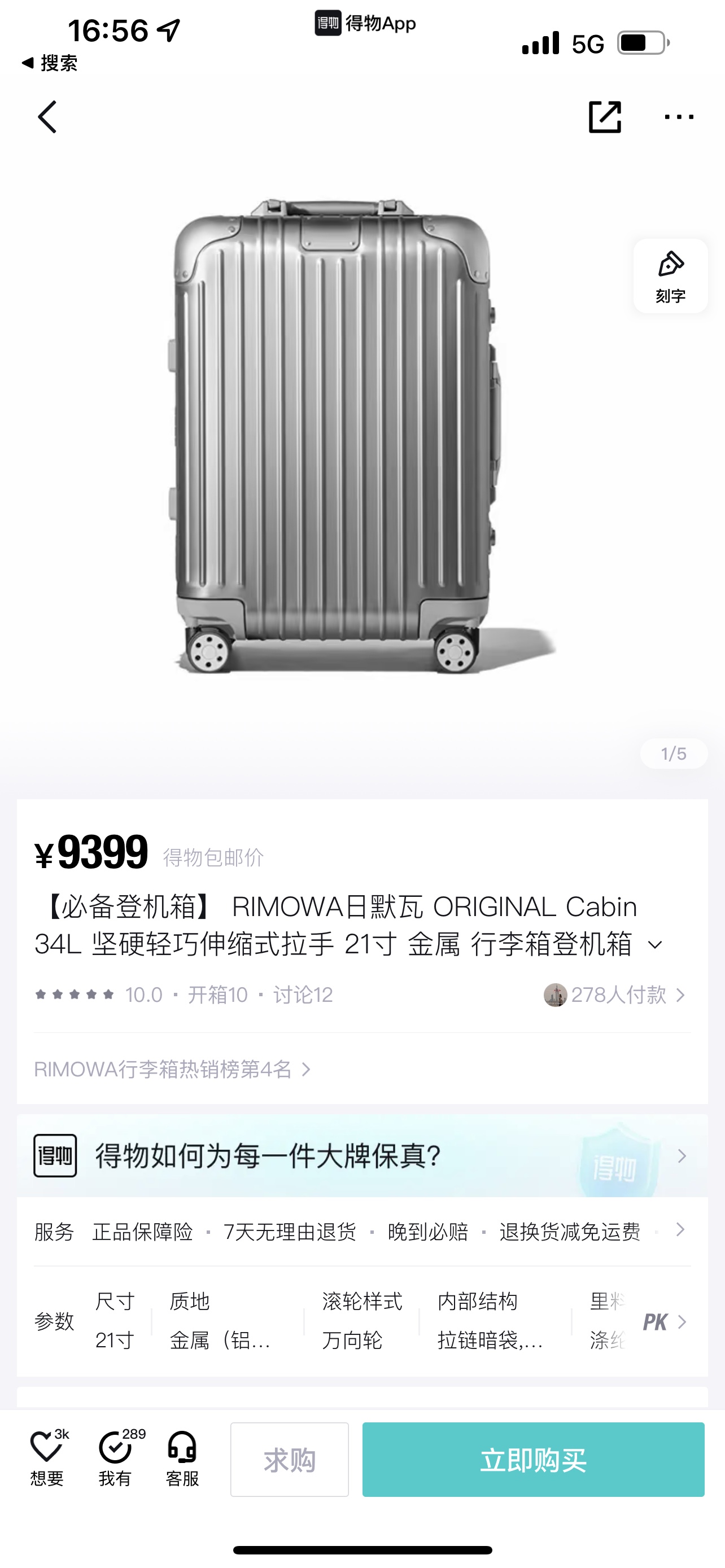 最经典系列 Rimowa Original真的YYDS。图片尺寸属于20经典尺寸登机箱