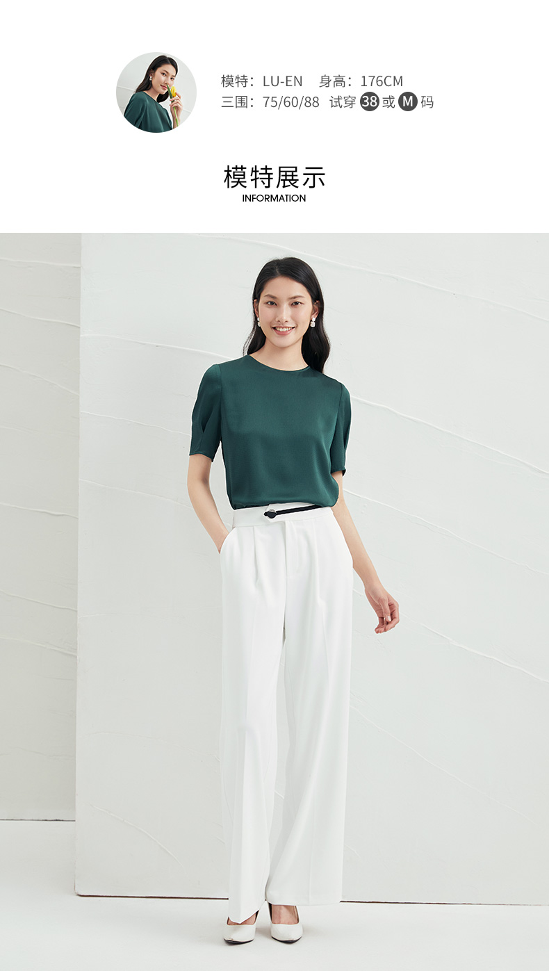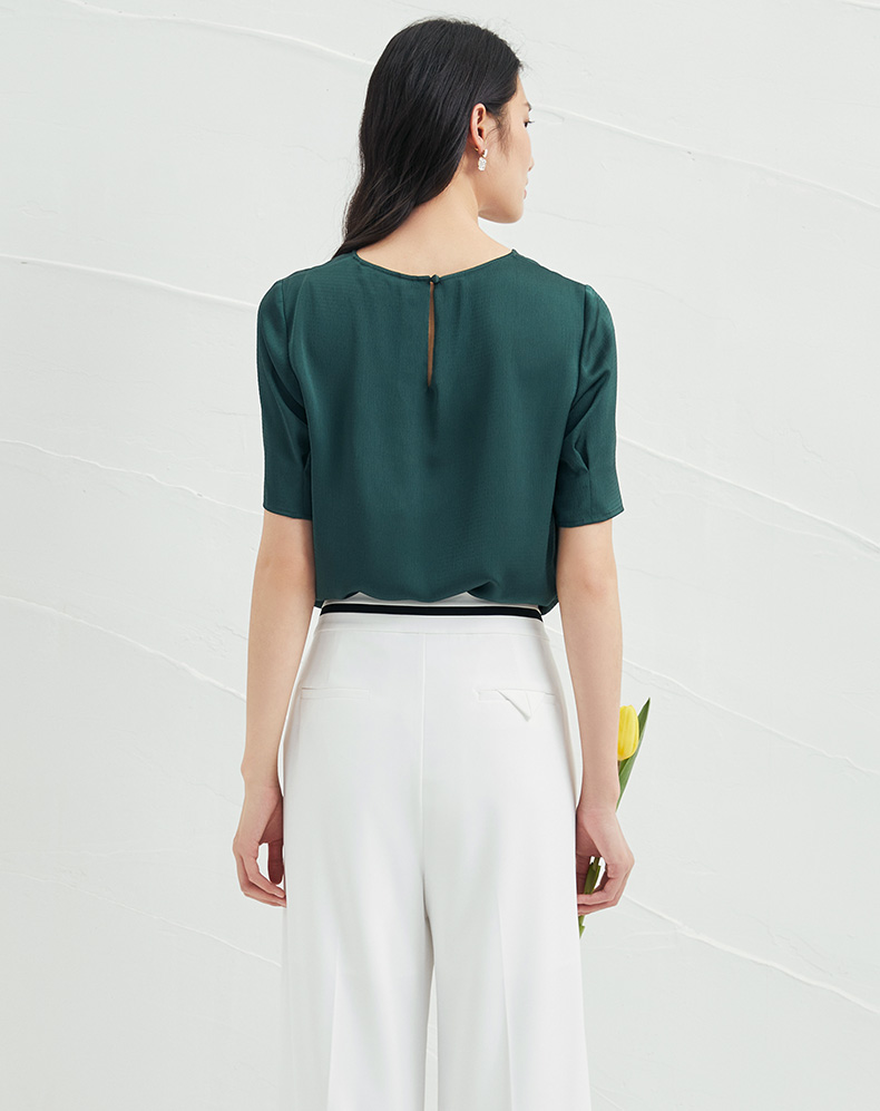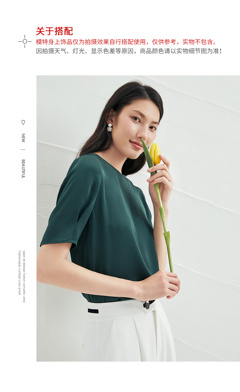 EITIE爱特爱夏季新款圆领纯色透气T恤宽松雪纺短袖6613304小上衣