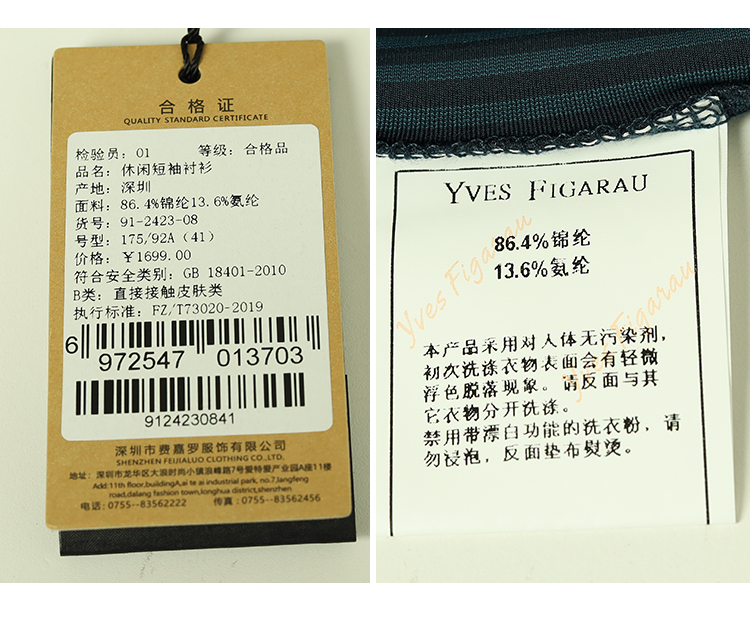 YvesFigarau伊夫·费嘉罗夏季新款商务休闲简约舒适透气短袖衬衫912423
