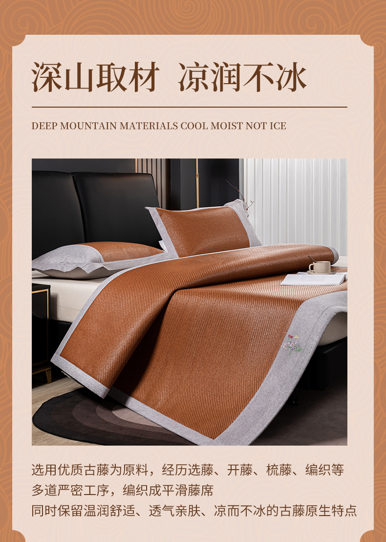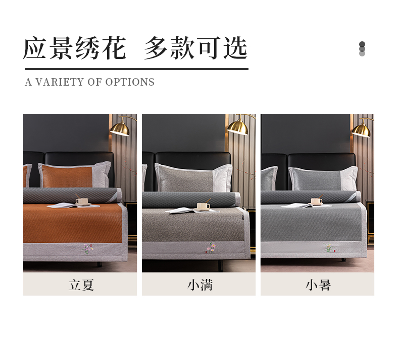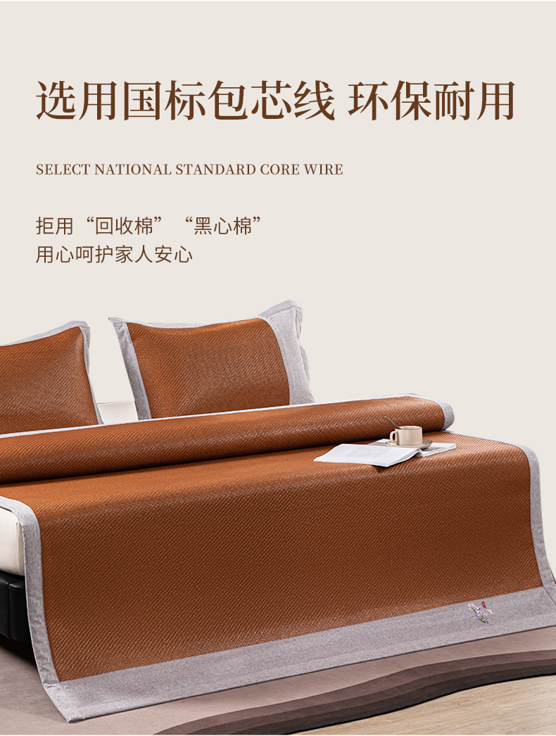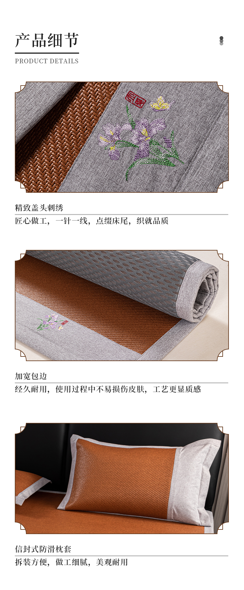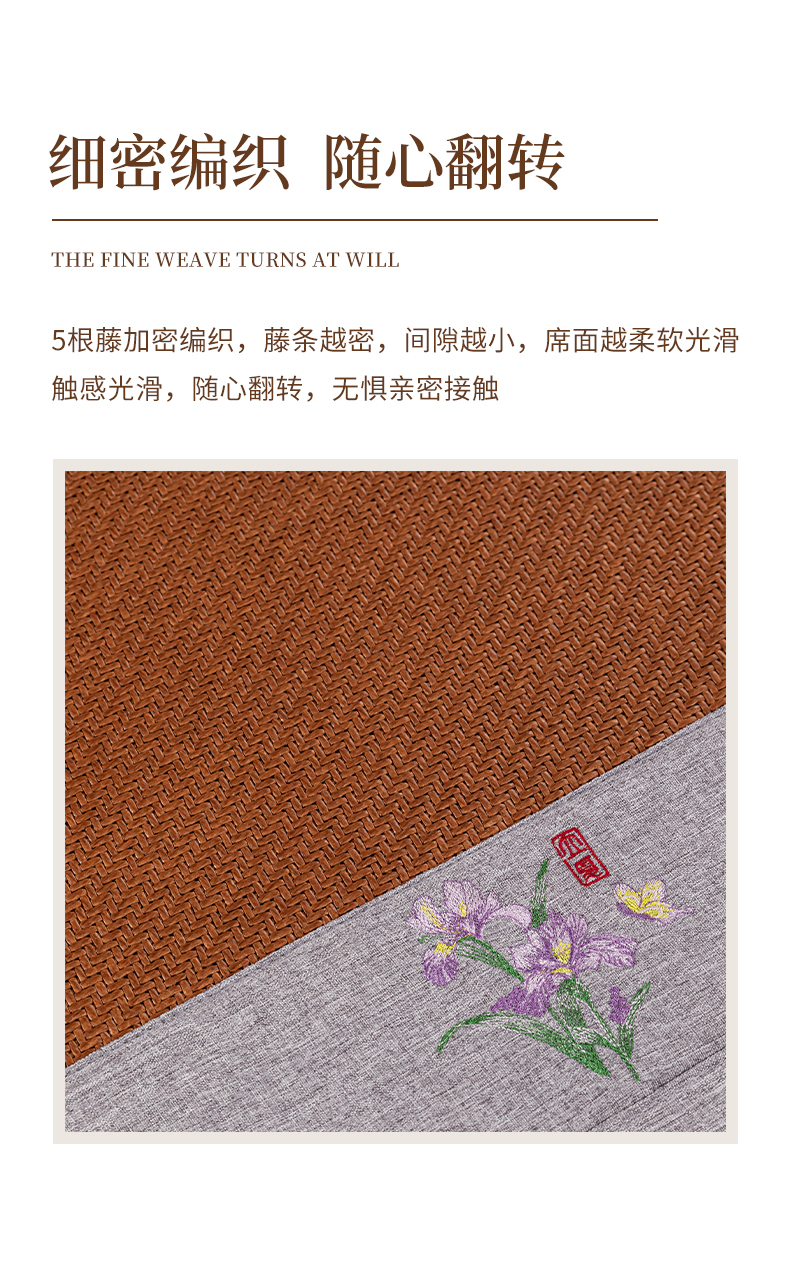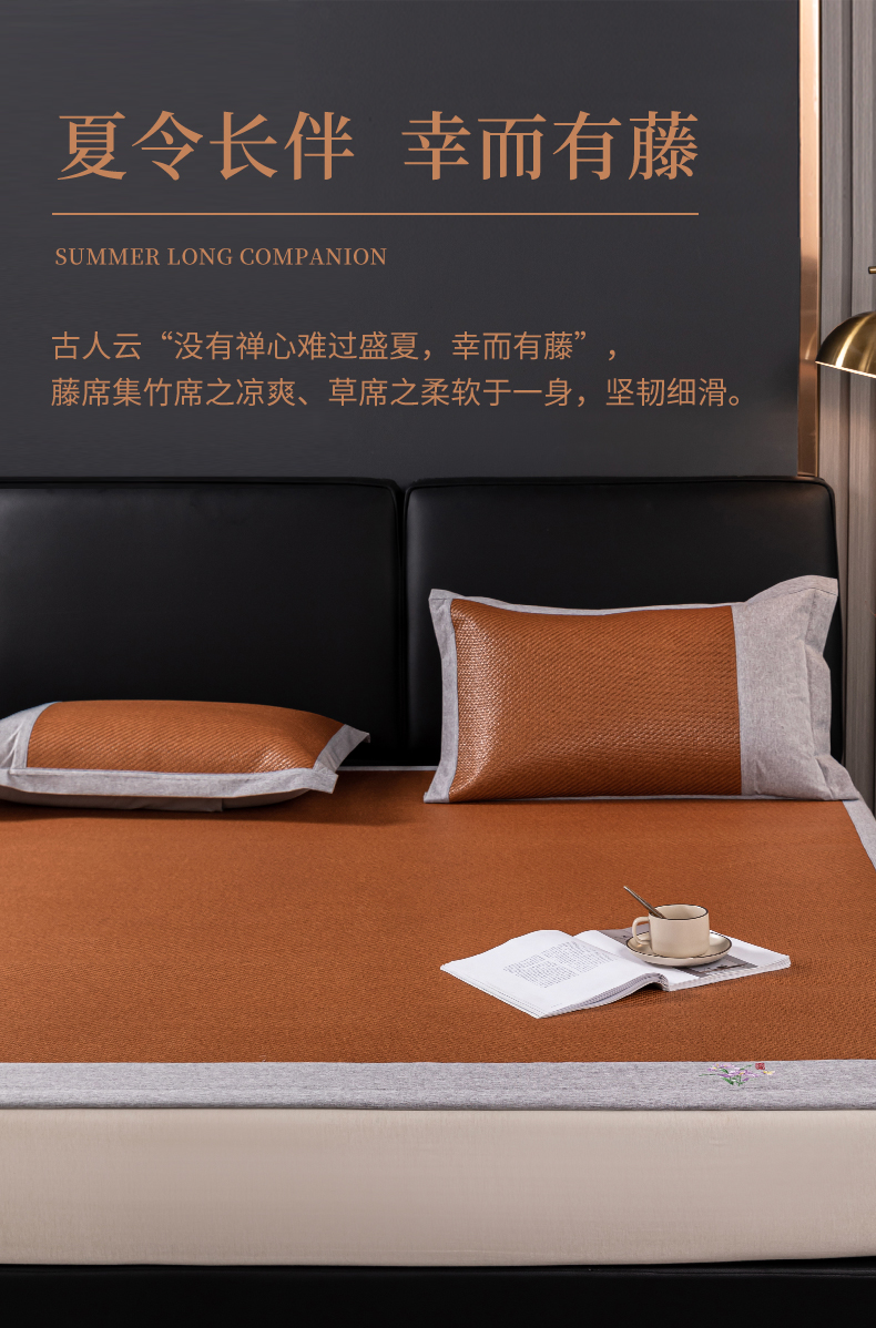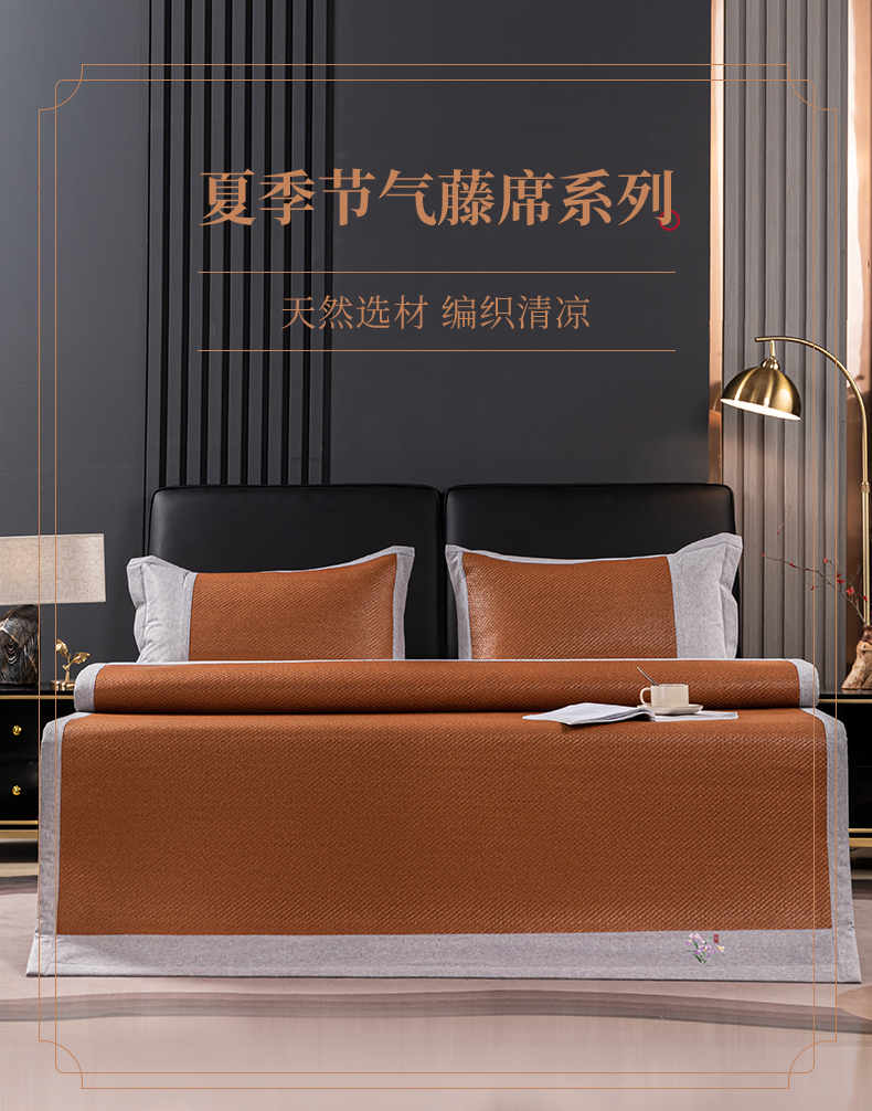 多喜爱 藤席三件套-立夏/小满/小暑 【无痕折叠 方便收纳】【精致盖头刺绣】天然选材编织清凉 蜂窝气孔 高弹透气 深山取材