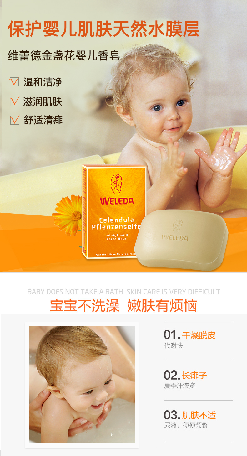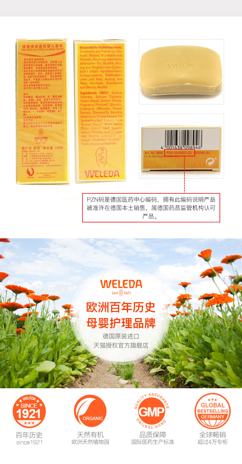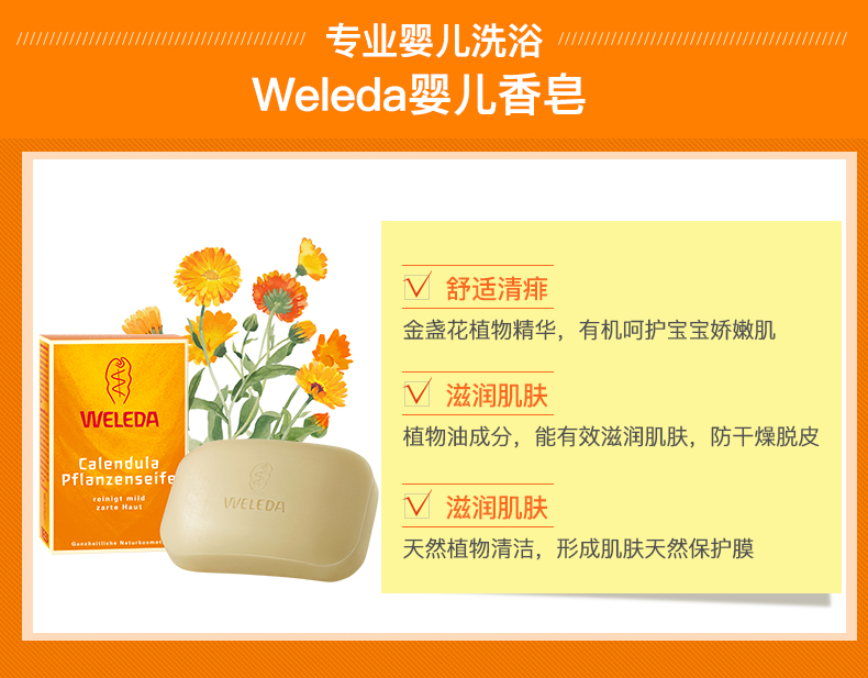 【品牌直发】WELEDA维蕾德 有机金盏花婴儿洗浴香皂100g 婴儿肌