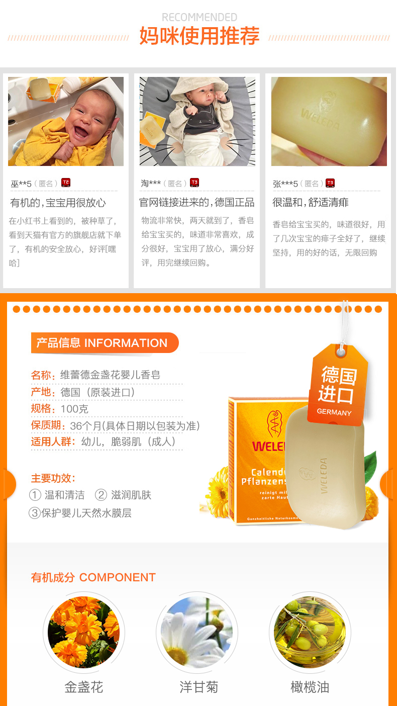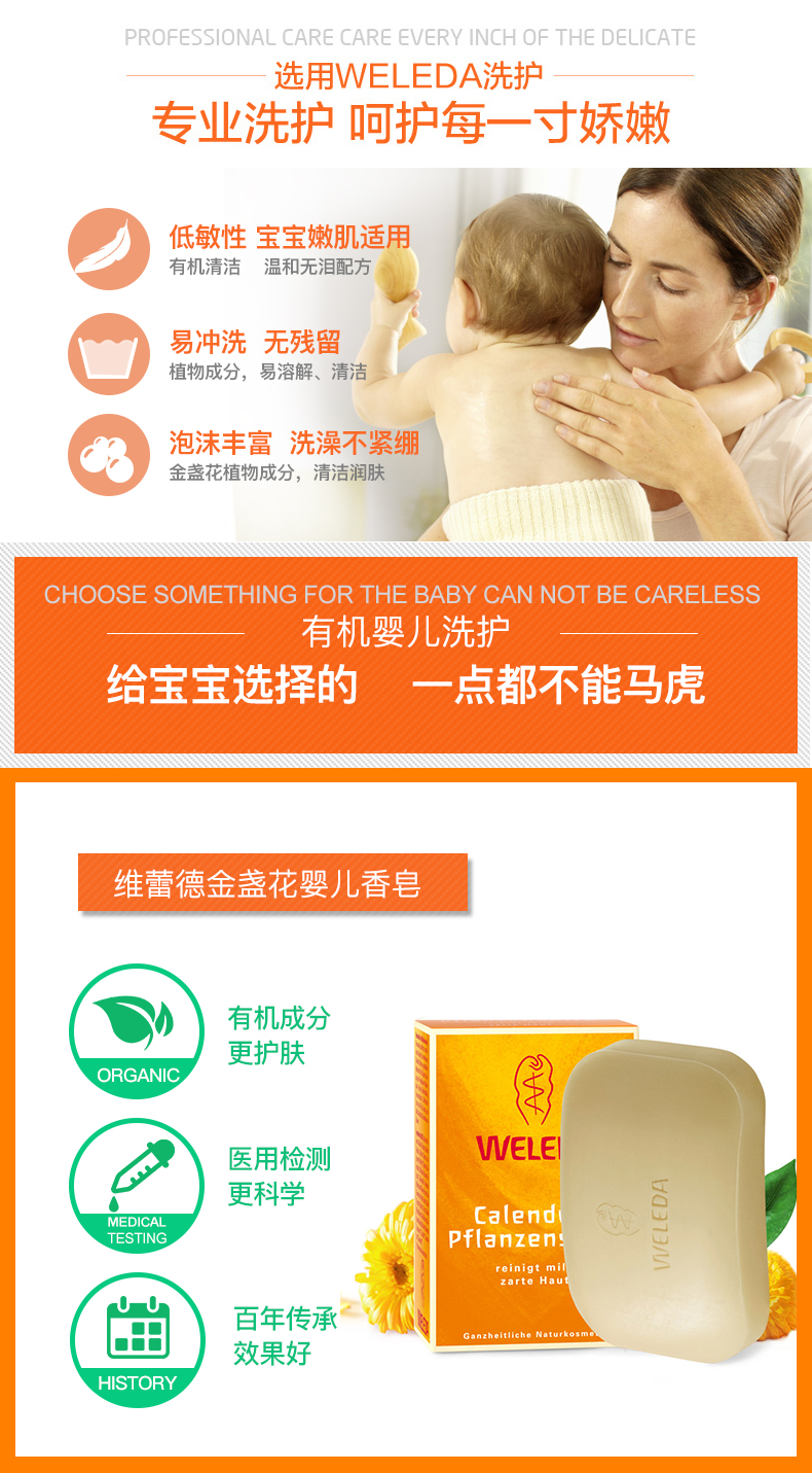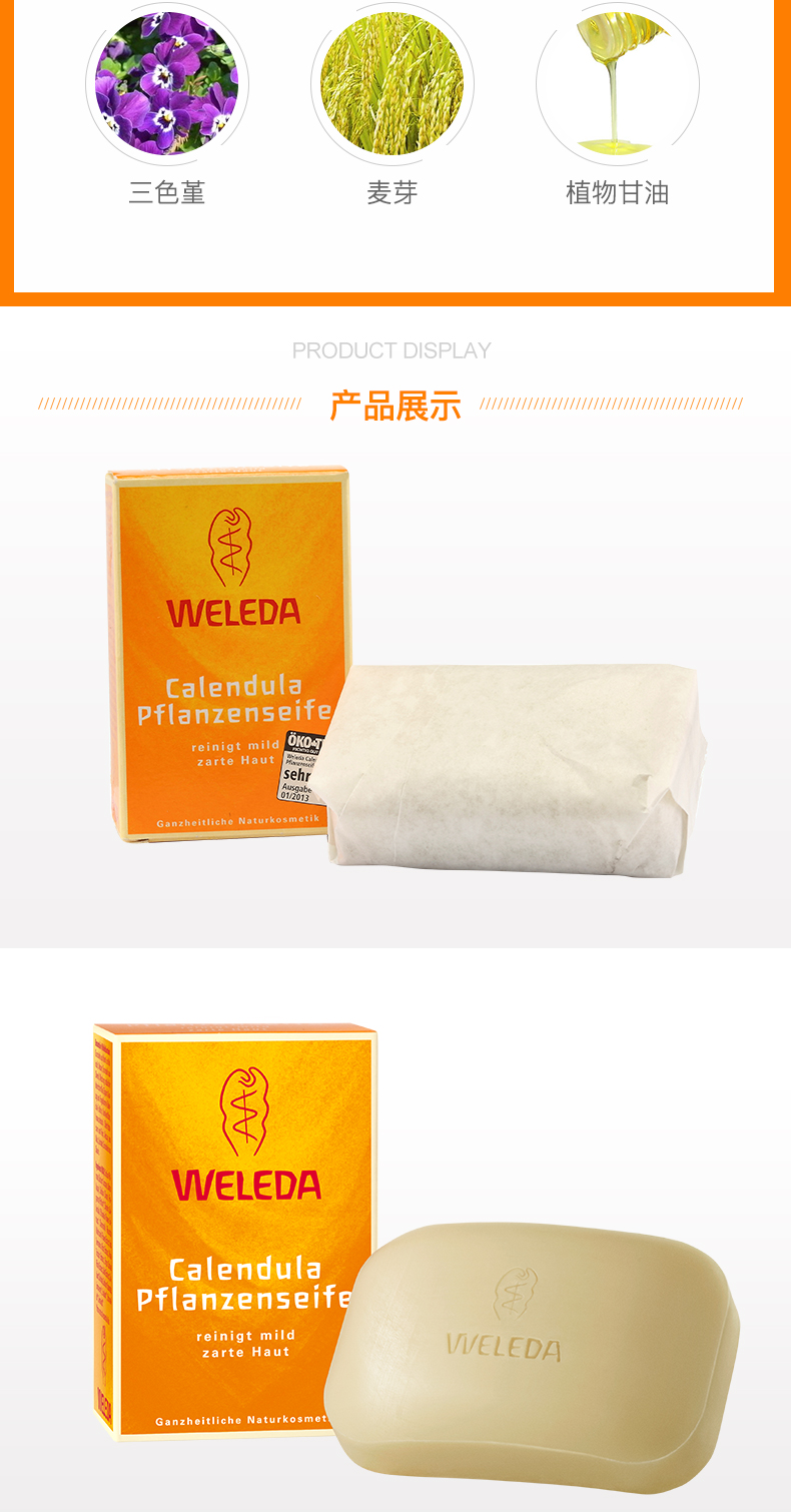 【品牌直发】WELEDA维蕾德 有机金盏花婴儿洗浴香皂100g 婴儿肌