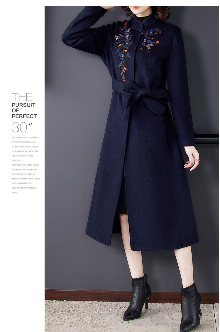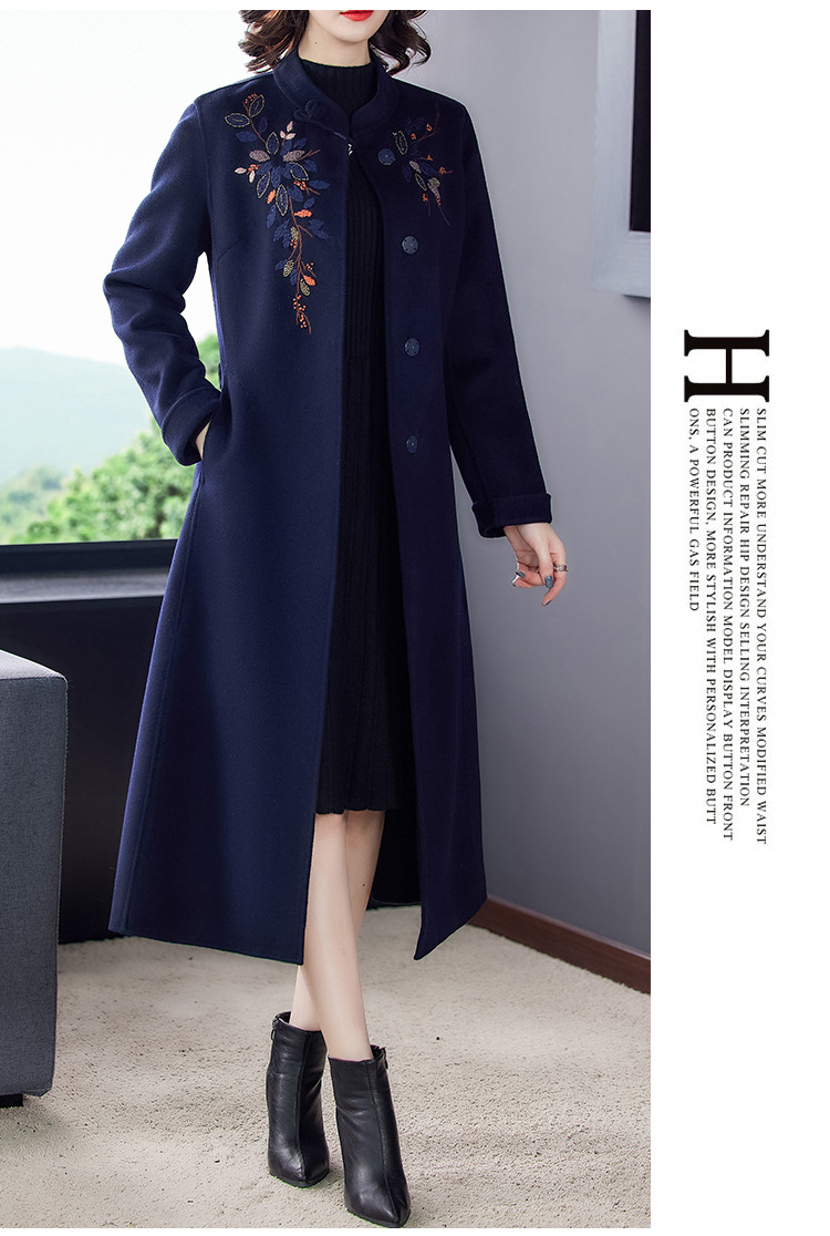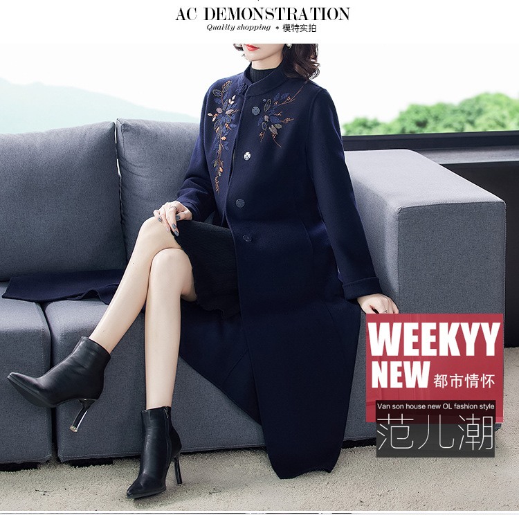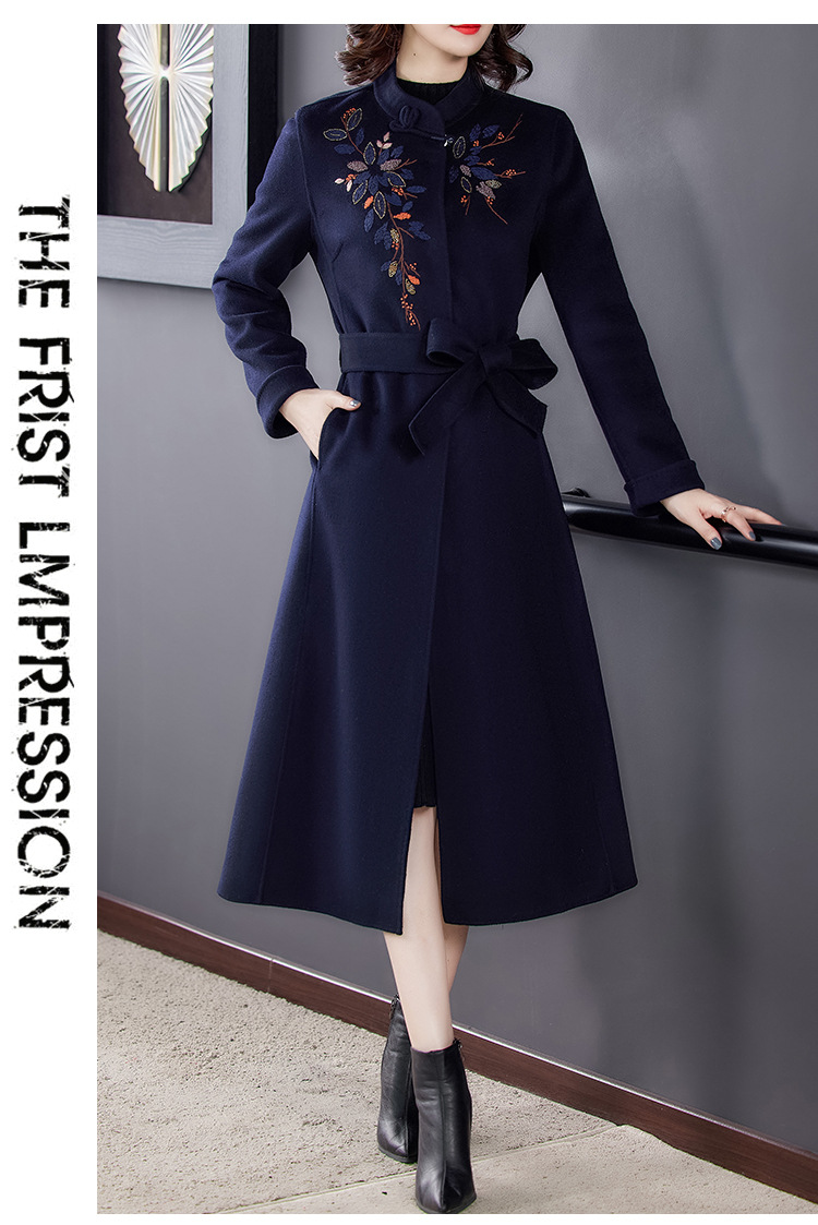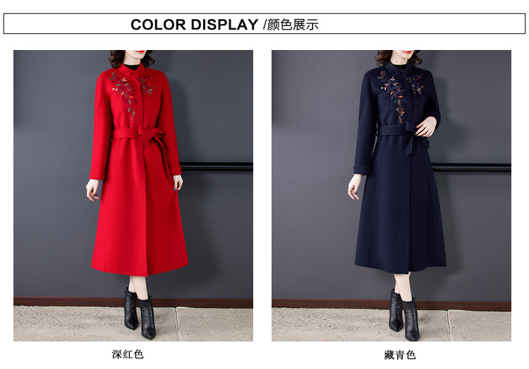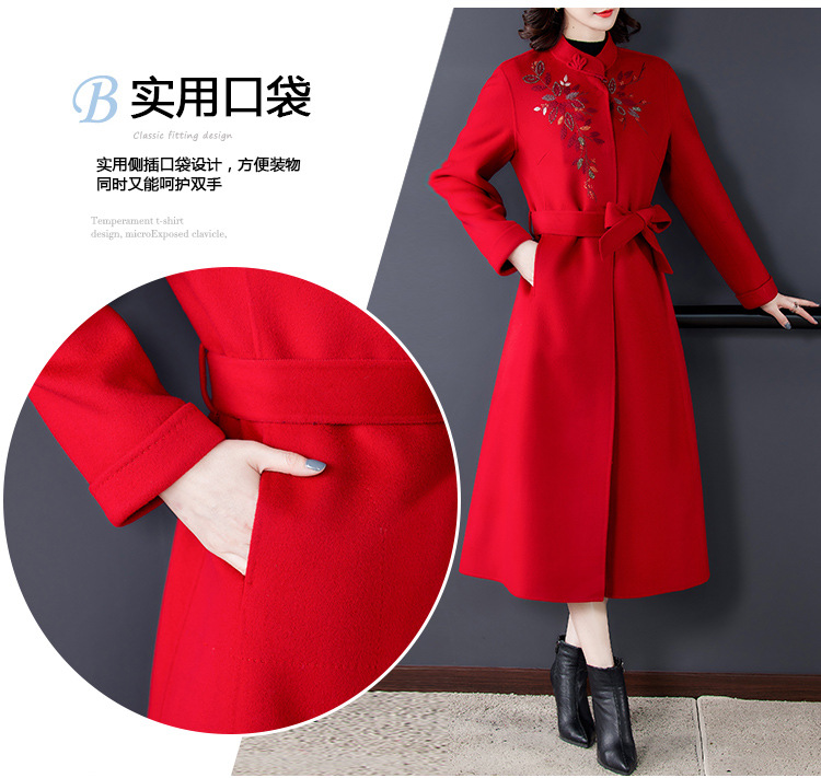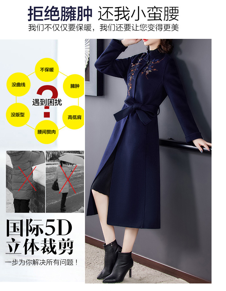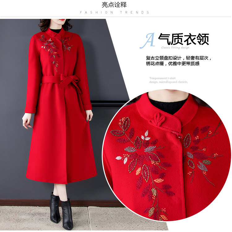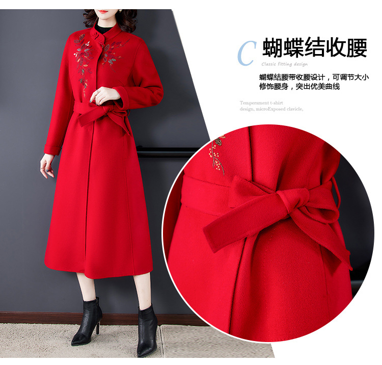 AHM-zne2007新款优雅气质收腰立领长袖加厚夹棉毛呢刺绣大衣外套