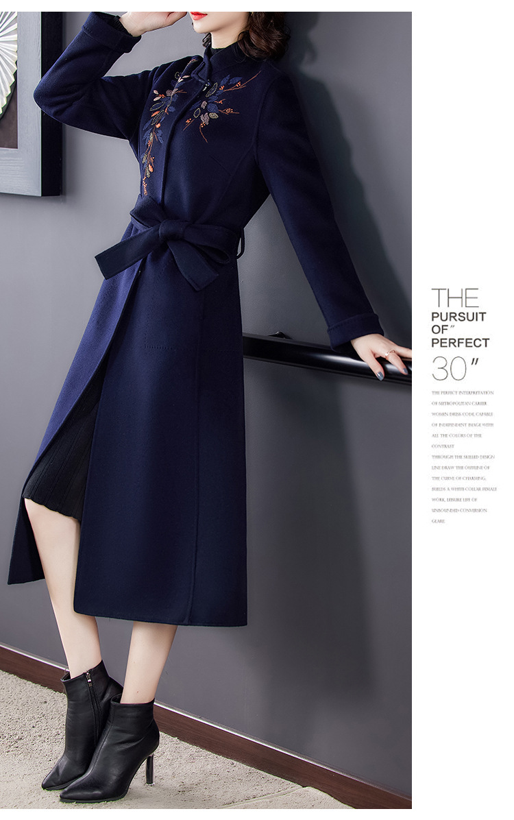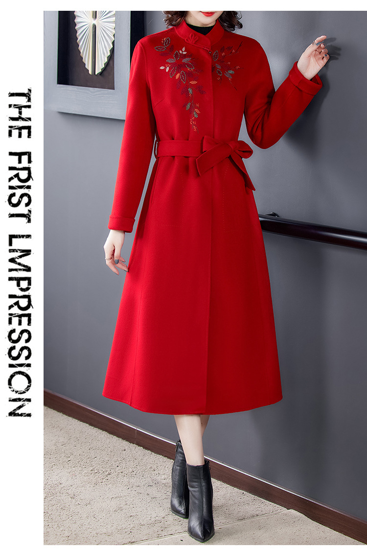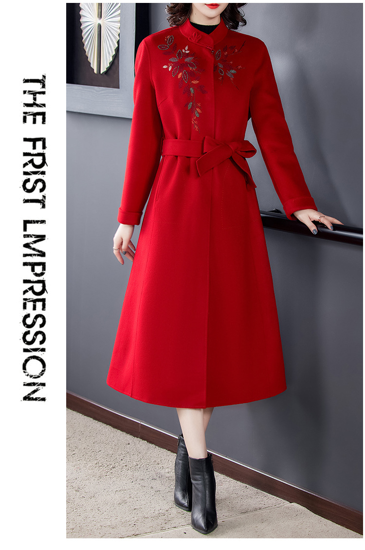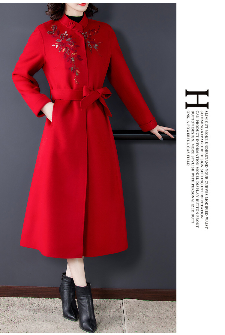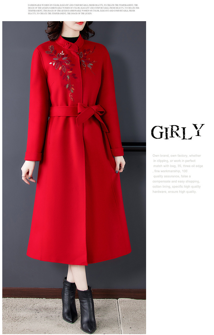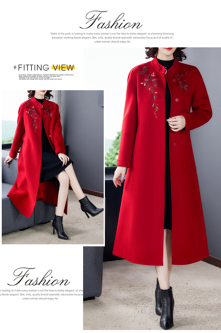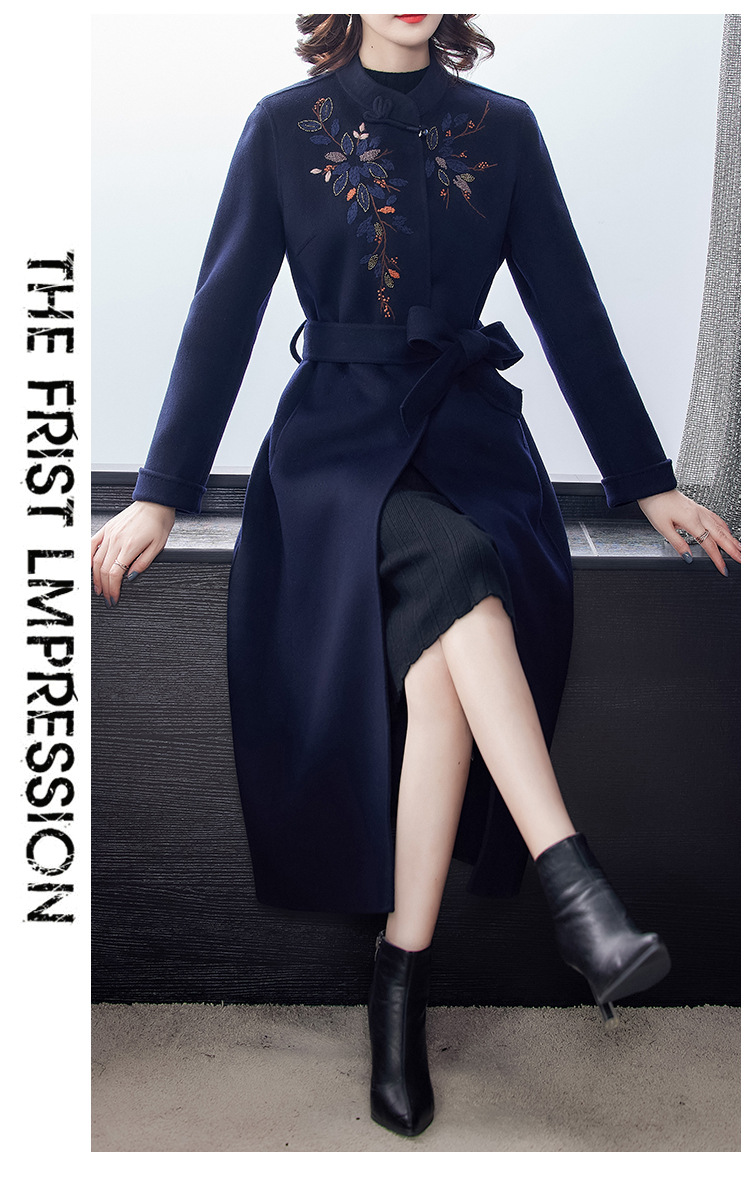 AHM-zne2007新款优雅气质收腰立领长袖加厚夹棉毛呢刺绣大衣外套