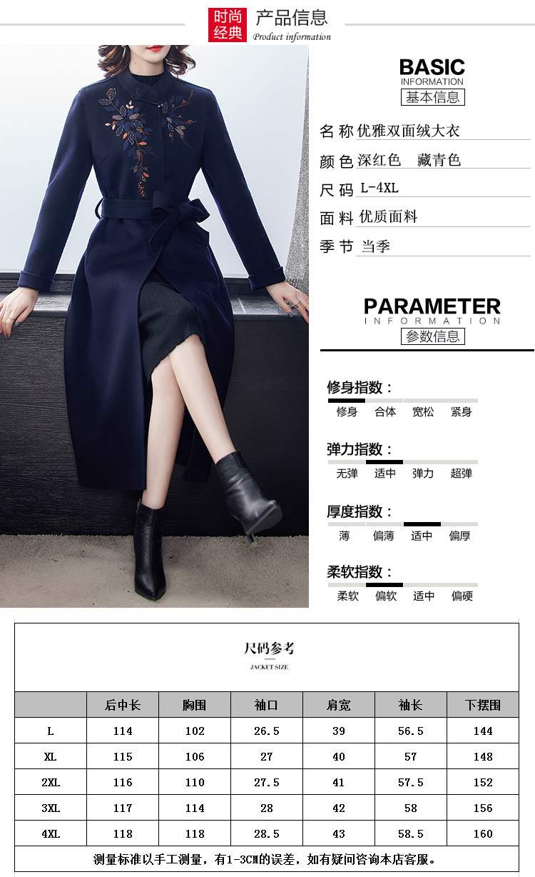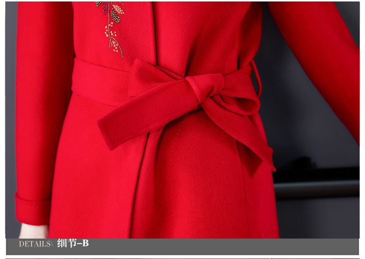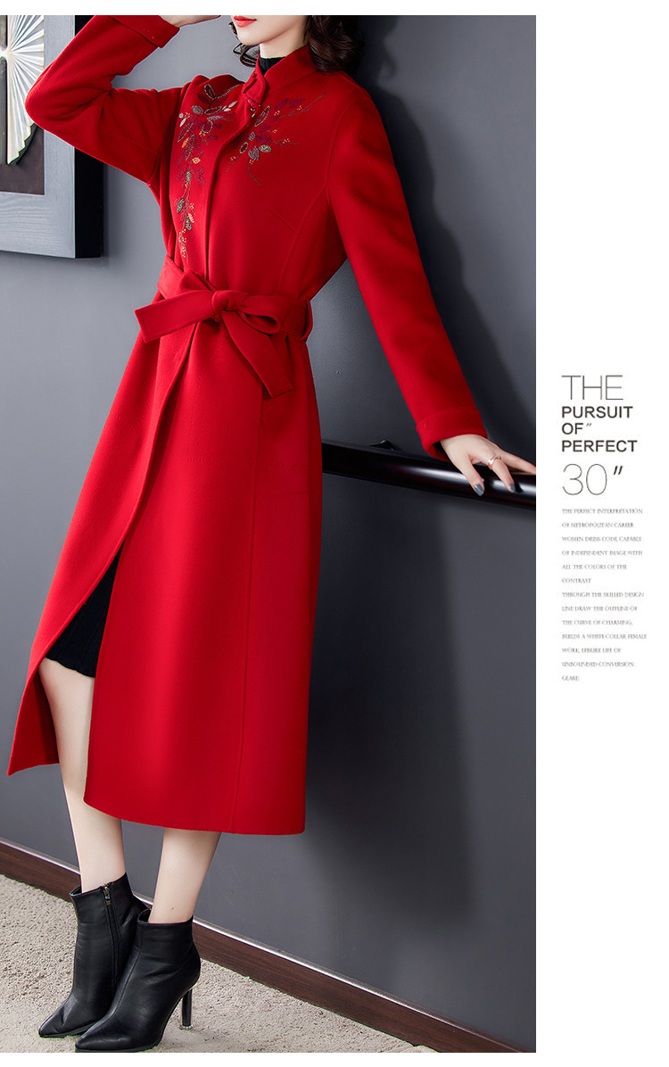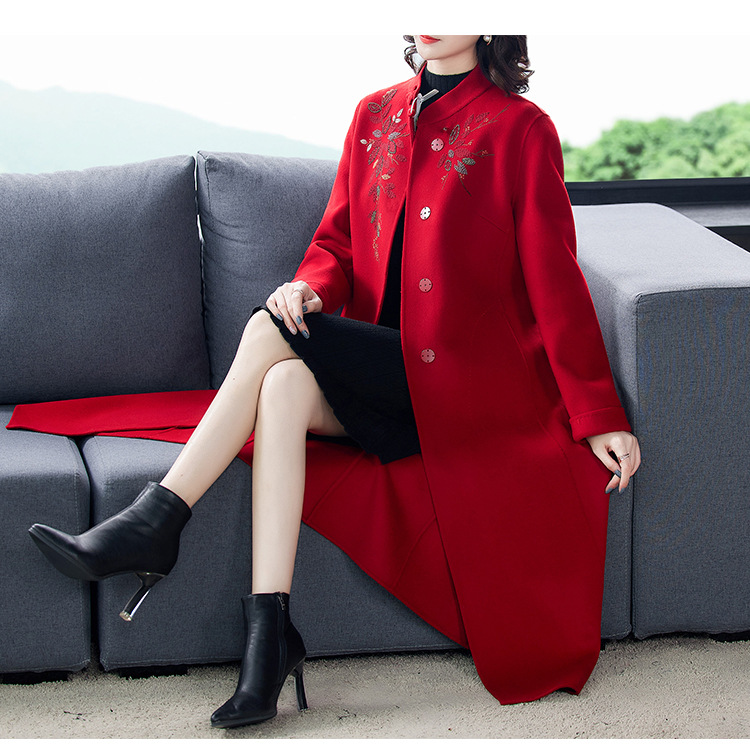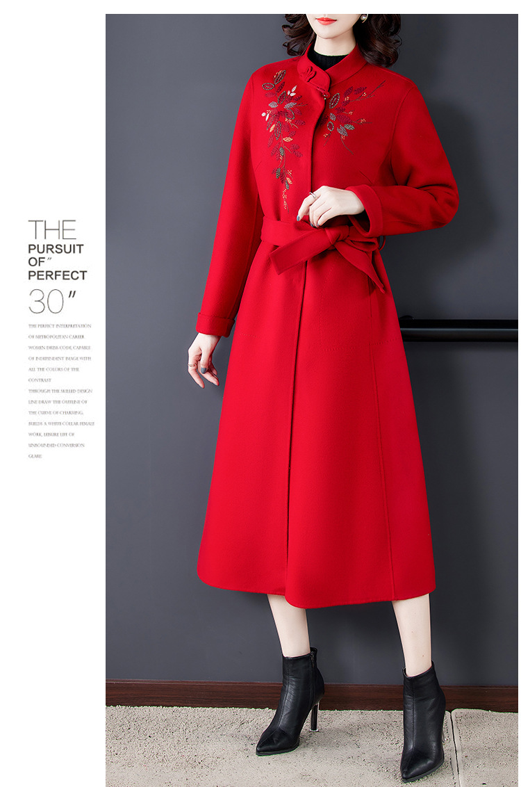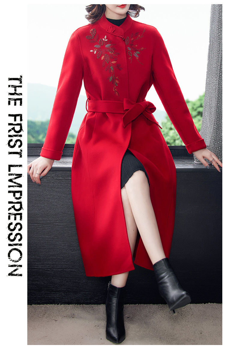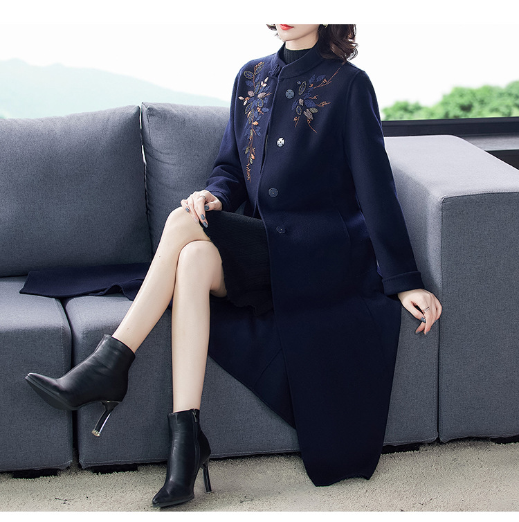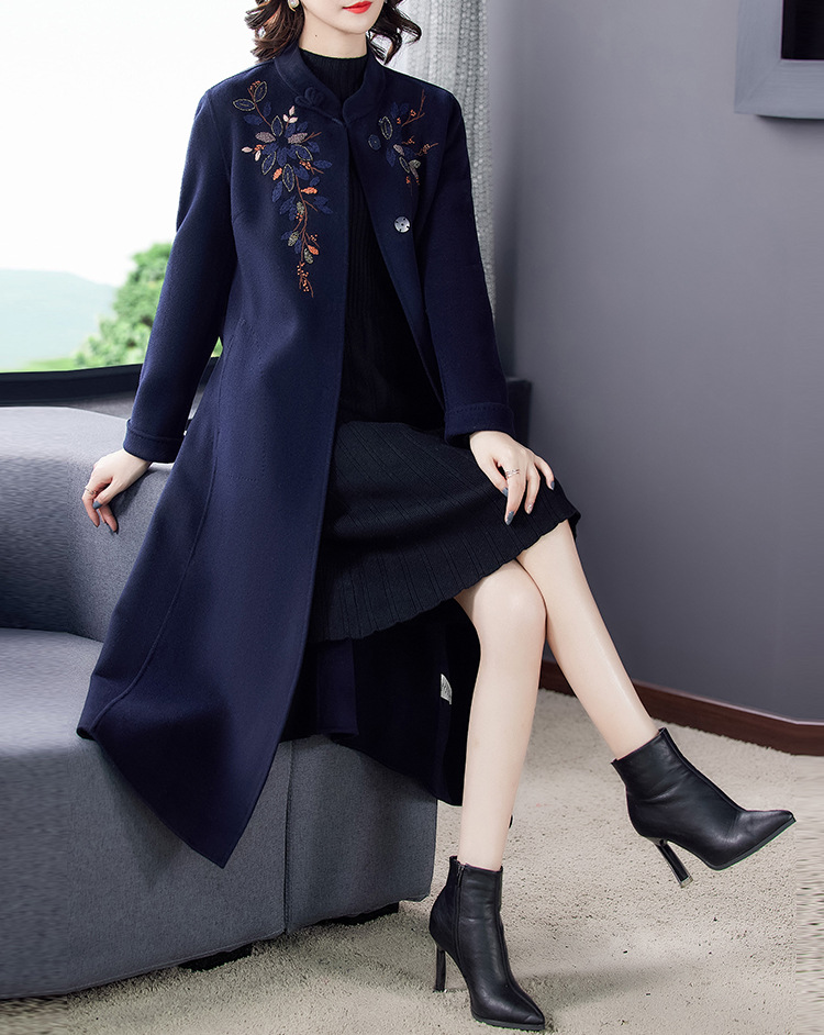 AHM-zne2007新款优雅气质收腰立领长袖加厚夹棉毛呢刺绣大衣外套