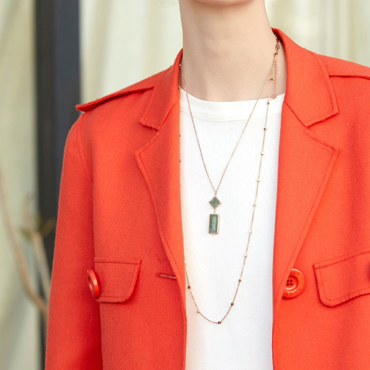 所有翡翠系列均来自缅甸,缅甸翡翠是玉石之王,也是国际公认唯一一种宝石级玉石,无经过任何人工染色、注胶处理的A货,是高等级别的冰糯种,色泽丰富、硬度高、光泽强、折射率高。工艺方面打破了翡翠传统的圆面切割,探用纯手工3D立体切面,共需要四位金 工职匠切割、打磨、拋光到最后一道的镶嵌,一步步手工接力,让温润的翡翠锐利化,平衡了干练与柔美,体现当代台湾女性摩登时尚魅力。