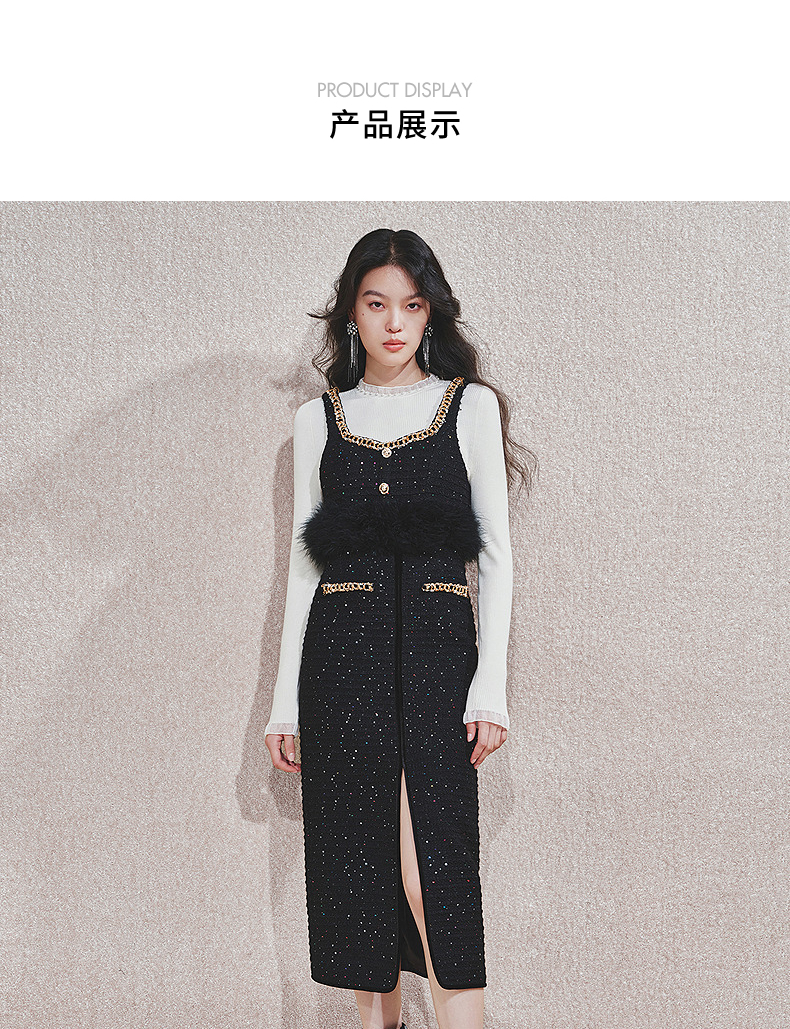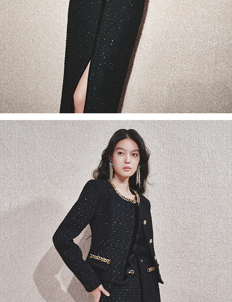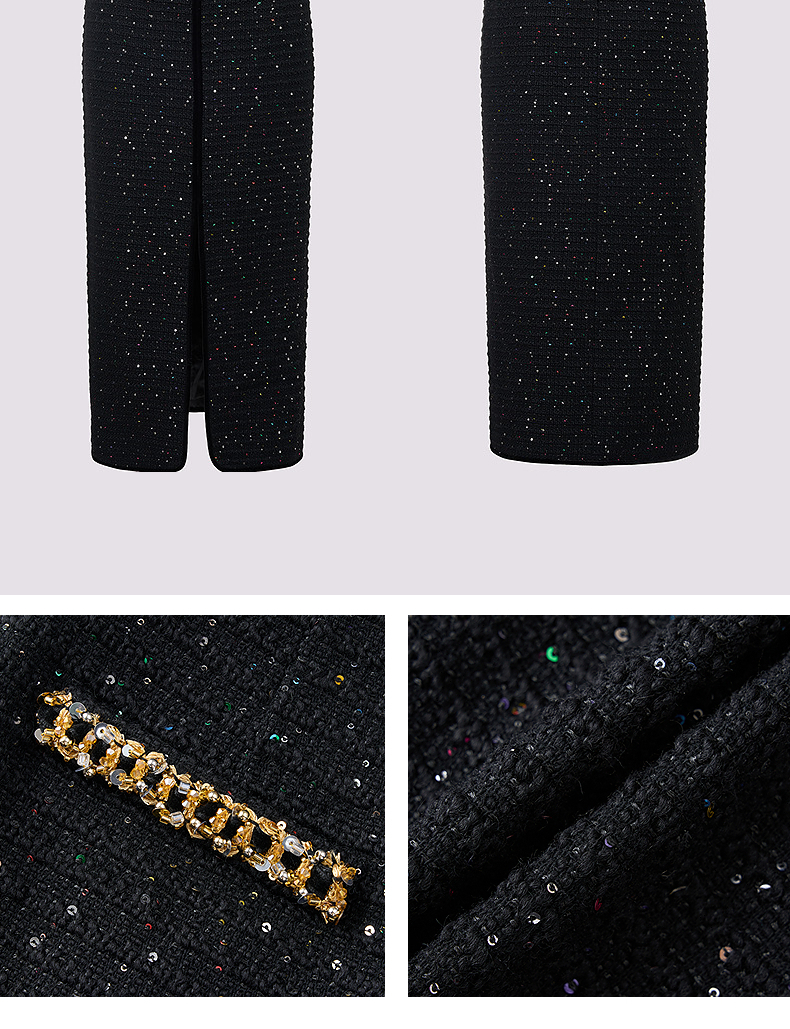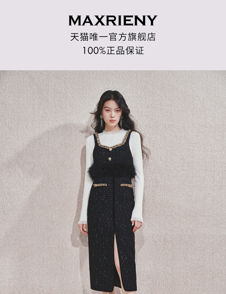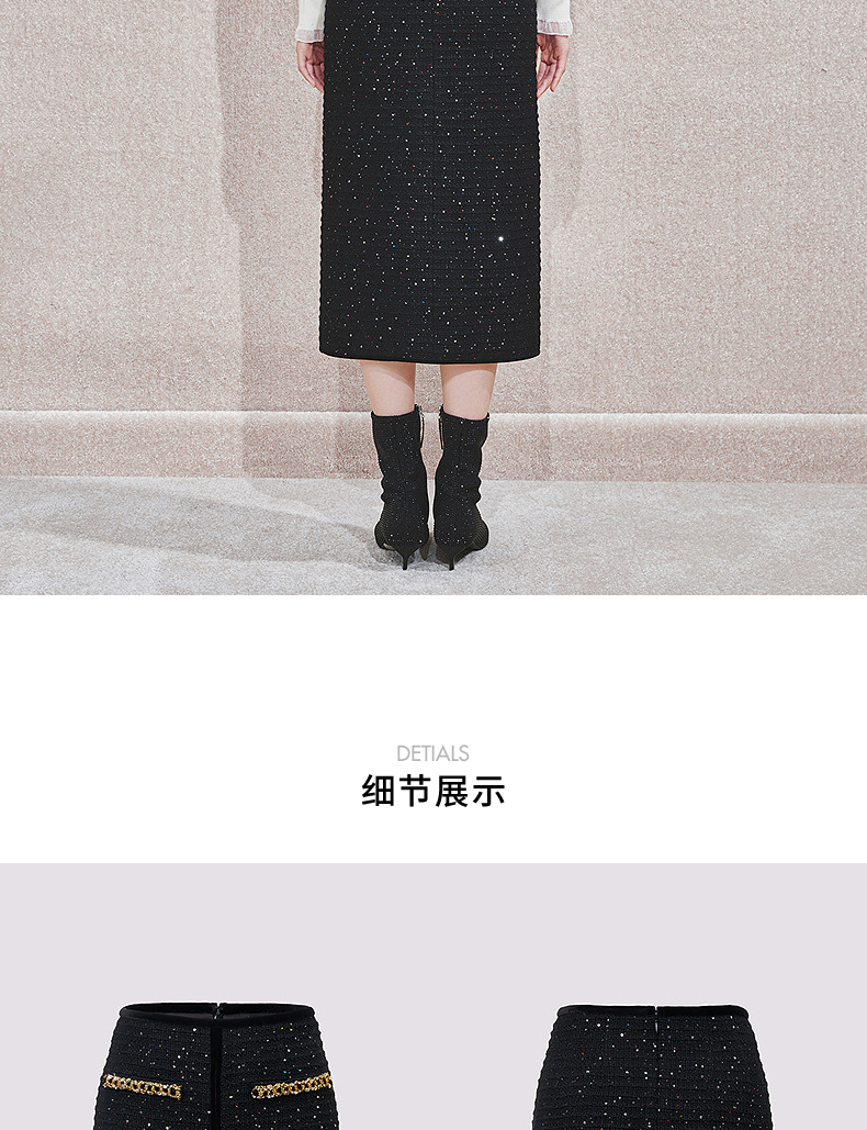MAXRIENY【商场同款-节庆穿搭】MAXRIENY黑金小香气质高级感直筒裙(货号:MC85SK765)