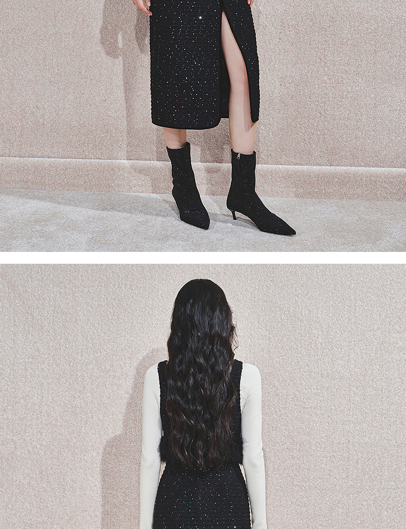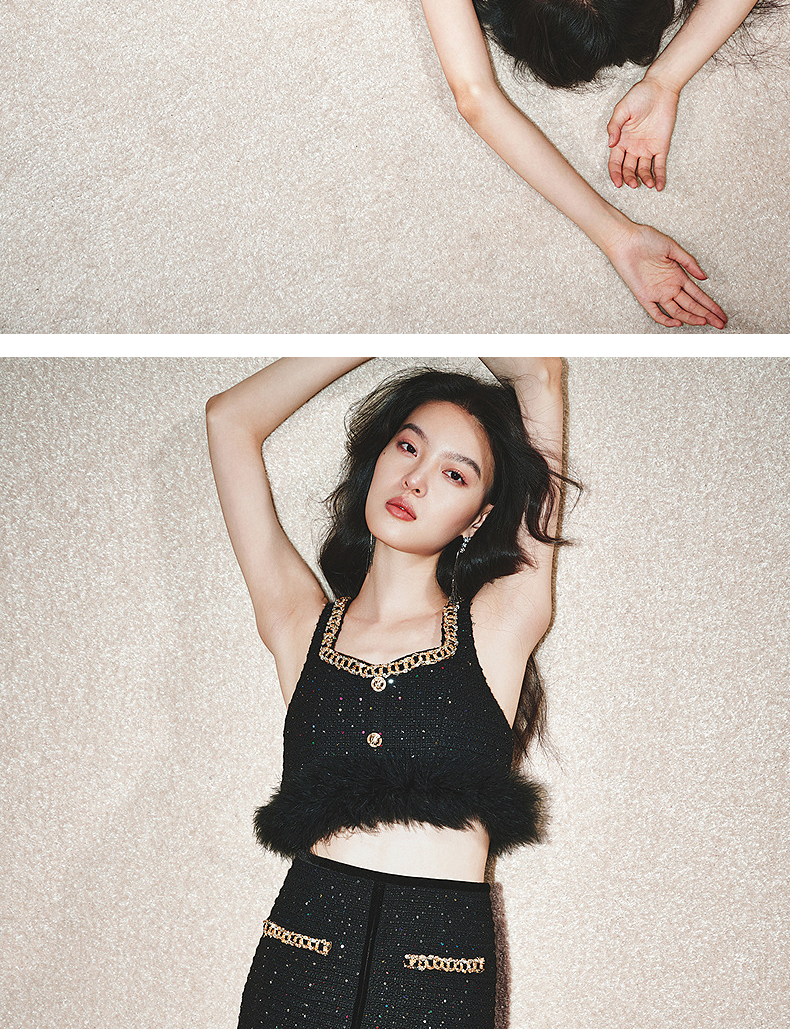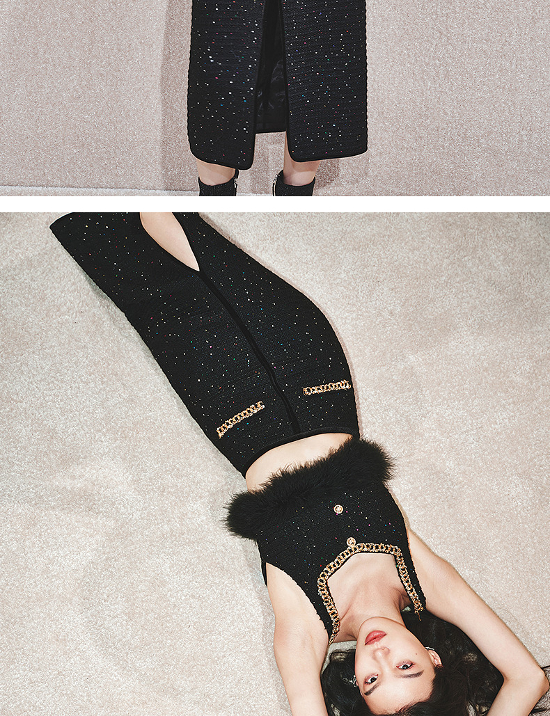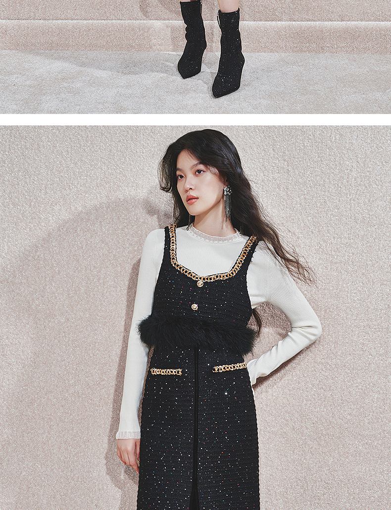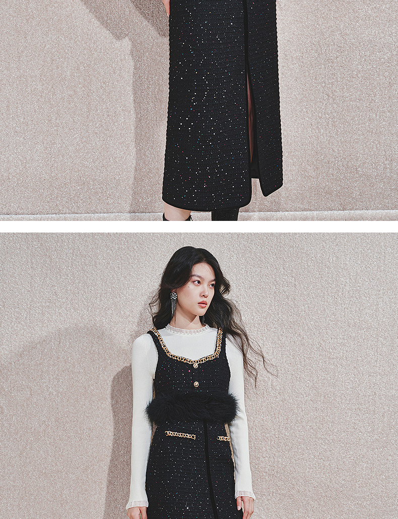 MAXRIENY【商场同款-节庆穿搭】MAXRIENY黑金小香气质高级感直筒裙(货号:MC85SK765)